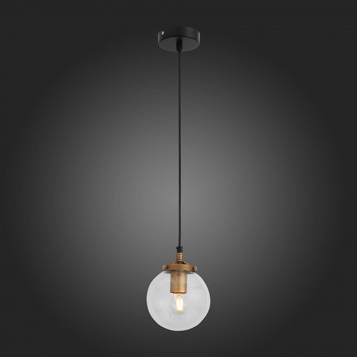 Подвесной светильник SL234.403.01 итальянского производителя ST Luce из коллекции VARIETA исполнен в стиле лофт. Арматура светильника выполнена из металла золотого и черного цветов. Поверхность арматуры глянцево-матовая. Плафон изготовлен из стекла прозрачного цвета, имеет сферическую форму и прозрачную поверхность. Направлен вниз. Осветительный прибор рассчитан на освещение пространства площадью 2 кв. м. Тип цоколя используемых ламп E27. Производитель рекомендует использовать лампы мощностью не более 40 Вт. Суммарная мощность светильника составляет 40 Вт. Лампочки в комплект не входят. Защита от попадания влаги и пыли внутрь изделия не предусмотрена. Рекомендуем к применению в гостиной, кабинете, кухне, прихожей, спальне.