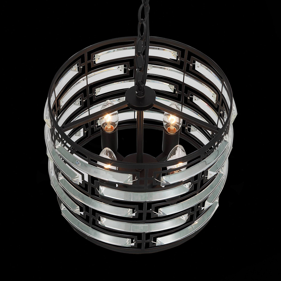 Подвесной светильник SL665.403.04 итальянского производителя ST Luce из коллекции CHIAREZZA исполнен в стиле модерн. Арматура светильника выполнена из металла черного цвета. Поверхность арматуры матовая. Плафон изготовлен из хрусталя и металла прозрачного и черного цветов, имеет цилиндрическую форму и матовую поверхность. Направлен вверх и вниз. Осветительный прибор рассчитан на освещение пространства площадью 8 кв. м. Тип цоколя используемых ламп E14. Производитель рекомендует использовать лампы мощностью не более 40 Вт. Суммарная мощность светильника составляет 160 Вт. Лампочки в комплект не входят. Защита от попадания влаги и пыли внутрь изделия не предусмотрена. Рекомендуем к применению в гостиной, кабинете, прихожей, спальне.