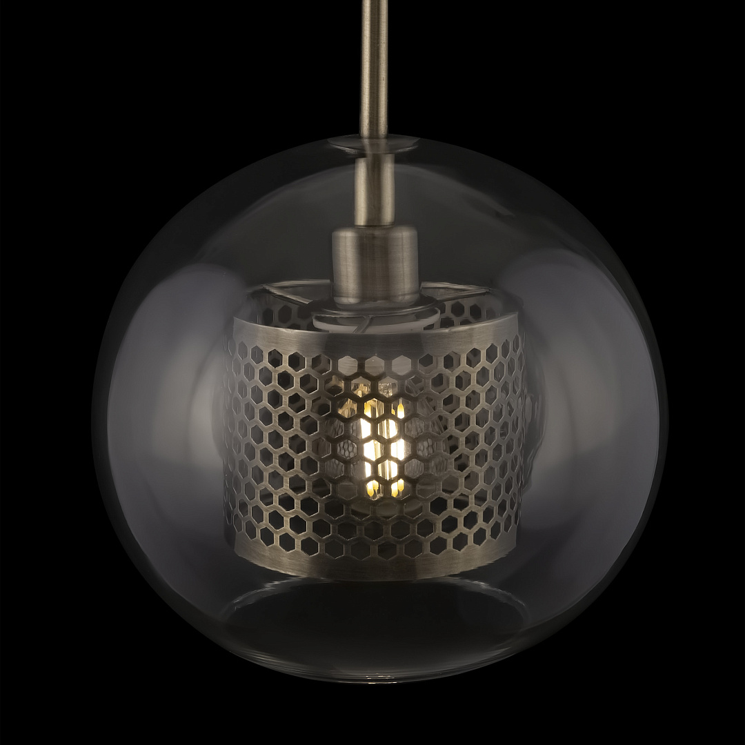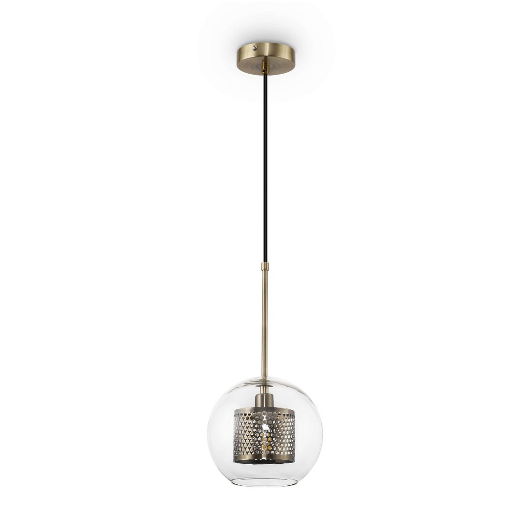 Серия подвесов Bogota с трендовым дизайном, вдохновленным культовым арт-объектом – светильниками-«пузырями». Металлическая арматура окрашена в цвет латуни, никеля (на выбор) и дополнена оригинальным двойным плафоном. Его внутренняя, ажурная часть искусно скрывает патрон лампы и выполнена из металла в тон арматуре. Внешняя, представляющая округлый плафон-сферу, сделана из прозрачного стекла. Такой эффектный дуэт станет изюминкой интерьеров, оформленных в стиле минимализм, техно, лофт. Серию подвесов удобно использовать для расстановки точечных акцентов и зональной подсветки, можно комбинировать светильники в световые группы или размещать по отдельности. В гостиной, на кухне, в кафе и ресторанах модель создаст настроение и подчеркнет современный вкус владельца.