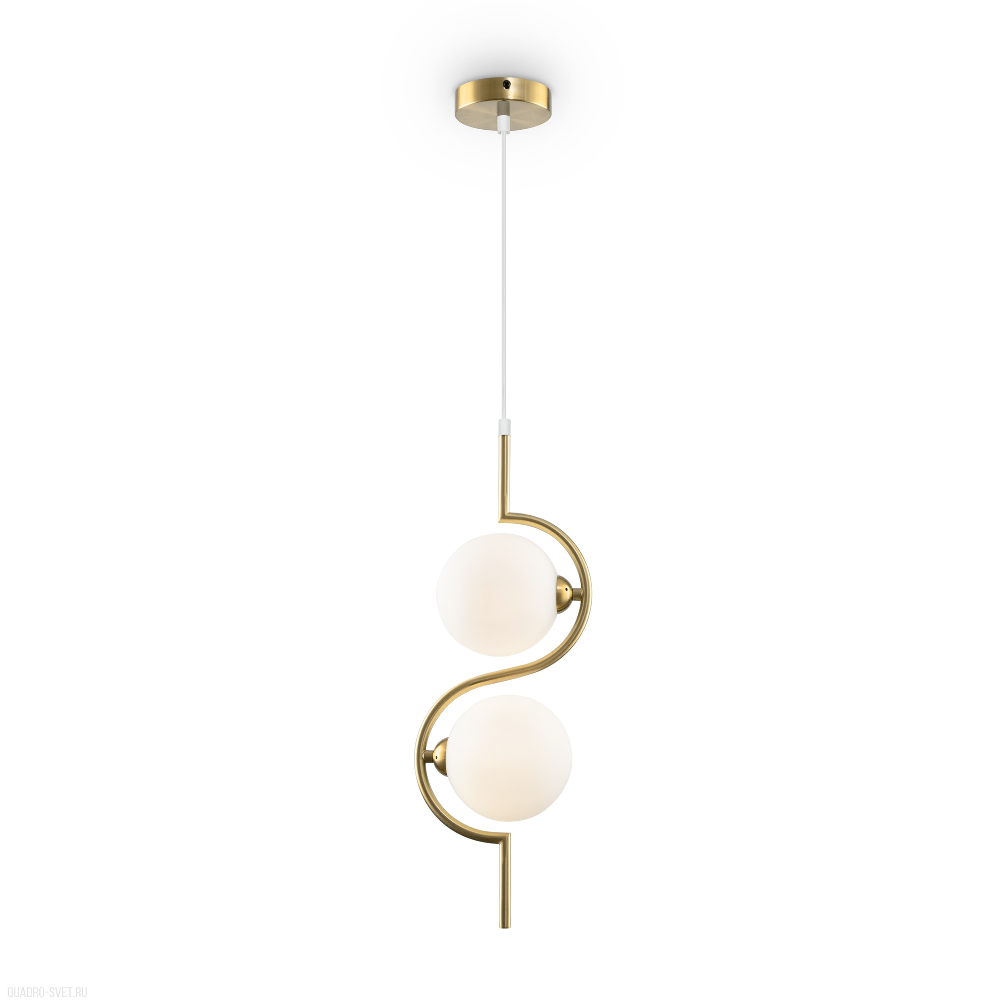 Металлическая арматура, цвет – латунь. Плафоны-сферы из белого матового стекла для мягкого света. Дизайн наполнен метафорическим смыслом плавных контуров символики инь и ян. Источник света – лампа с цоколем G9. Регулируемая высота подвесного светильника.