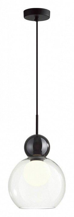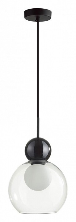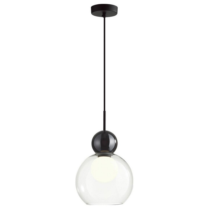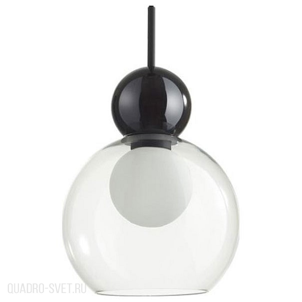 Blacky — современная линия подвесов различных по форме, которые удачно сочетать в разноуровневых композициях. Округлые формы плафонов, которые сейчас в моде, и дополнительный матовый белый рассеиватель в виде шара внутри, который скрывает яркую нить свечения лампочки и делает источник света для прозрачного плафона равномерным и мягким. Декоративный элемент в виде черного стеклянного шара вносит современный акцент в общий дизайн светильника.
