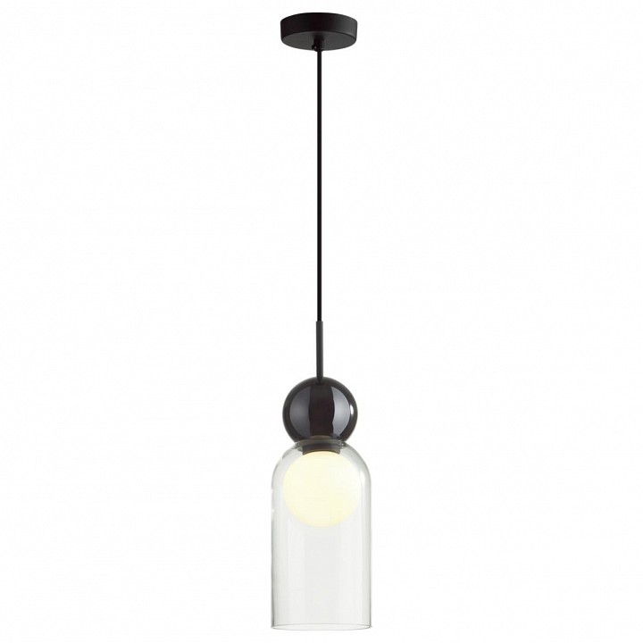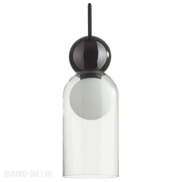 Blacky — современная линия подвесов различных по форме, которые удачно сочетать в разноуровневых композициях. Округлые формы плафонов, которые сейчас в моде, и дополнительный матовый белый рассеиватель в виде шара внутри, который скрывает яркую нить свечения лампочки и делает источник света для прозрачного плафона равномерным и мягким. Декоративный элемент в виде черного стеклянного шара вносит современный акцент в общий дизайн светильника.
