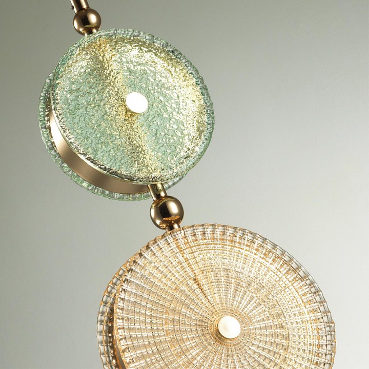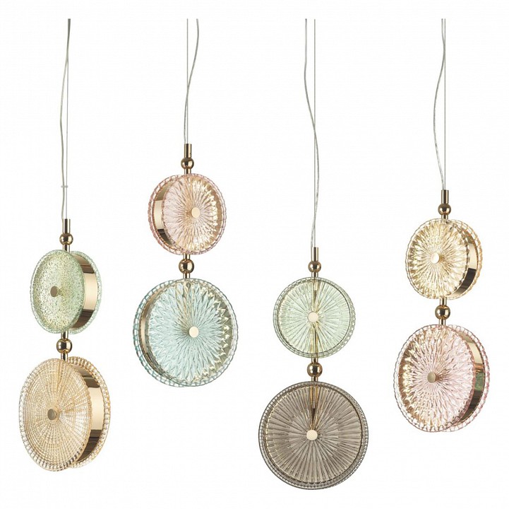 Линия светильников Caramella получила своё название благодаря сходству с карамельными конфетами. В ней сочетаются стекло нежных пастельных оттенков, золотой металл, разнообразные паттерны стёкол и современный LED источник света. Светильники Caramella прекрасно впишутся как в современные, так и в классические интерьеры, благодаря своему изящнуму дизайну. Из подвесных и настенных светильников линии можно создавать разнообразные композиции, внося в интерьер уникальыне акценты.