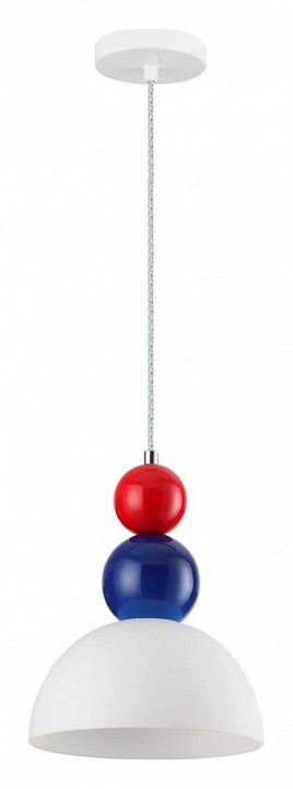 Подвесные светильники линии Anfisa запоминаются своей яркостью и запоминающимся дизайном. Центральным элементом является белый плафон, дополненный глянцевыми шарами синего и красного цвета. Светильники могут использоваться как по-отдельности, так и в группе, что безусловно создаст еще больший визуальный контраст в помещении.