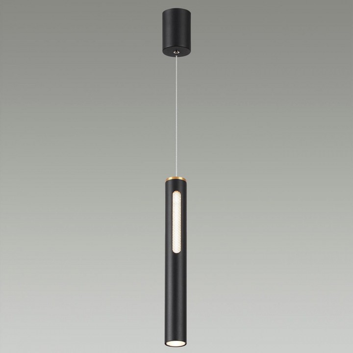 Минималистичный вертикальный подвес Mali в черном цвете с золотыми элементами, в котором используется светофильтр Honey comb, будет отлично смотреться в композиции в минималистичных интерьерах, которые не утрачивают своей популярности.