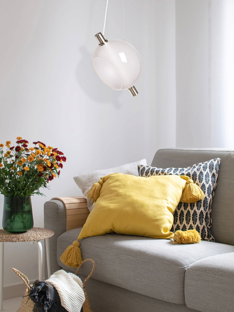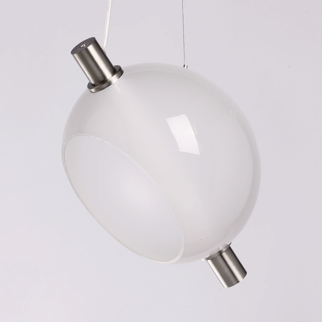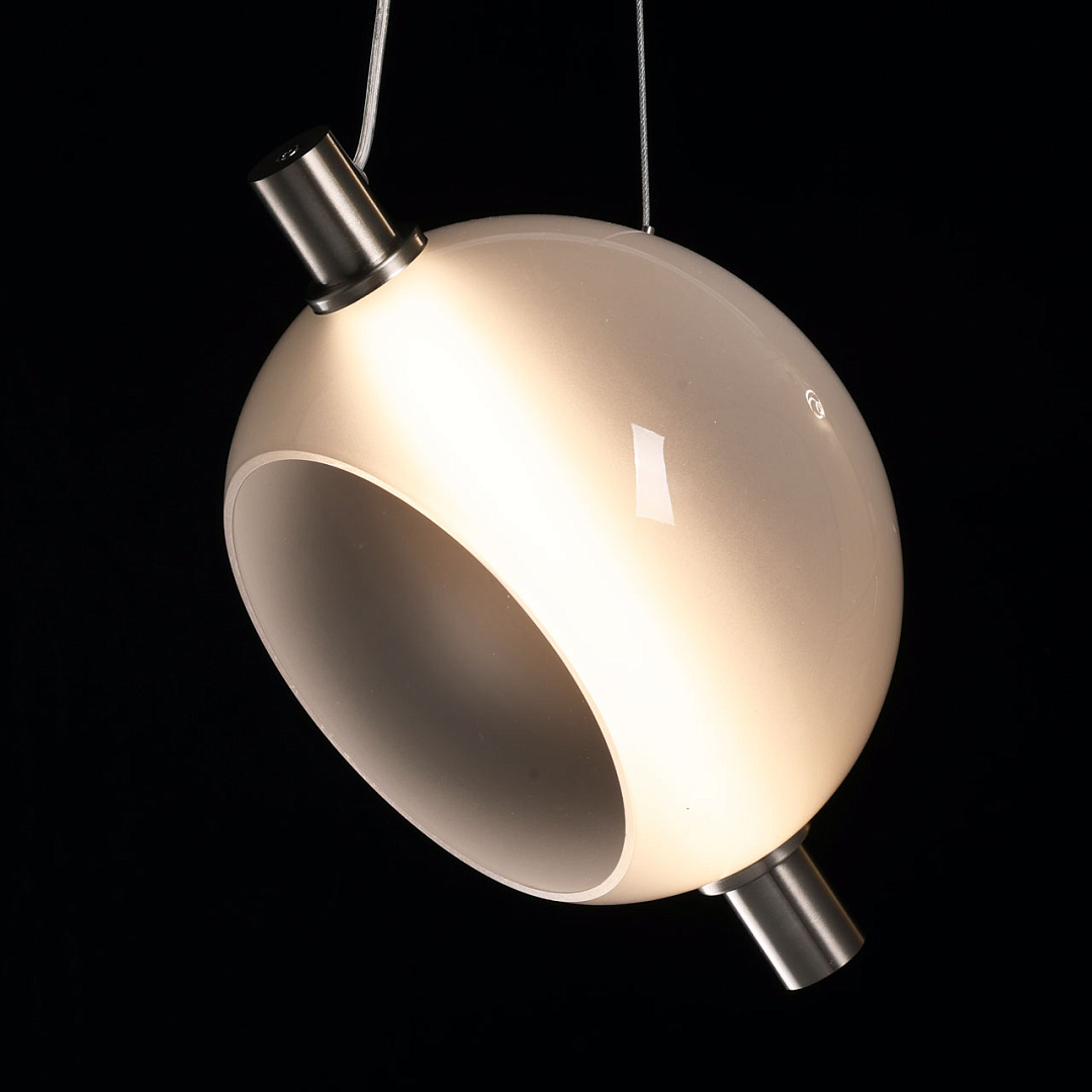 Матированное стекло плафона придает подвесу элегантный и изысканный вид, а также помогает рассеивать свет равномерно. Матовый акрил обеспечивает мягкое распределение света от светодиодов, создавая комфортную атмосферу в помещении. Декоративный металлический держатель плафона никелевого цвета создает гармоничную композицию и завершает общий дизайн подвеса. Возможность регулировать комфортную высоту. Светодиоды экономичны и безопасны.