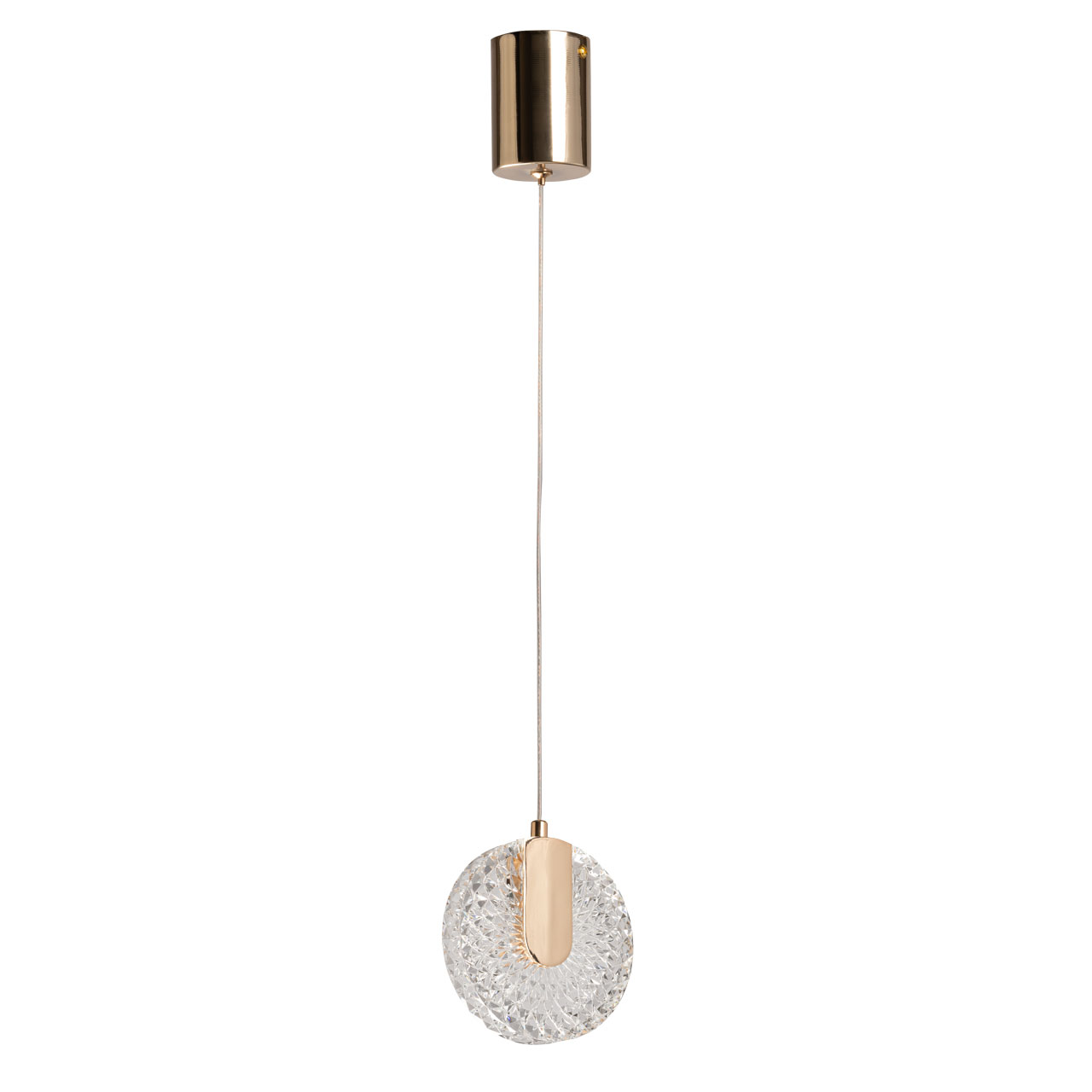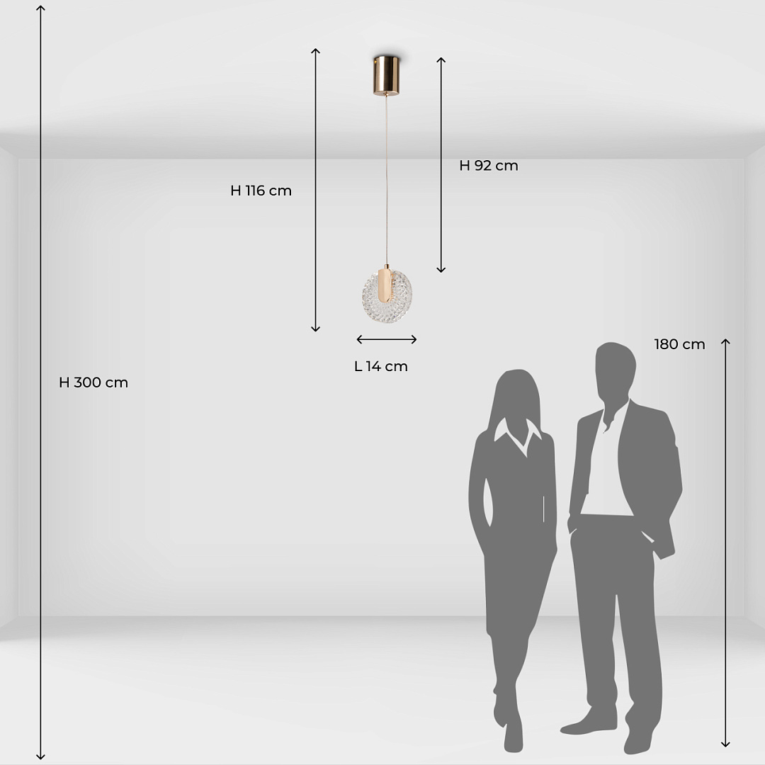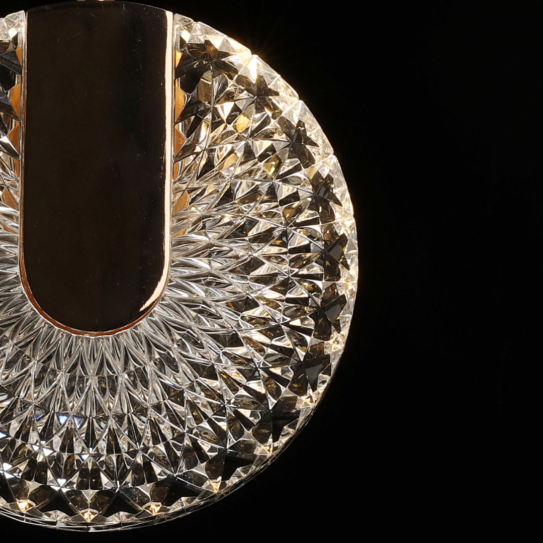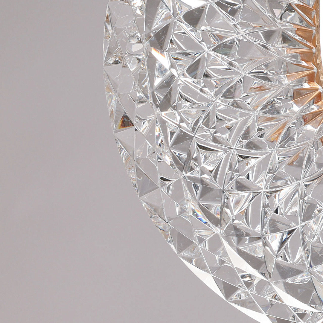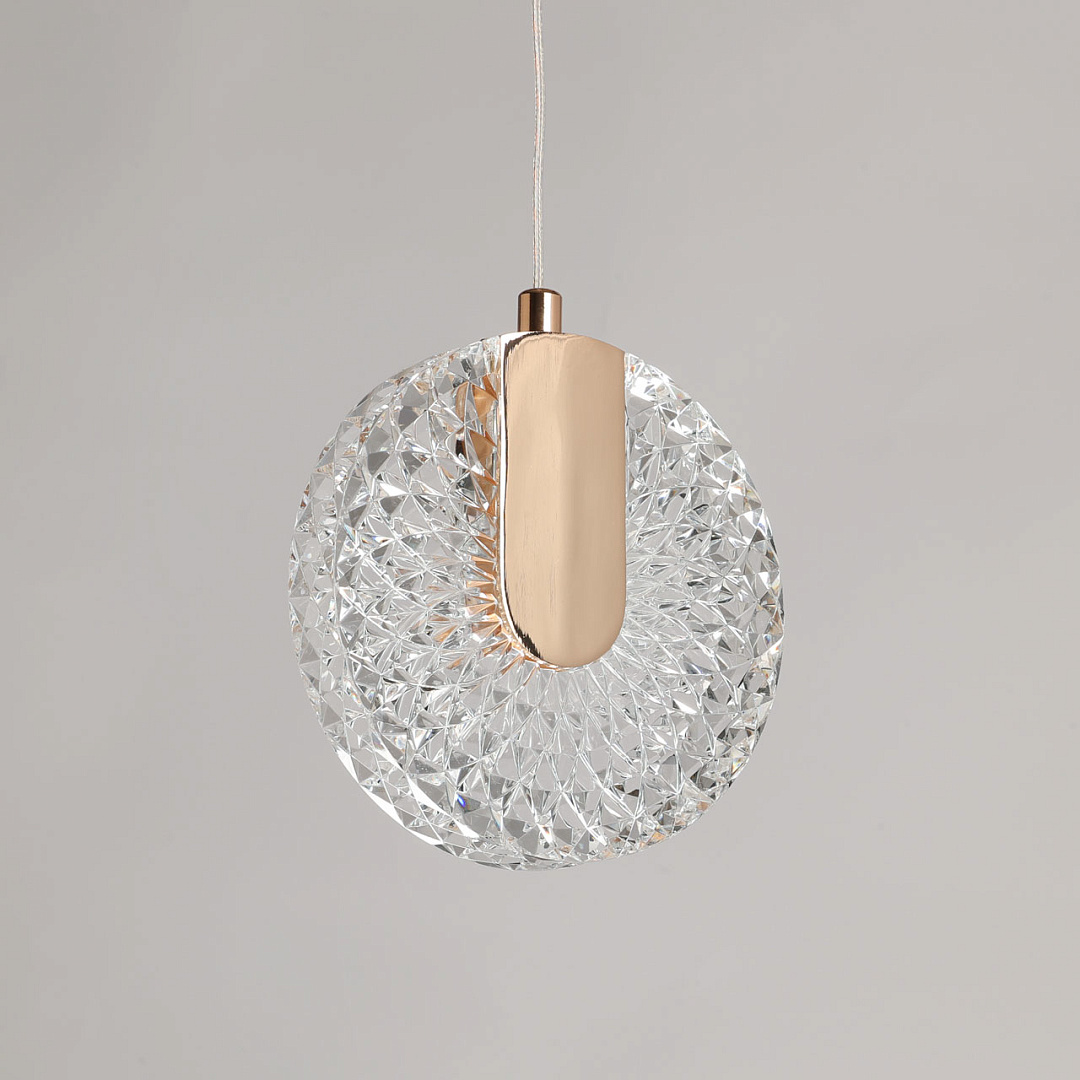 Цвет золота придает подвесу изысканности. Необычное сочетание современного стиля, классического цвета и инновационных светодиодов привлекает внимание к подвесу и создает единый образ. Свет красиво преломляется в фактурном акриле. Возможность регулировать комфортную высоту. Светодиодные источники света безопасны и экономичны.