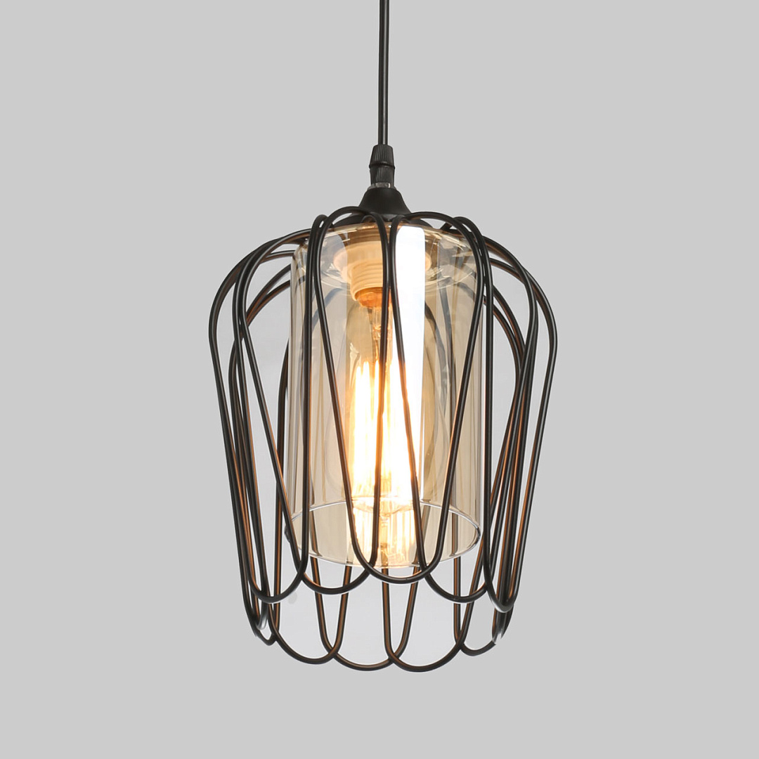 Одиночный подвес создает комфортное зональное освещениеОригинальный черный металлический плафон актуален в стиле лофт и в брутальном интерьереСтеклянный плафон цвета шампань мягко преломляет светЗаменяемый источник света удобен в эксплуатации