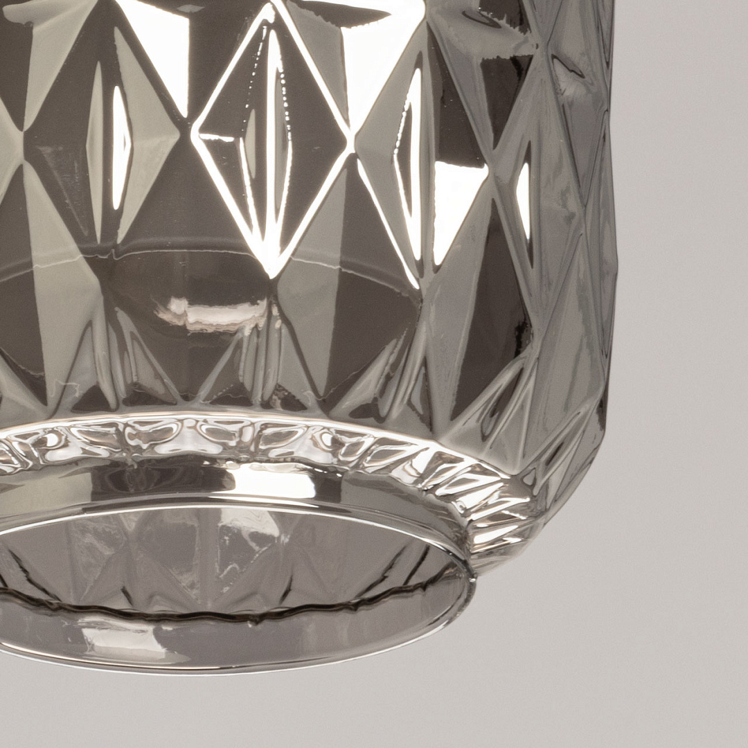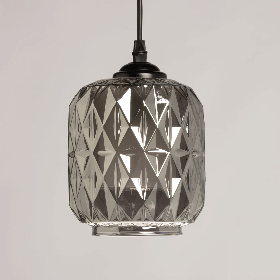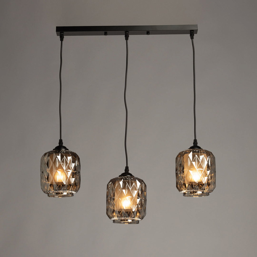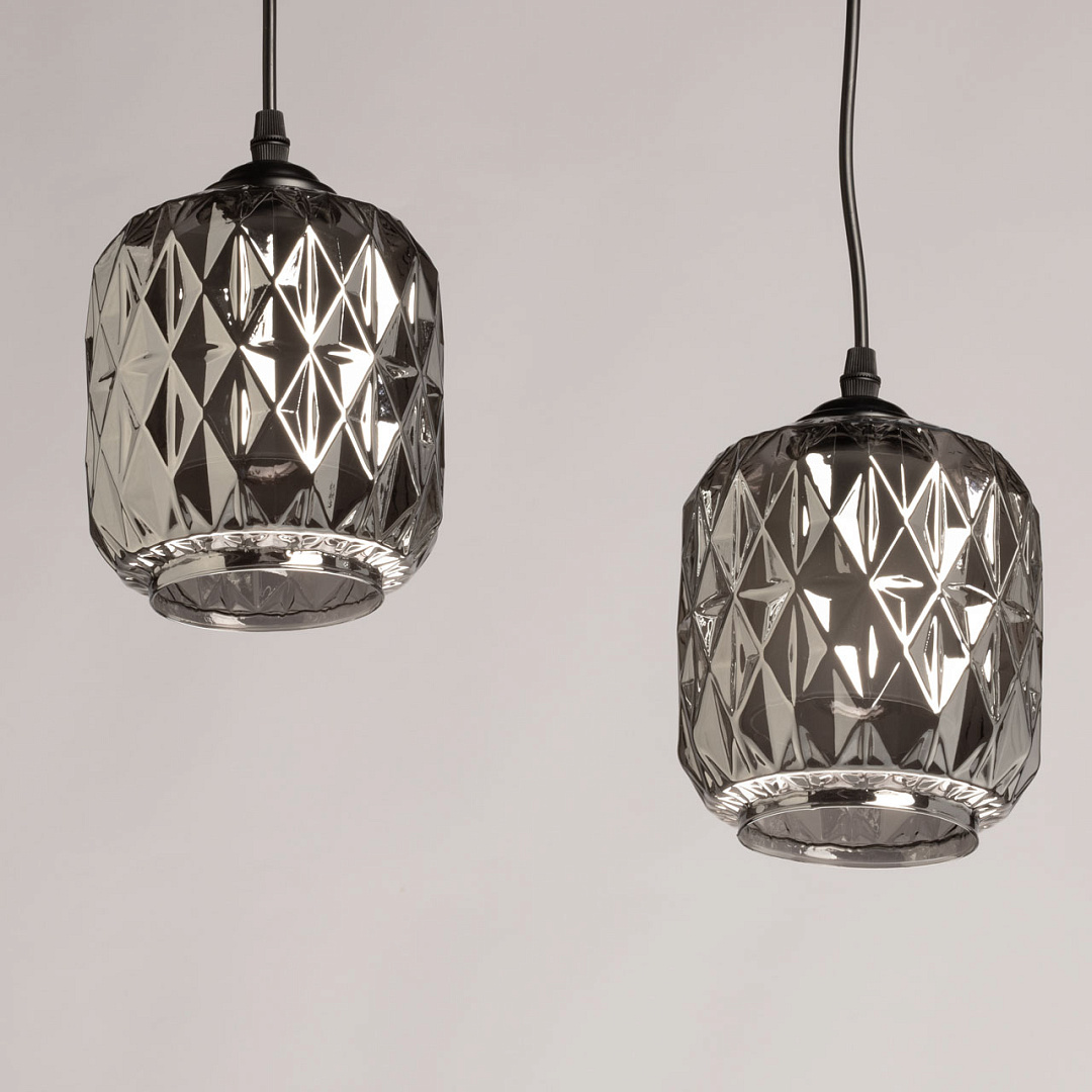 Сочетание на контрасте матового черного цвета основания и глянцевого цвета плафонов эффектно выделяет подвес на потолке. Черный цвет актуален в стиле лофт. Стекло дымчатого цвета мягко рассеивает свет. Вафельная фактура стекла плафонов выглядит оригинально, делая подвес привлекательным акцентом.Подвесной механизм позволяет регулировать высоту расположения светильника, что удобно для адаптации к разным сценариям использования и размерам помещения.Заменяемые источники света удобны в эксплуатации.
