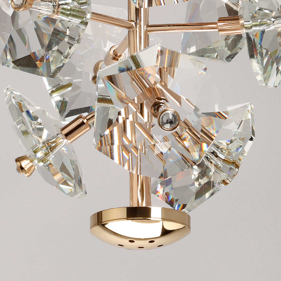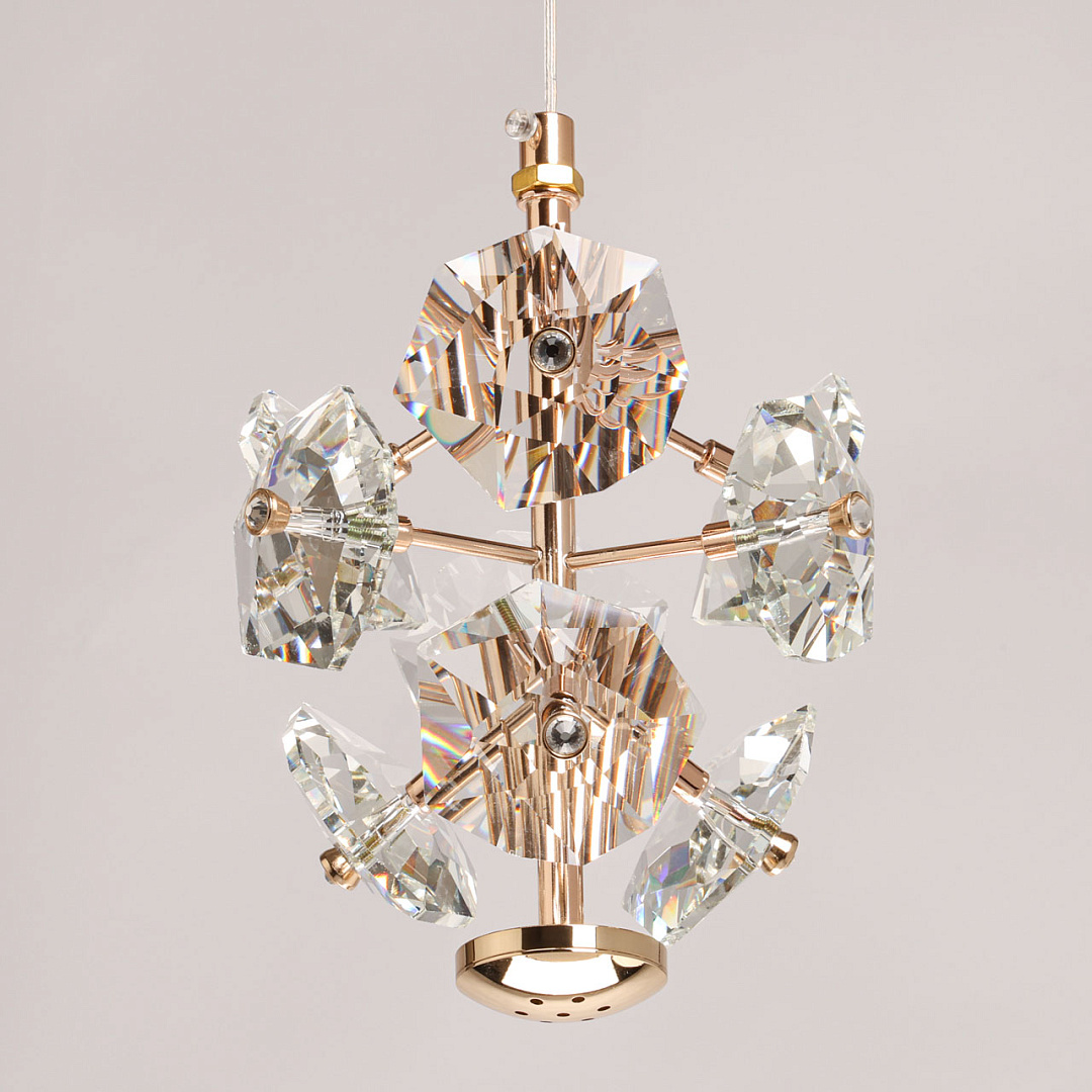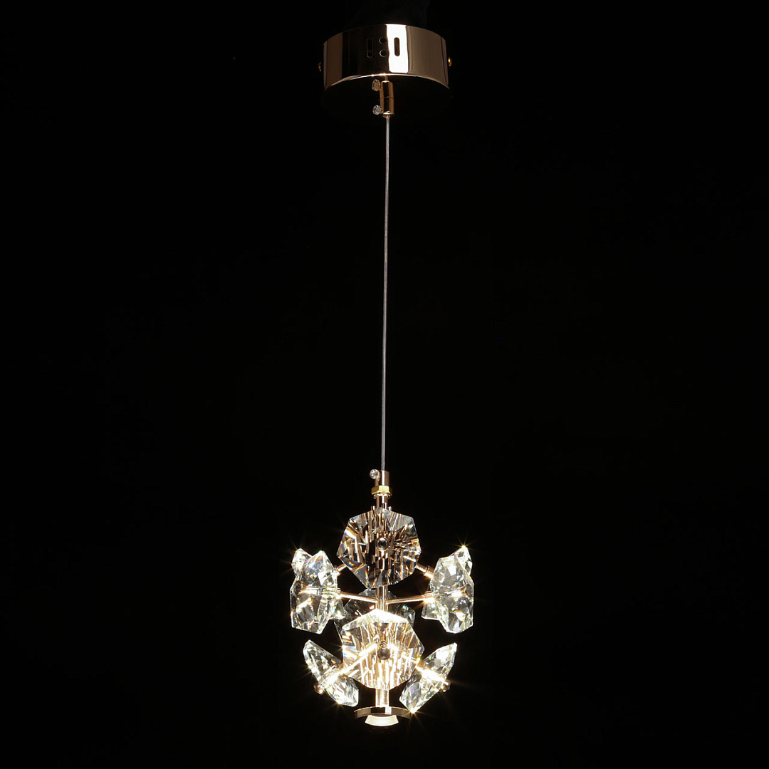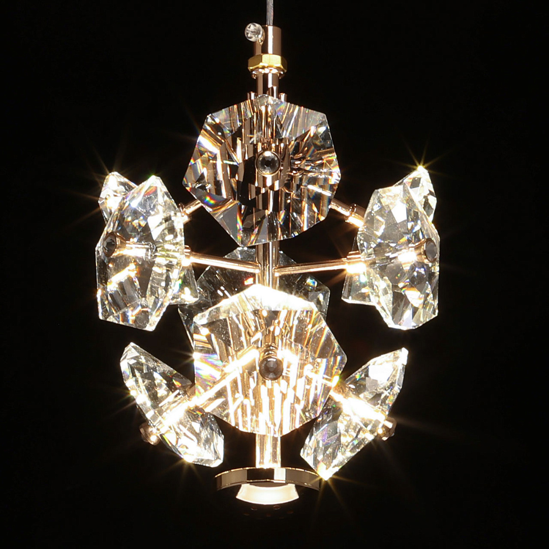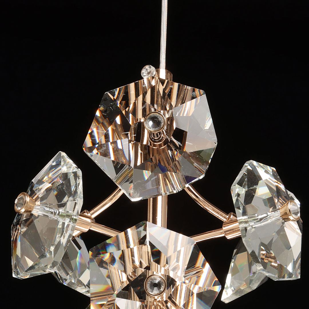 Подвес сочетает в себе современность, элегантность и сдержанность, подчеркивая стиль интерьера. Прозрачный хрусталь  имитирует природные кристаллы, вдохновляя воображение. Многогранные элементы изысканны в деталях и красиво преломляют свет. Светодиодные источники света экономичны и безопасны.