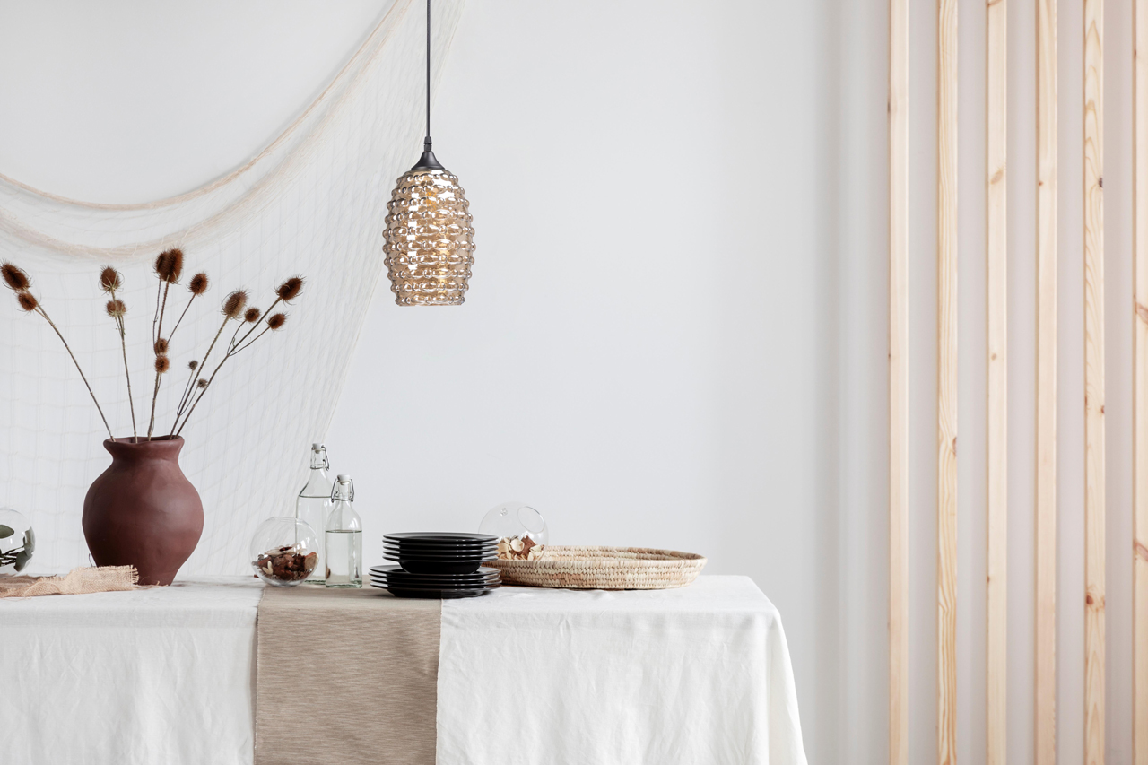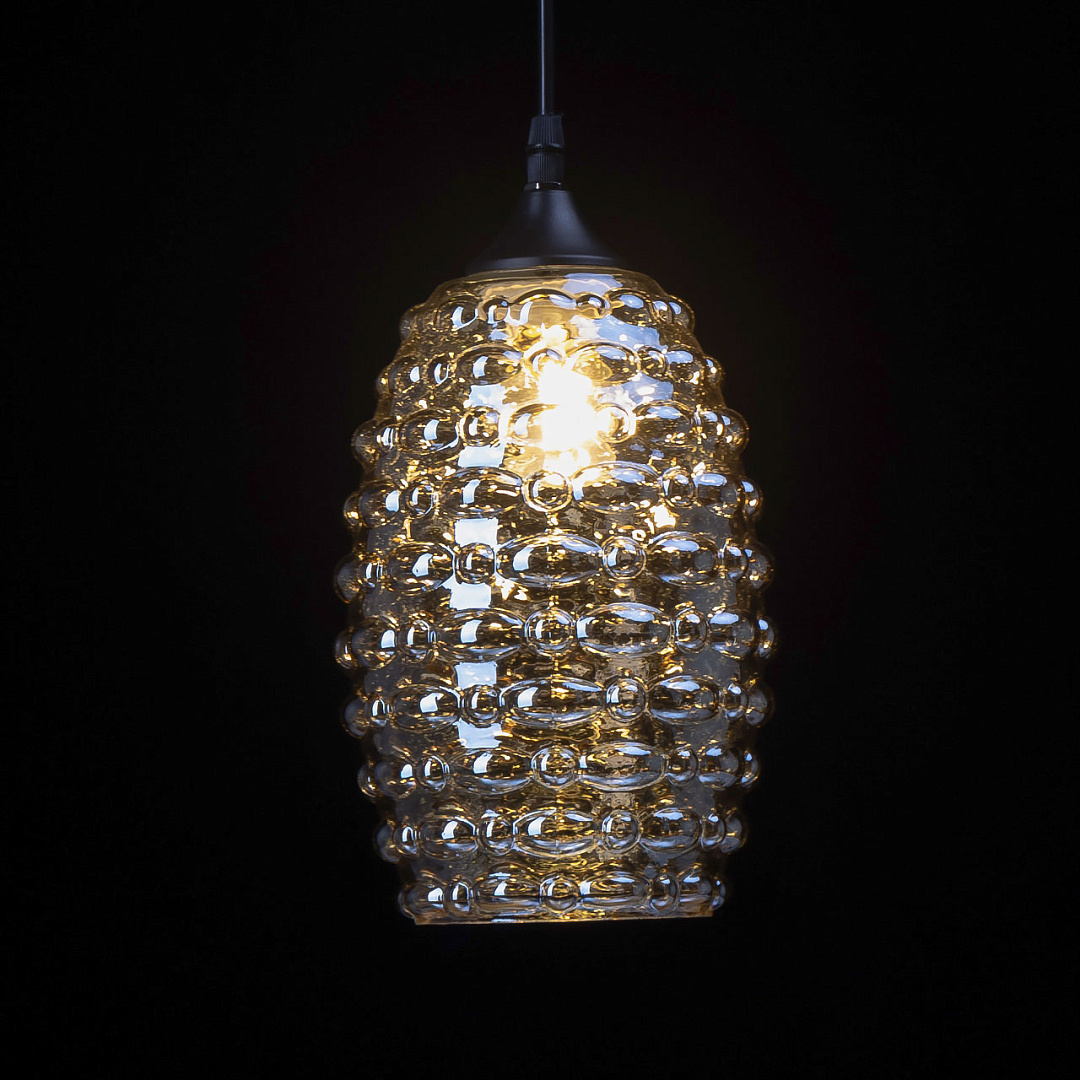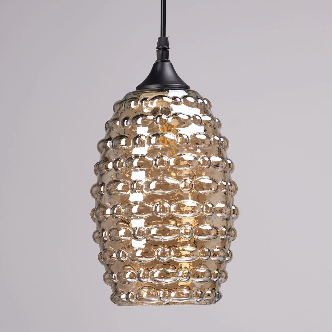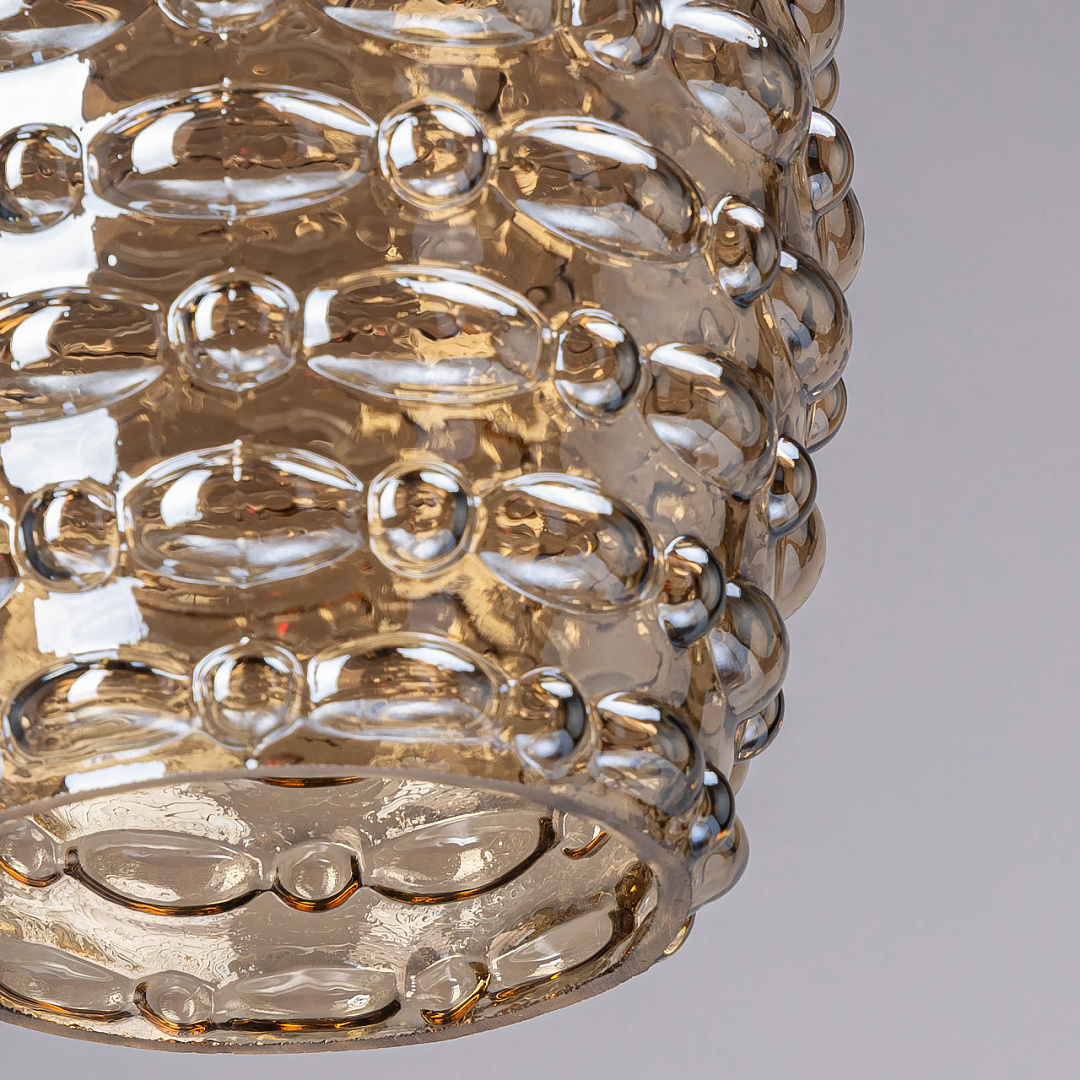 Одиночный подвес создает комфортное зональное освещение.Грановитая фактура плафона воплощает идеи итальянского возрождения.Стеклянный плафон цвета топаз мягко преломляет свет.Заменяемый источник света удобен в эксплуатации.