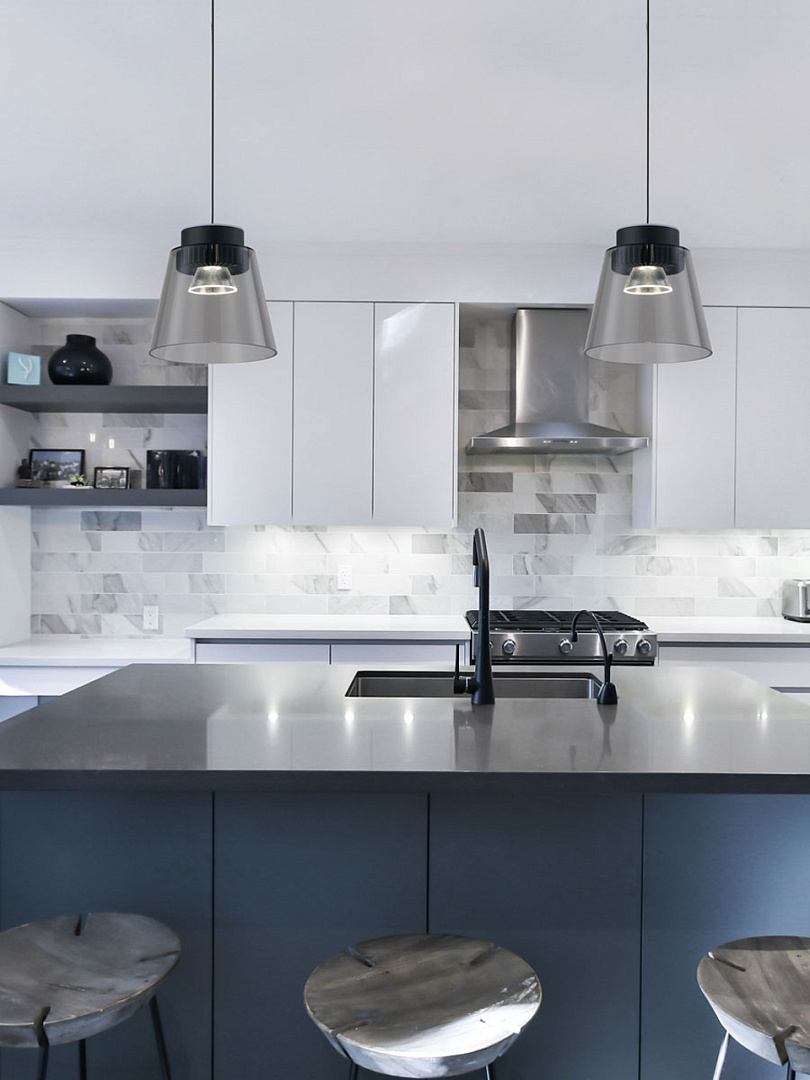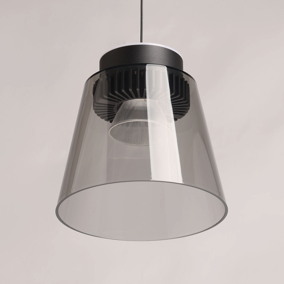 Черный цвет основания создает сдержанный и стильный образ. Акриловый плафон придает подвесу легкость и прозрачность. Светодиодный источник света закрыт матовым акрилом, создавая равномерное и приятное освещение. Дымчатый акрил внешнего плафона делает подвес арт объектом. Качественные светодиоды экономичны и безопасны.