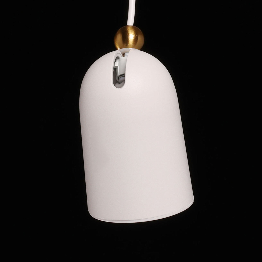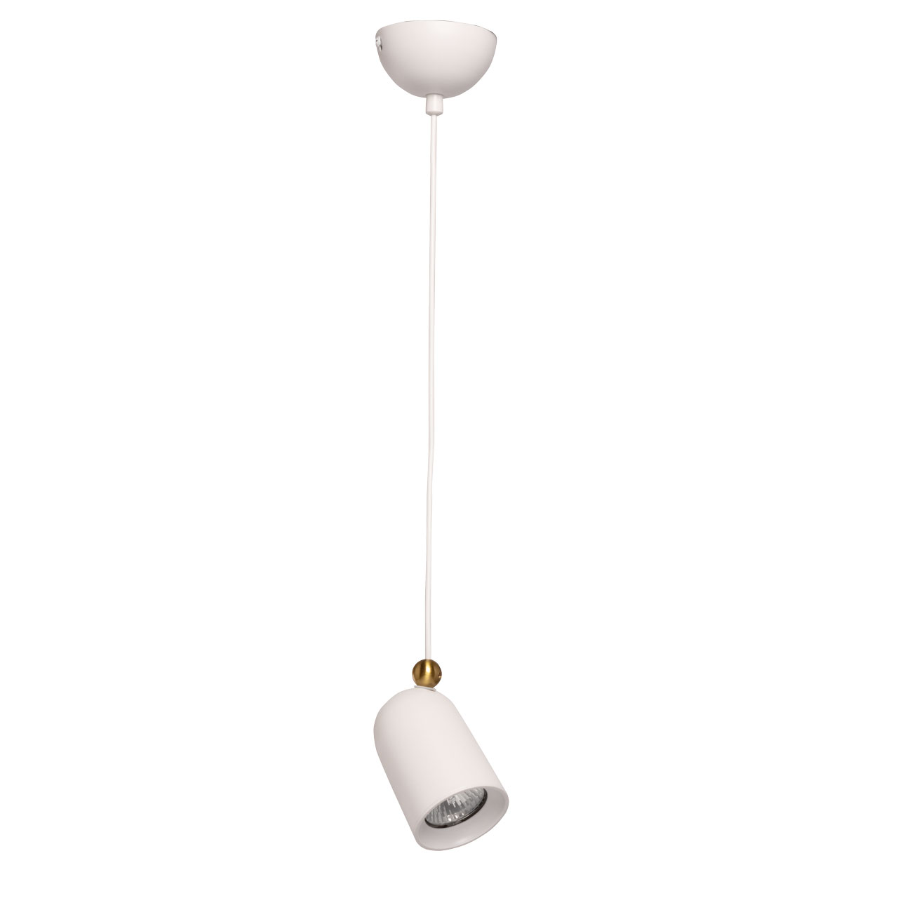 Белый цвет придает подвесу свежий и современный вид. Для дополнительного декоративного эффекта, подвес декорирован металлической сферой. Сочетание белого цвета и декора цвета латуни добавляет подвесу изысканности. Поворотный плафон позволяет направлять световой поток в нужную сторону, что создает комфортное освещение. Вариативность световых решений и фактур подчеркнет стиль и индивидуальность интерьера. Возможность регулировать комфортную  высоту. Заменяемый источник света удобен в эксплуатации.