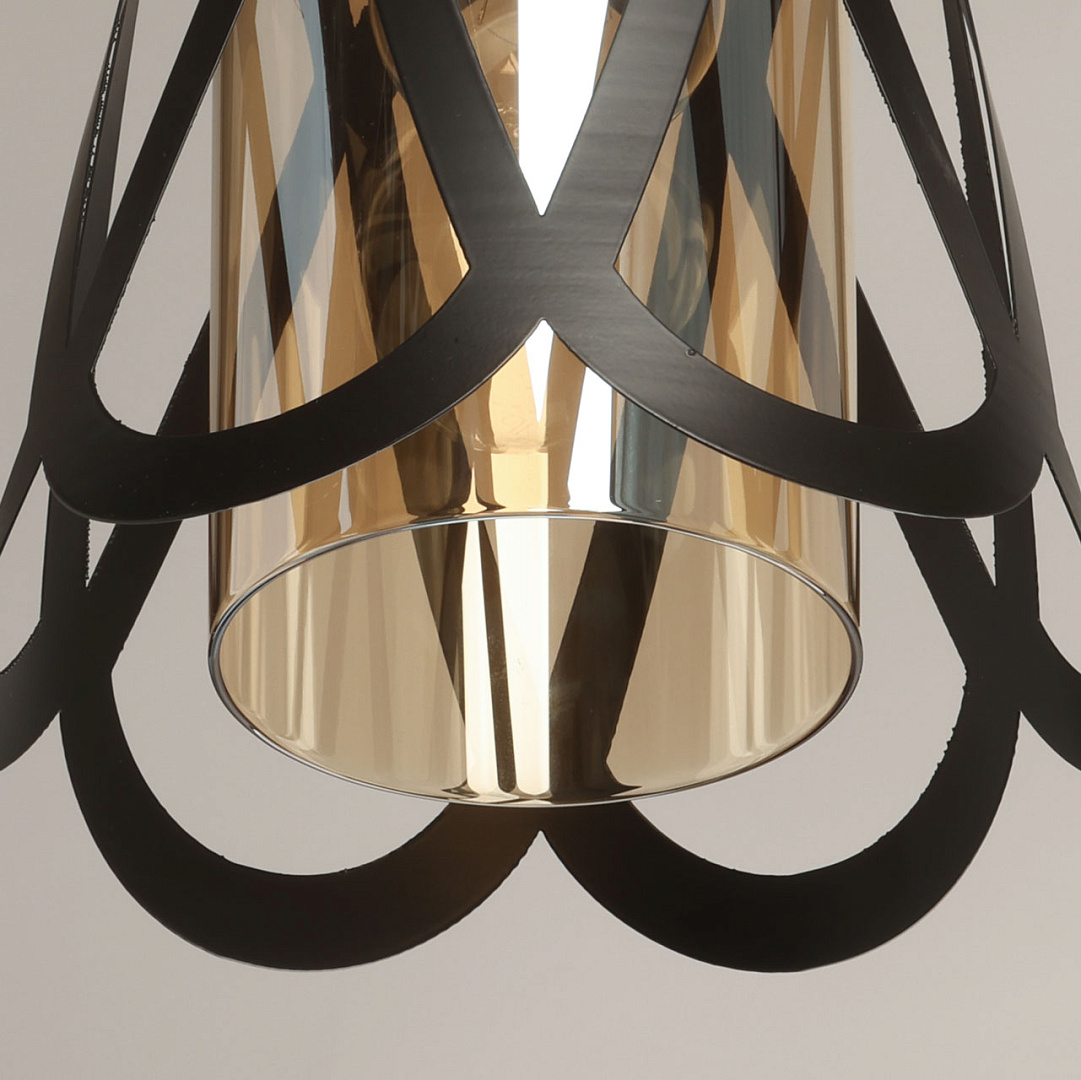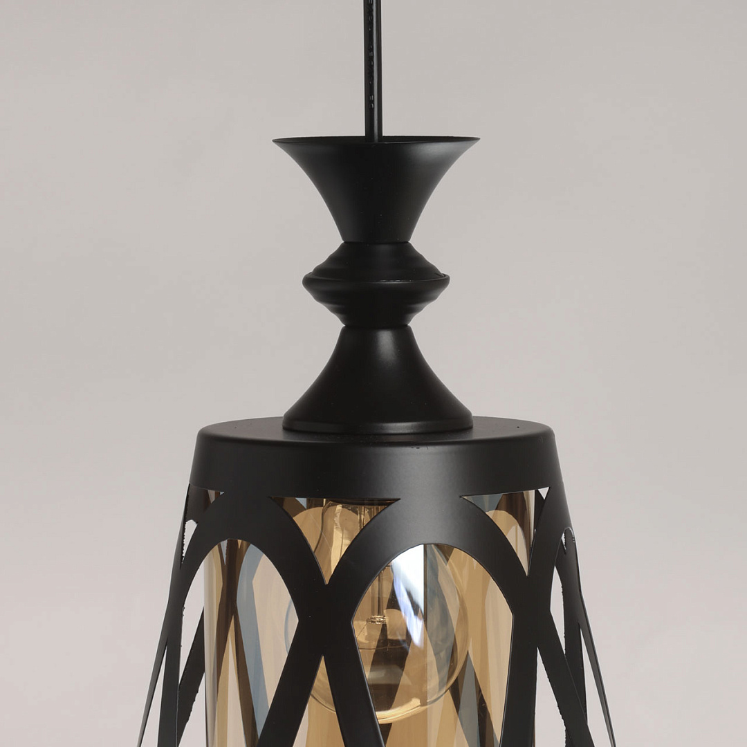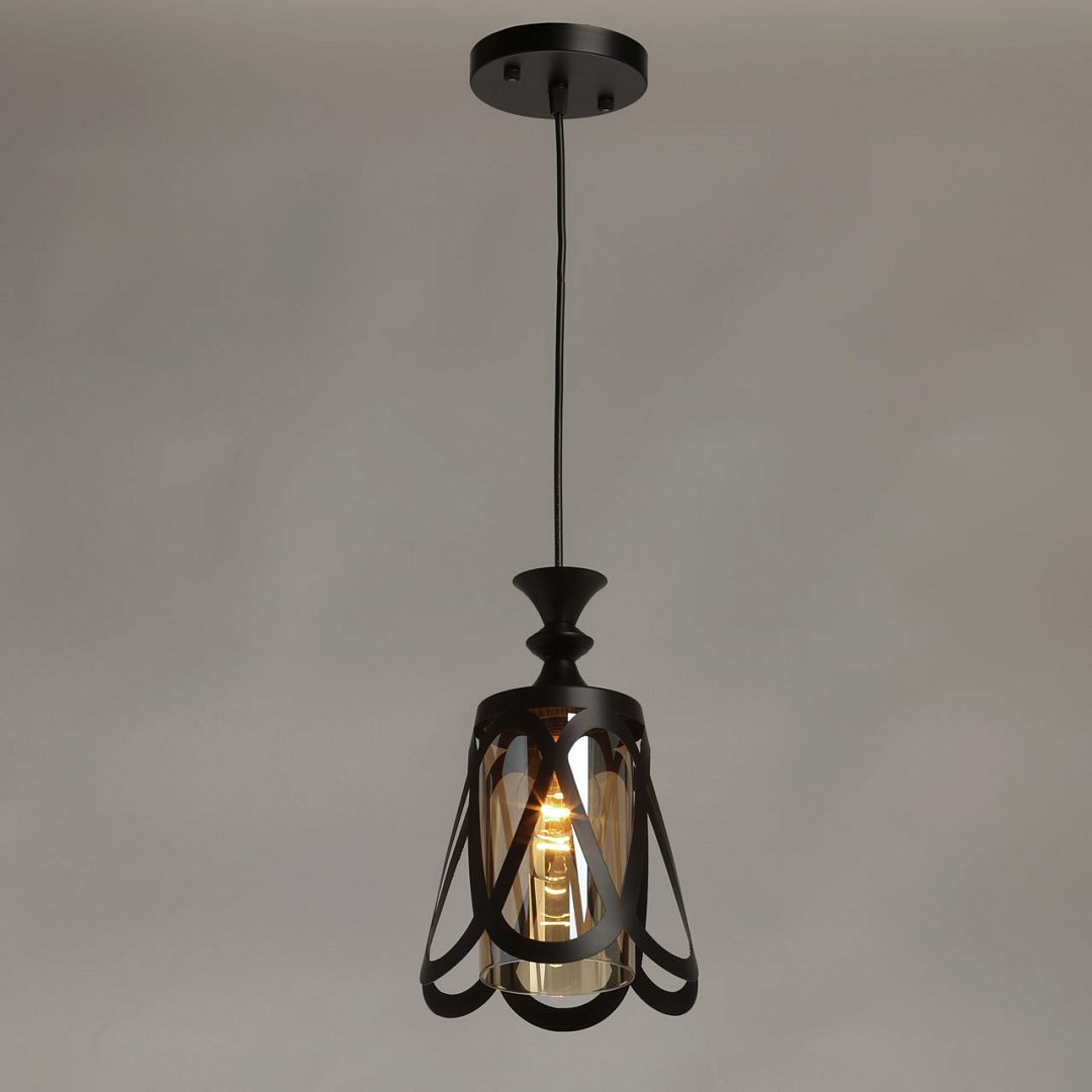 Подвес создает комфортное зональное освещение.Черный цвет металлического плафона актуален в стиле лофт и в брутальном интерьере.Стеклянный плафон цвета коньяк мягко преломляет свет. Заменяемый источник света удобен в эксплуатации. Возможность устанавливать комфортную высоту.