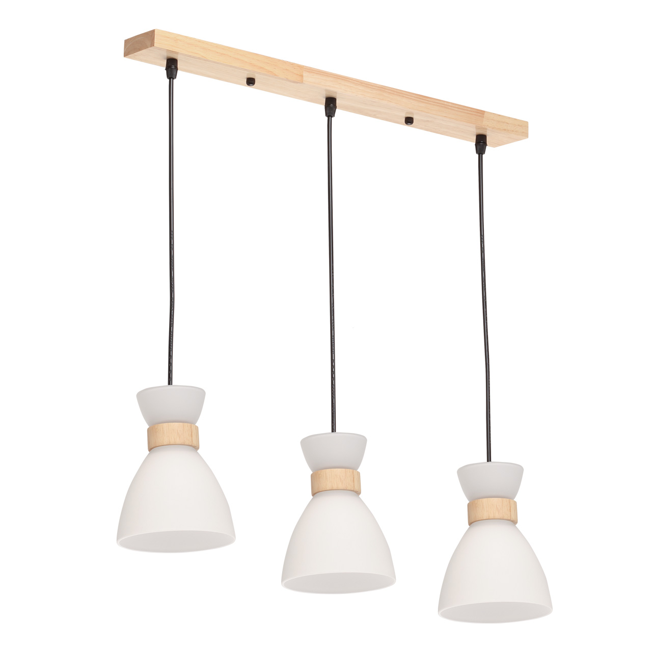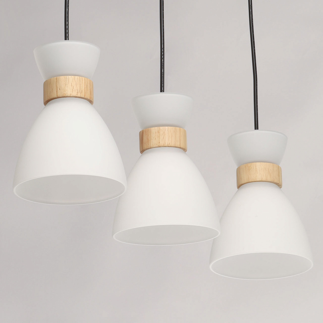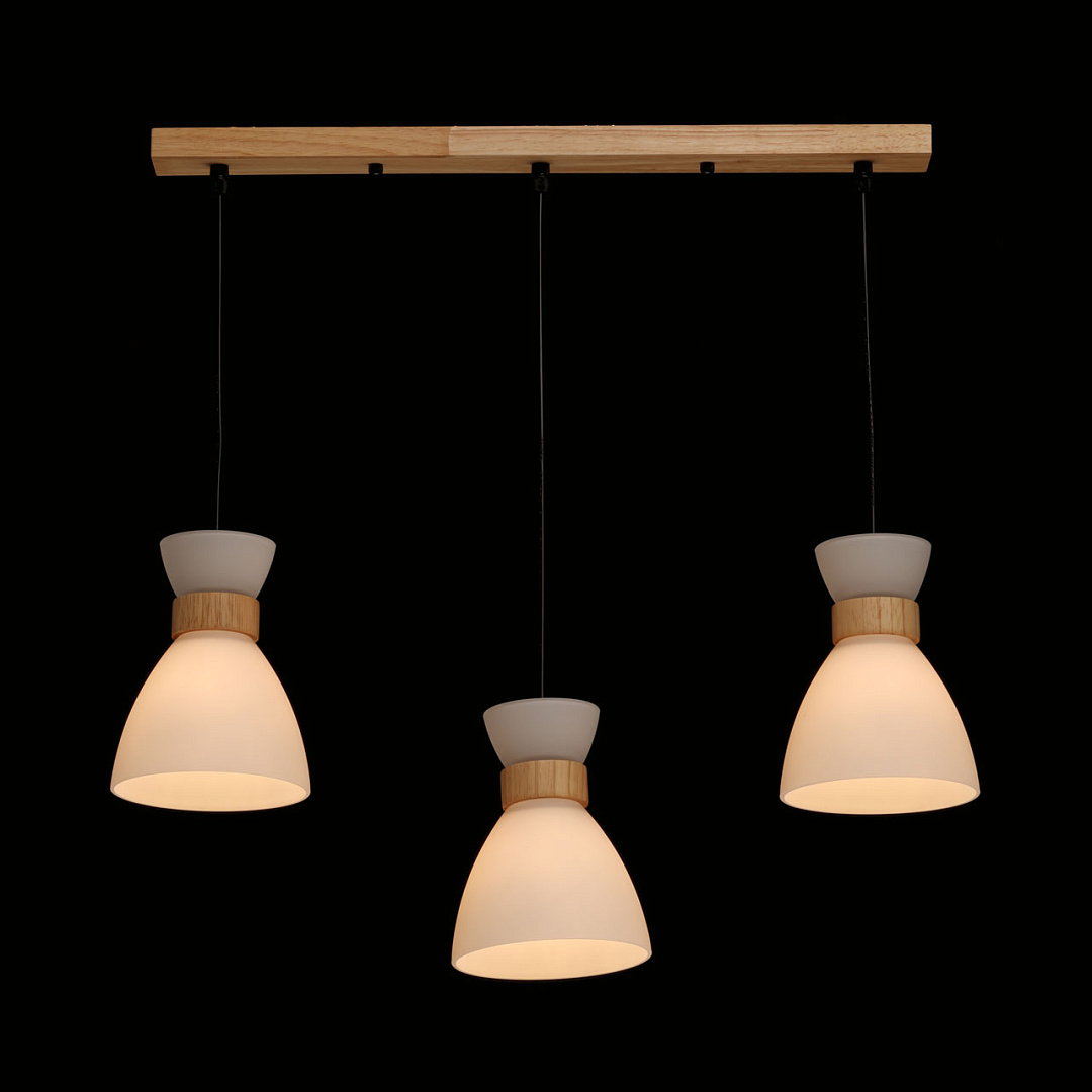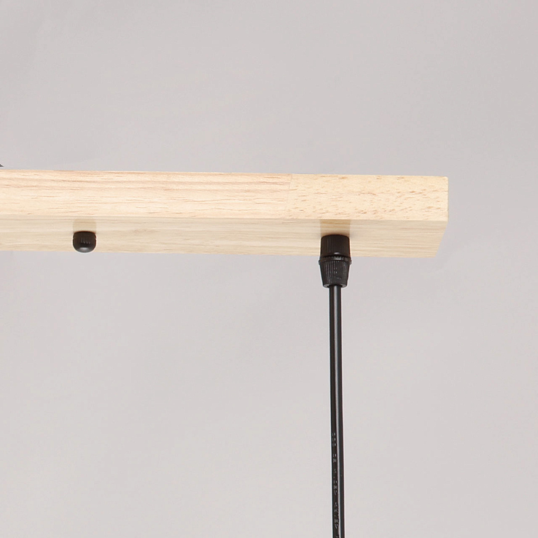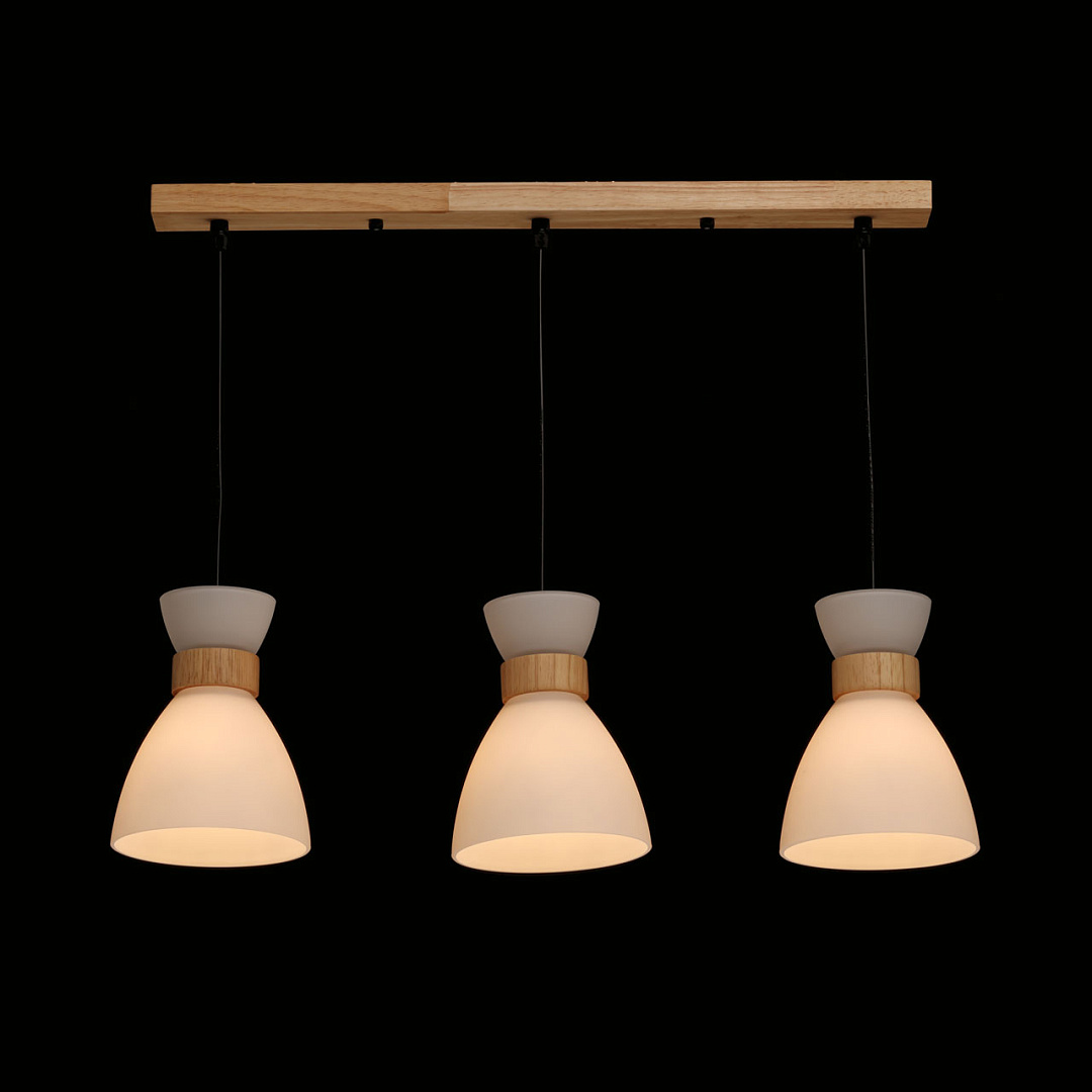 Сочетание светлого дерева и черных элементов создает контраст и придает люстре элегантности. Белый цвет плафонов создает мягкое и приятное освещение.Натуральное дерево добавляет люстре натуральности и органичности. Возможность устанавливать комфортную высоту. Заменяемые источники света удобны в эксплуатации.