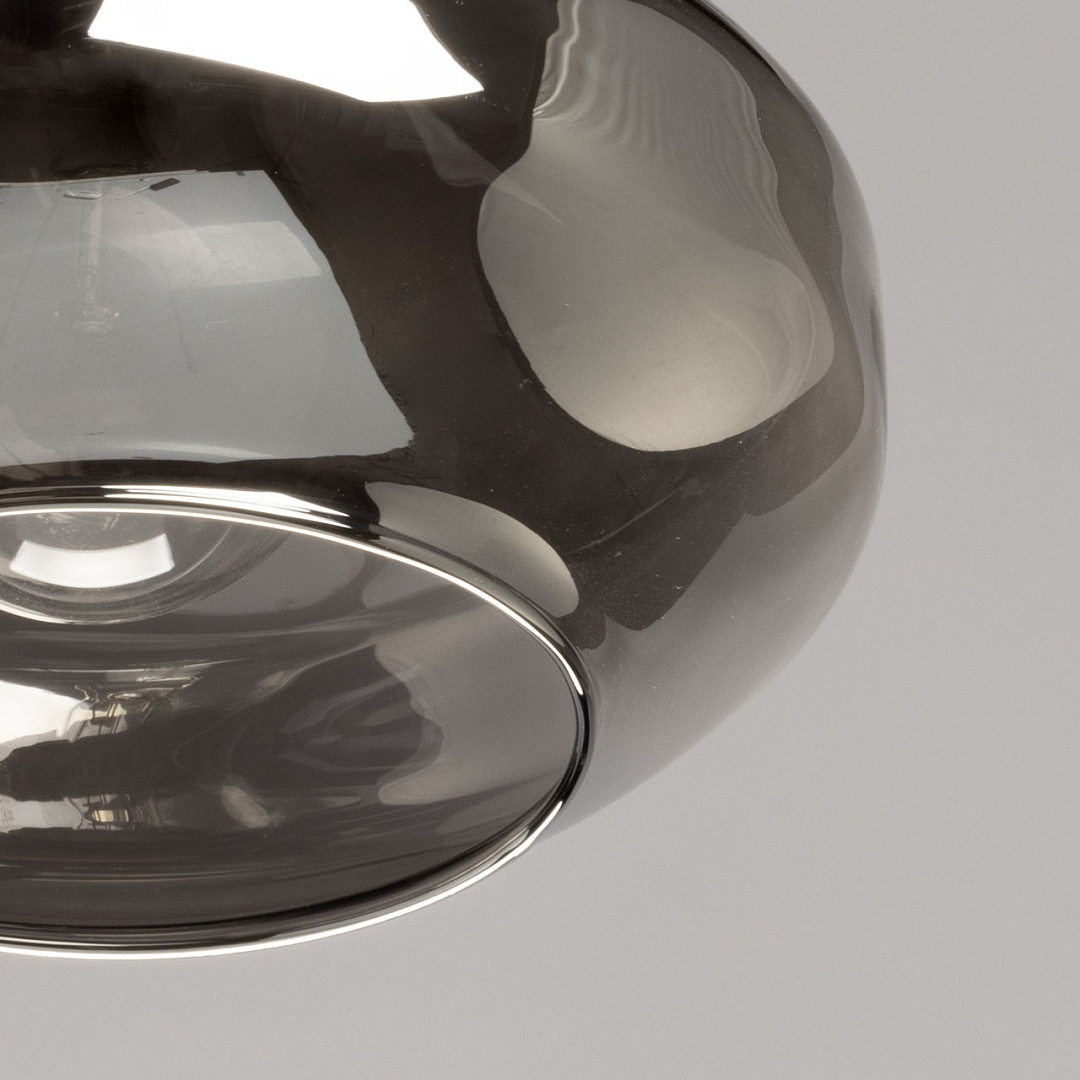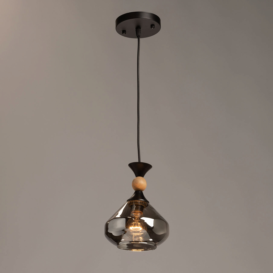 Оригинальная форма плафона красиво преломляет свет. Дымчатый цвет стекла создает мягкое комфортное освещение. Декоративный элемент из натурального дерева соответствует тренду на природные материалы.Заменяемый источник света удобен и практичен в эксплуатации. Возможность регулировки высоты позволяет адаптировать светильник под любой потолок, что делает его универсальным для различных помещений.
