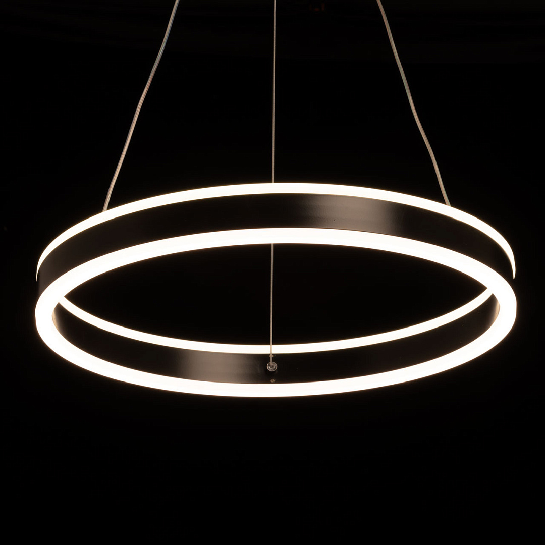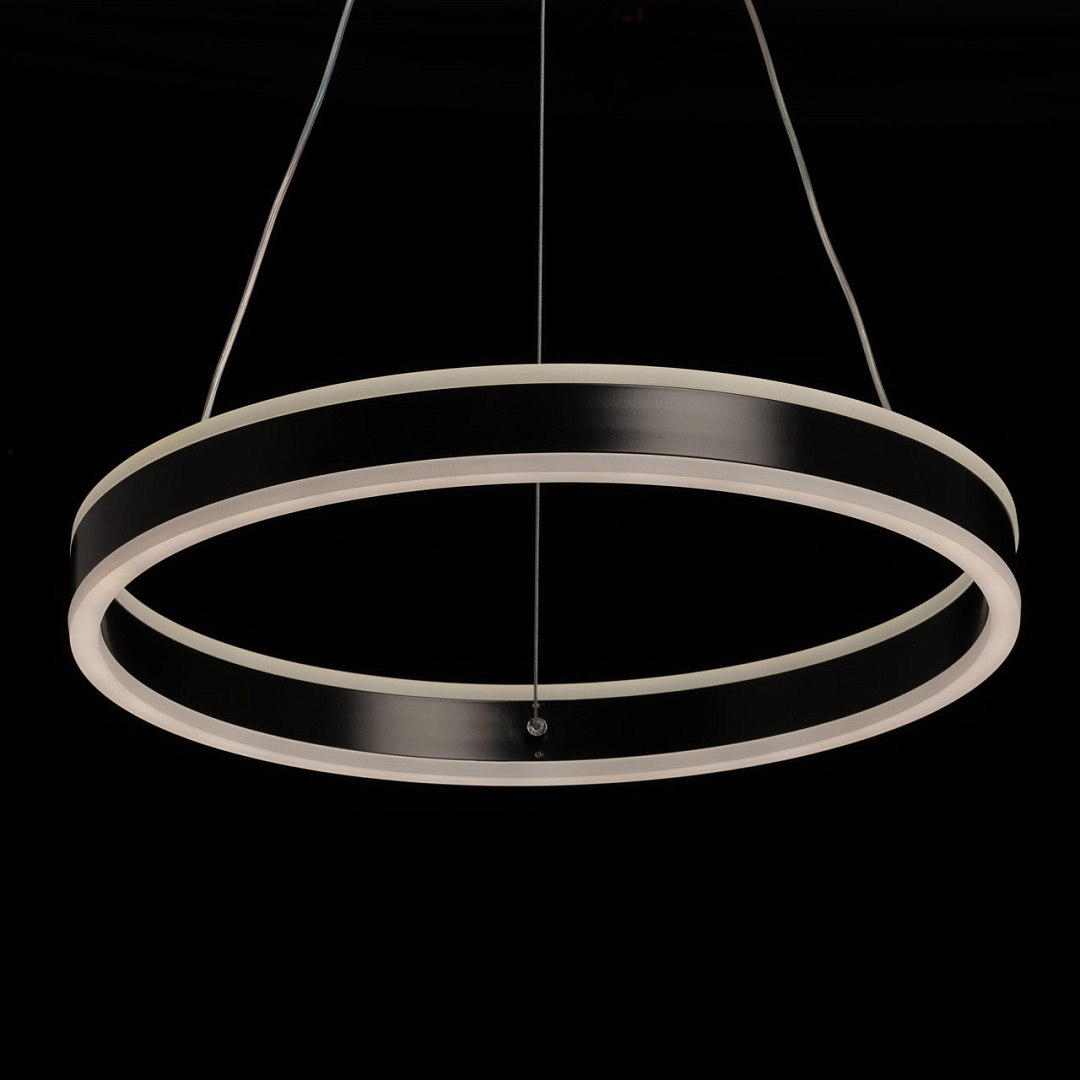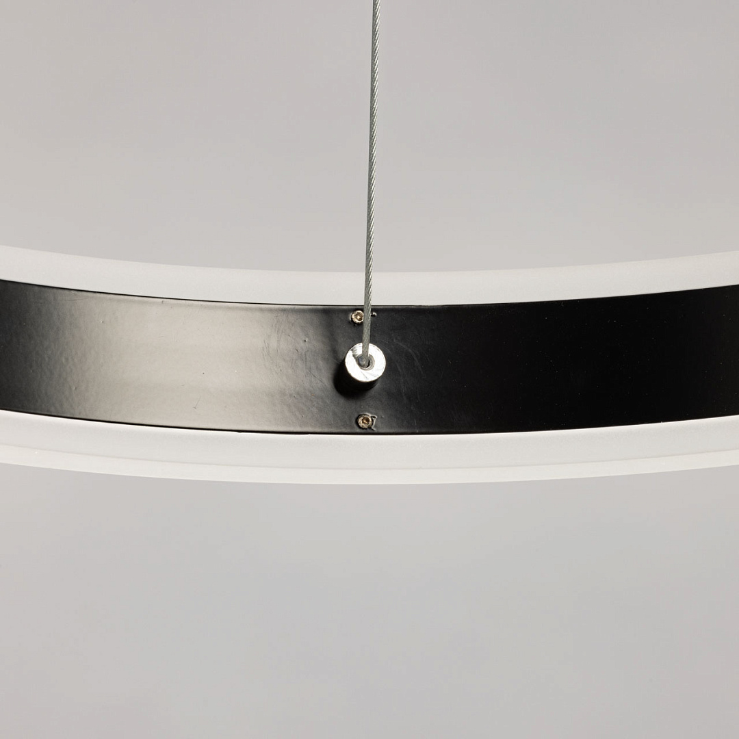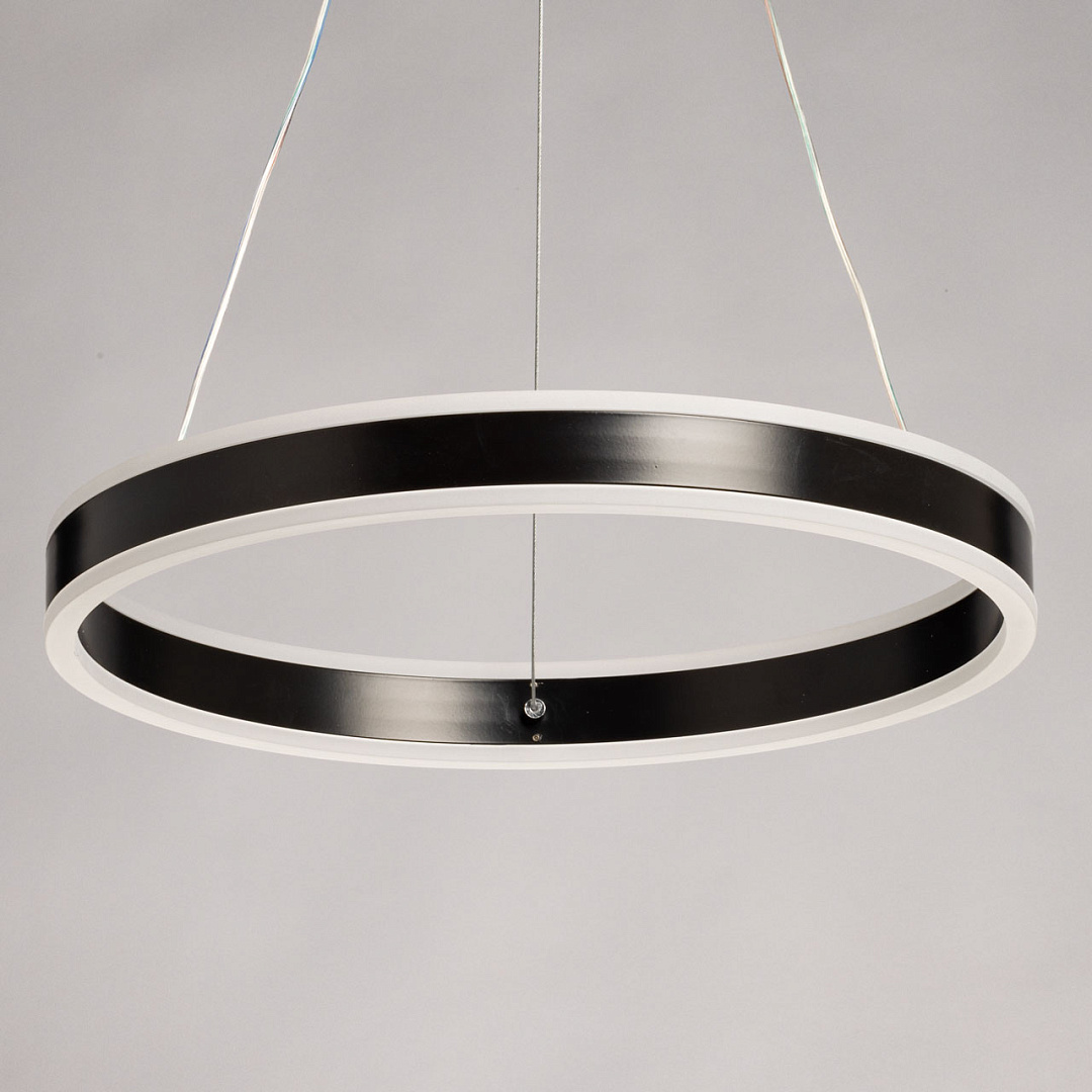 Черный цвет основания добавляет концептуальности и стиля в интерьере. Матово-белые акриловые панели создают мягкое освещение, что делает атмосферу в помещении более уютной и комфортной для глаз.Круговая форма светильника способствует равномерному распределению света, обеспечивая хорошую освещенность пространства под ним. Многорежимность с изменением цветовой температуры от 3000К до 6500К является элементом светодизайна и позволяет подобрать комфортную температуру света с помощью пульта. Возможность регулировки высоты светильника позволяет создать комфортные условия освещения.Светодиодные источники света экономичны и безопасны.