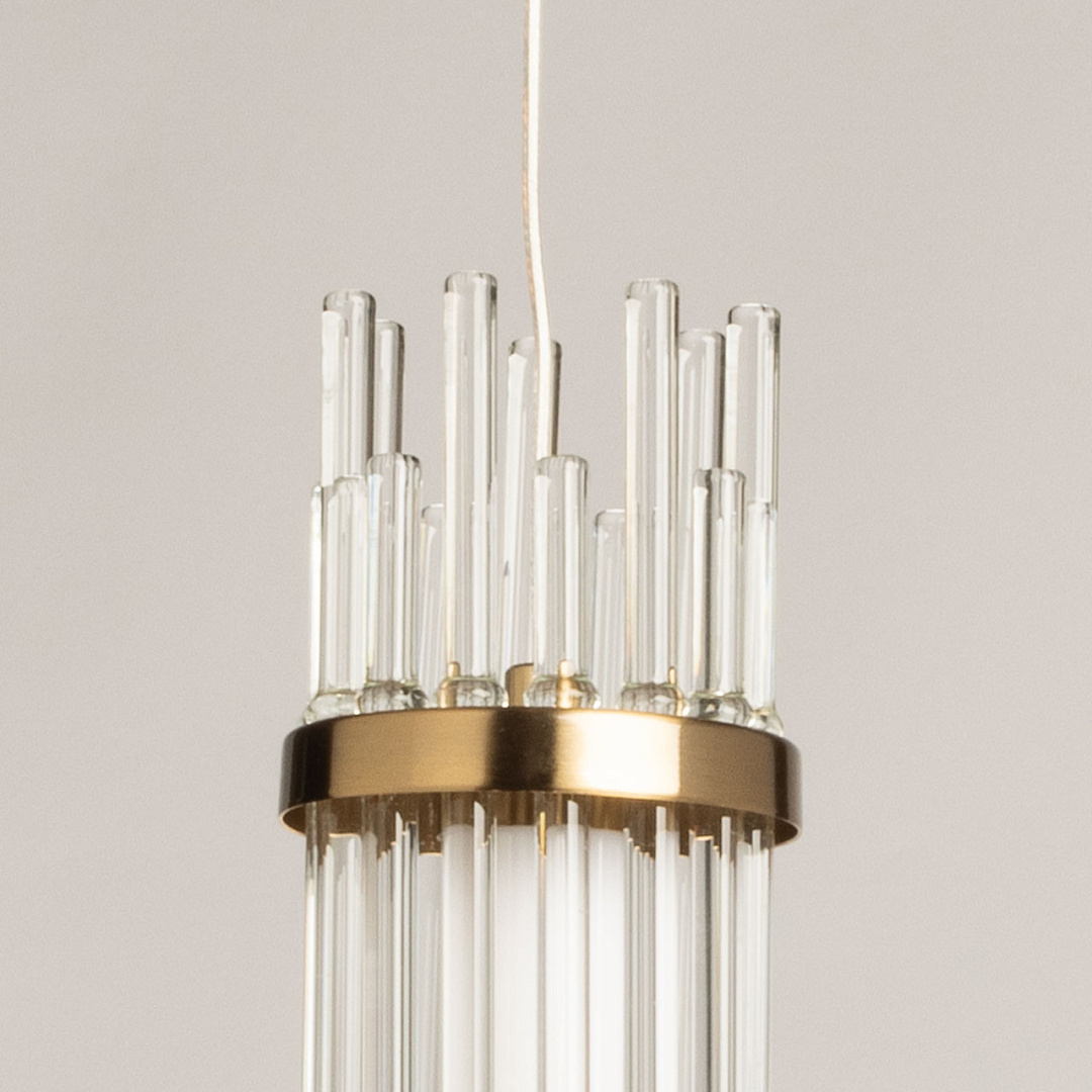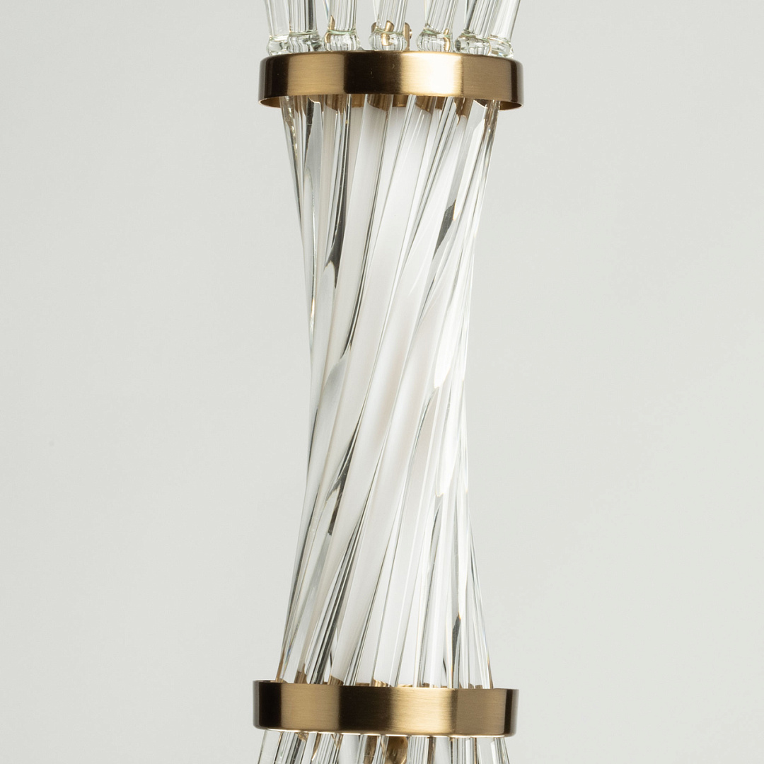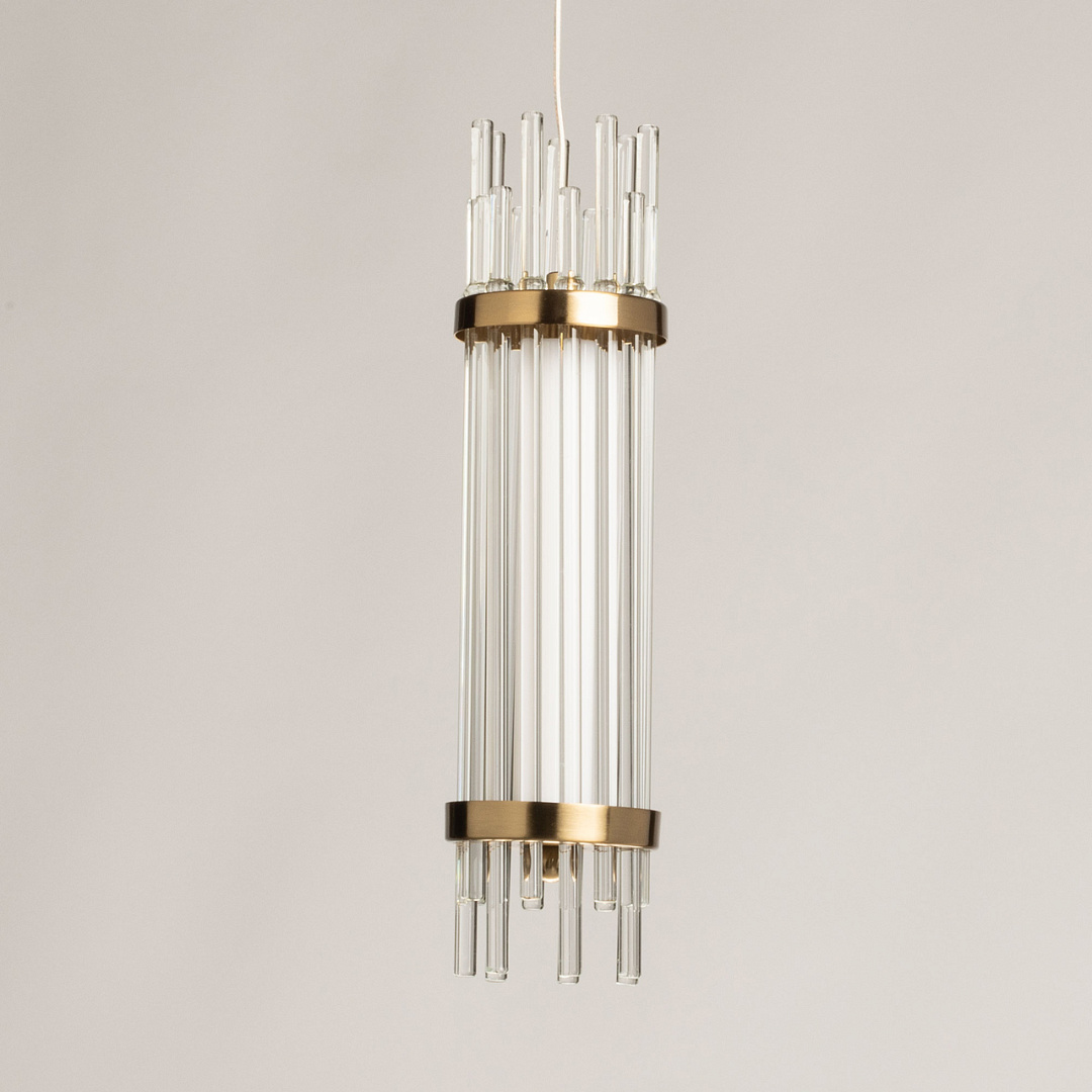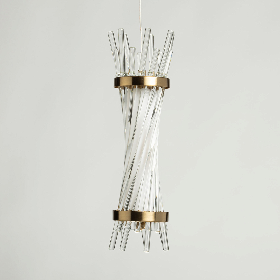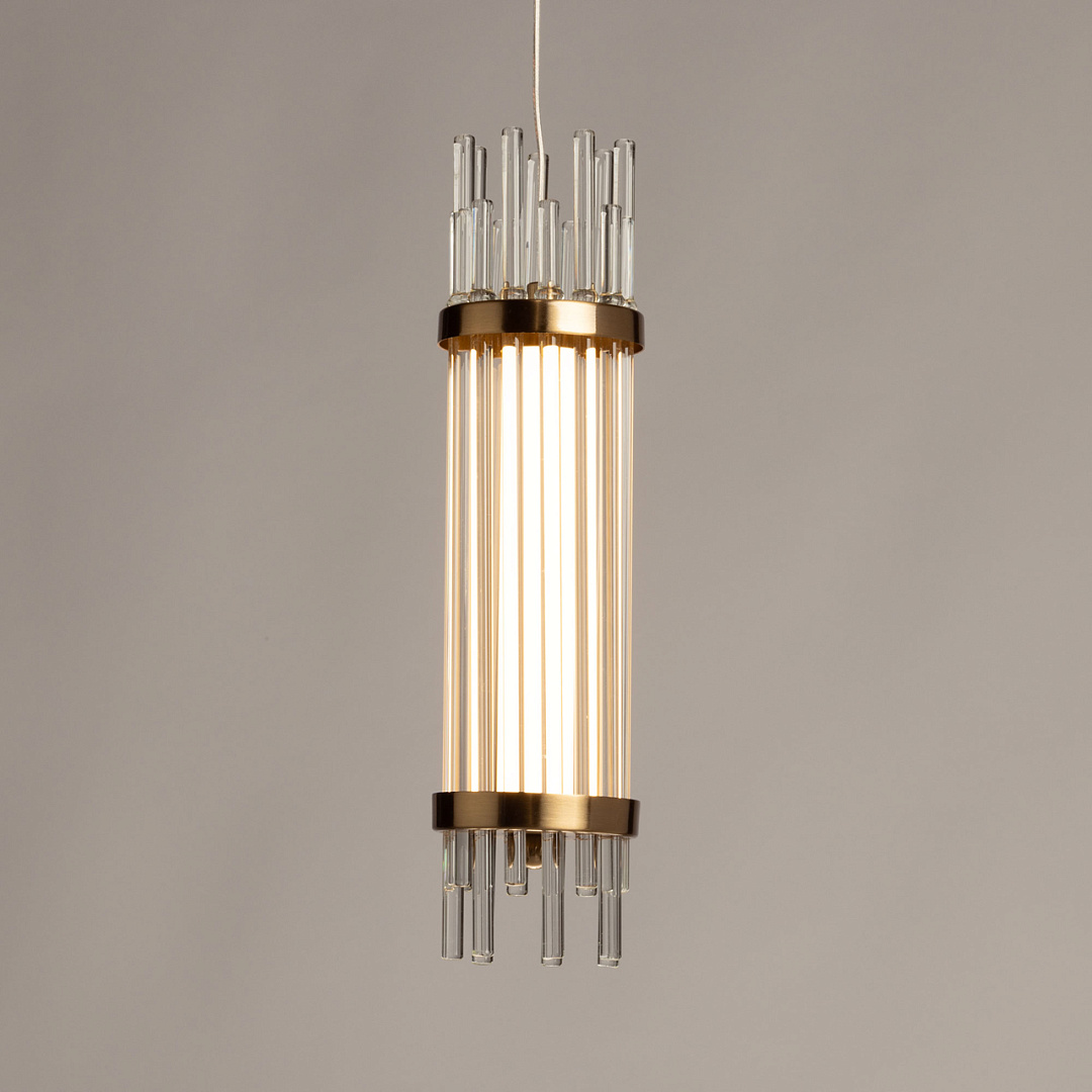 Актуальный цвет медовой бронзы сочетается с современным дизайном, создавая теплый образ дома. Трендовый декор из стекла в виде трубочек привлекает к себе внимание. Оригинальный дизайн и внимание к деталям делает светильник превосходным выбором для тех, кто ценит стиль и эстетику в своем интерьере. Качественные светодиоды и корпус из сплава алюминия  обеспечивают яркое освещение и долгий срок службы. Возможность регулировать комфортную высоту. Светодиодные источники света экономичны и безопасны.