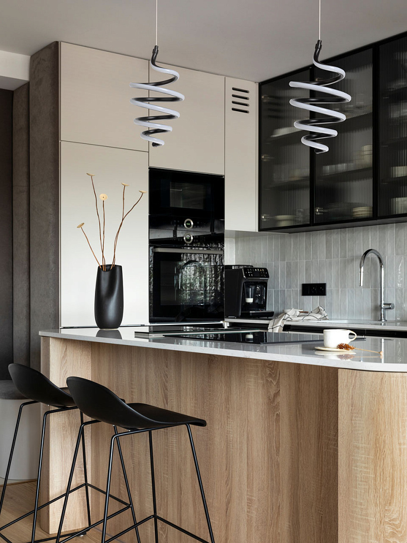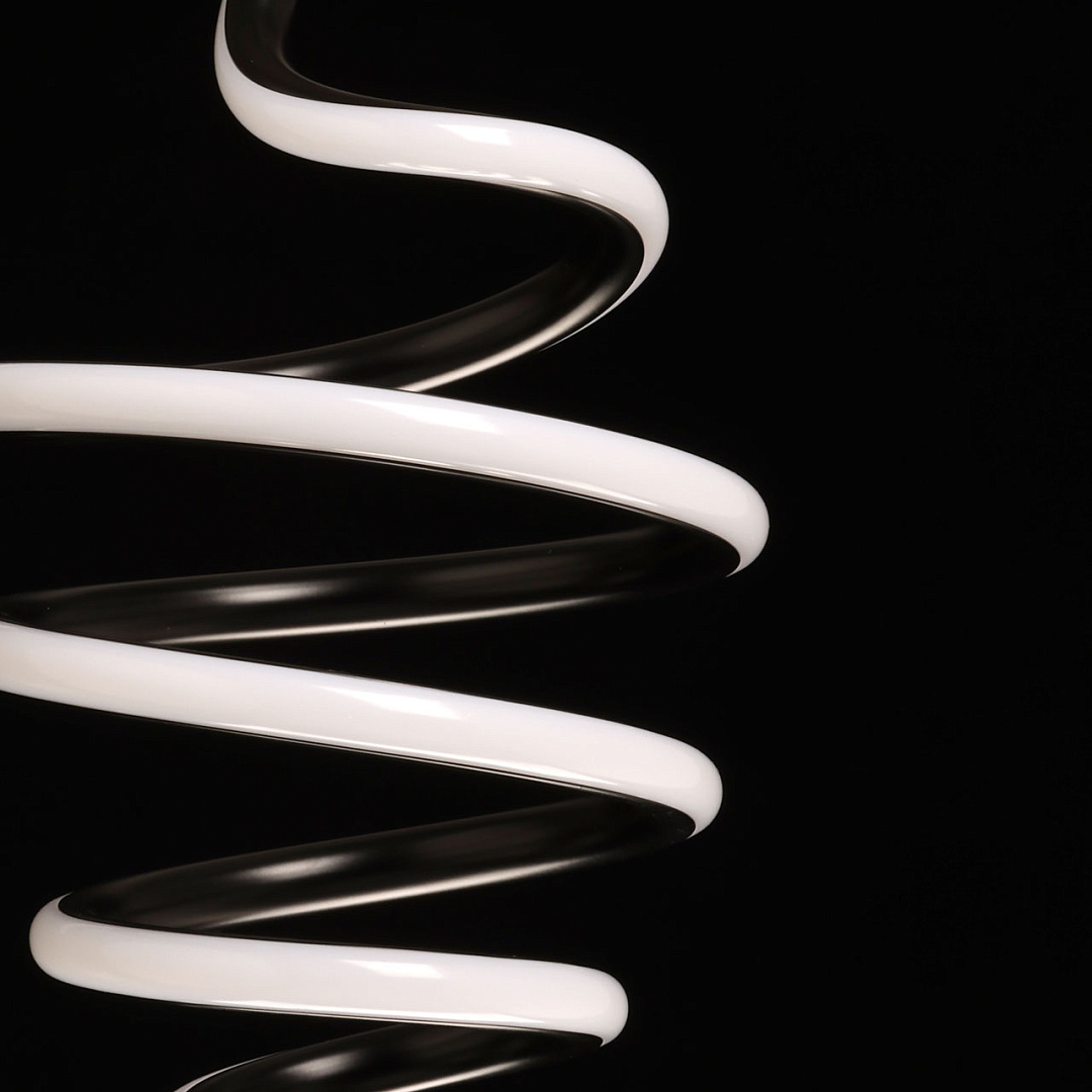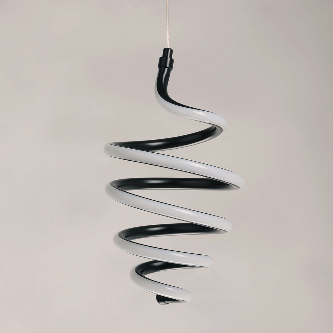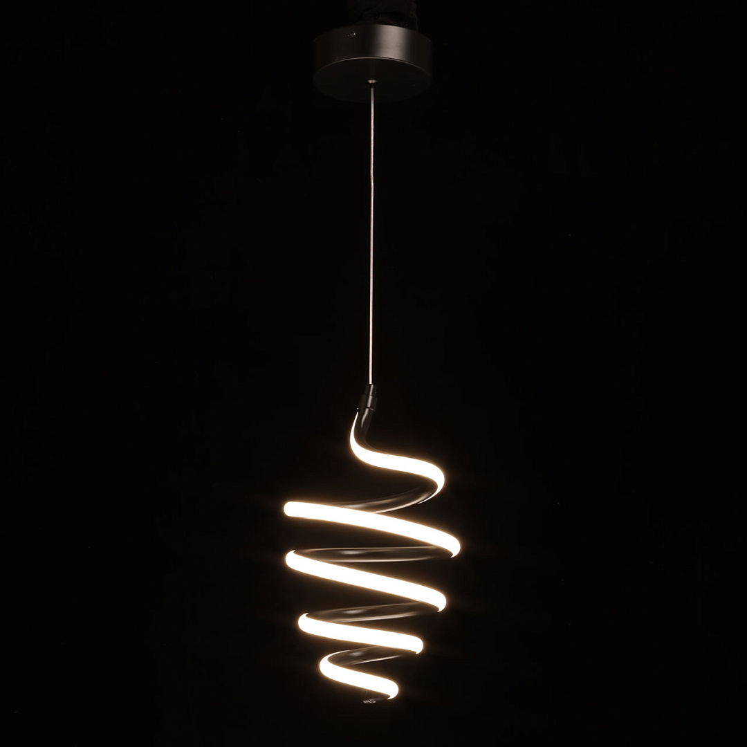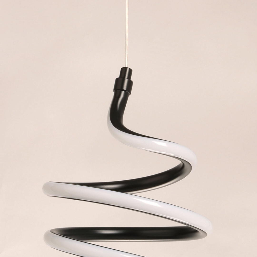 Черный цвет подвеса в сочетании с оригинальным дизайном делает его привлекательным акцентом в интерьере. Динамично закрученная спираль становится прекрасным выбором для современного интерьера. Сплав алюминия обеспечивает качественное отведение тепла и продлевает срок службы светодиодов. Светодиодные источники света экономичны и безопасны. Возможность устанавливать комфортную высоту.