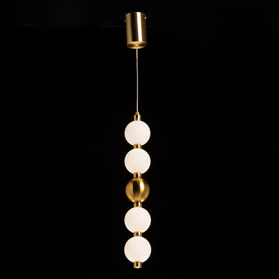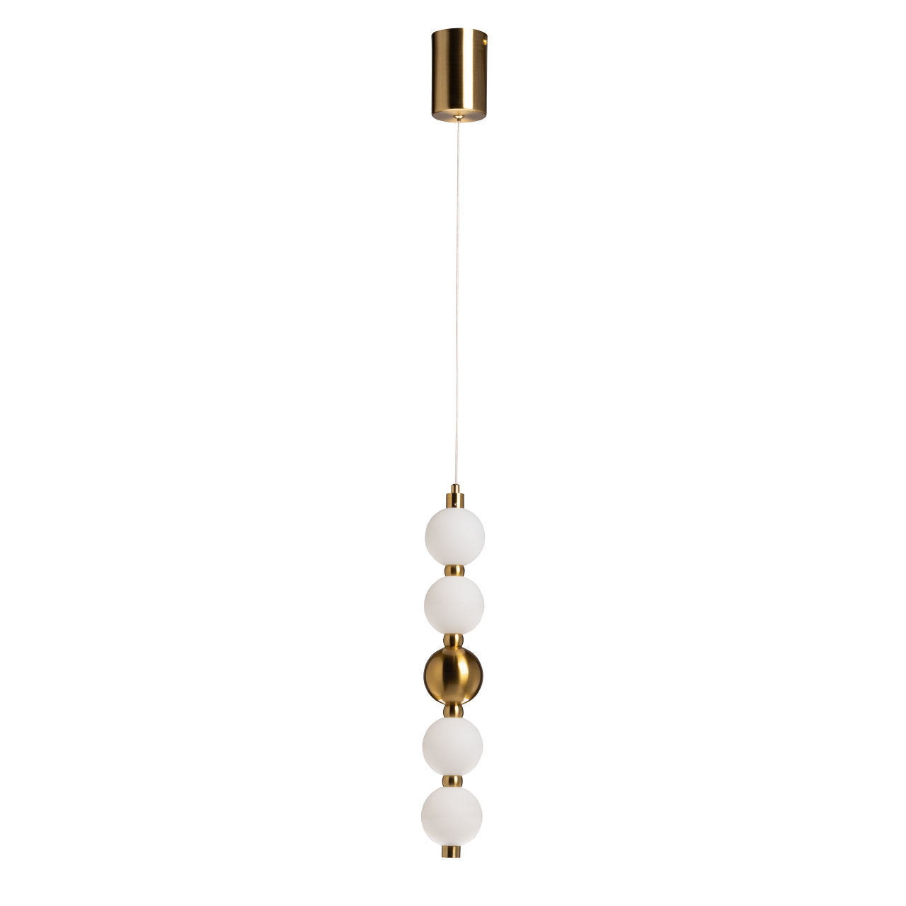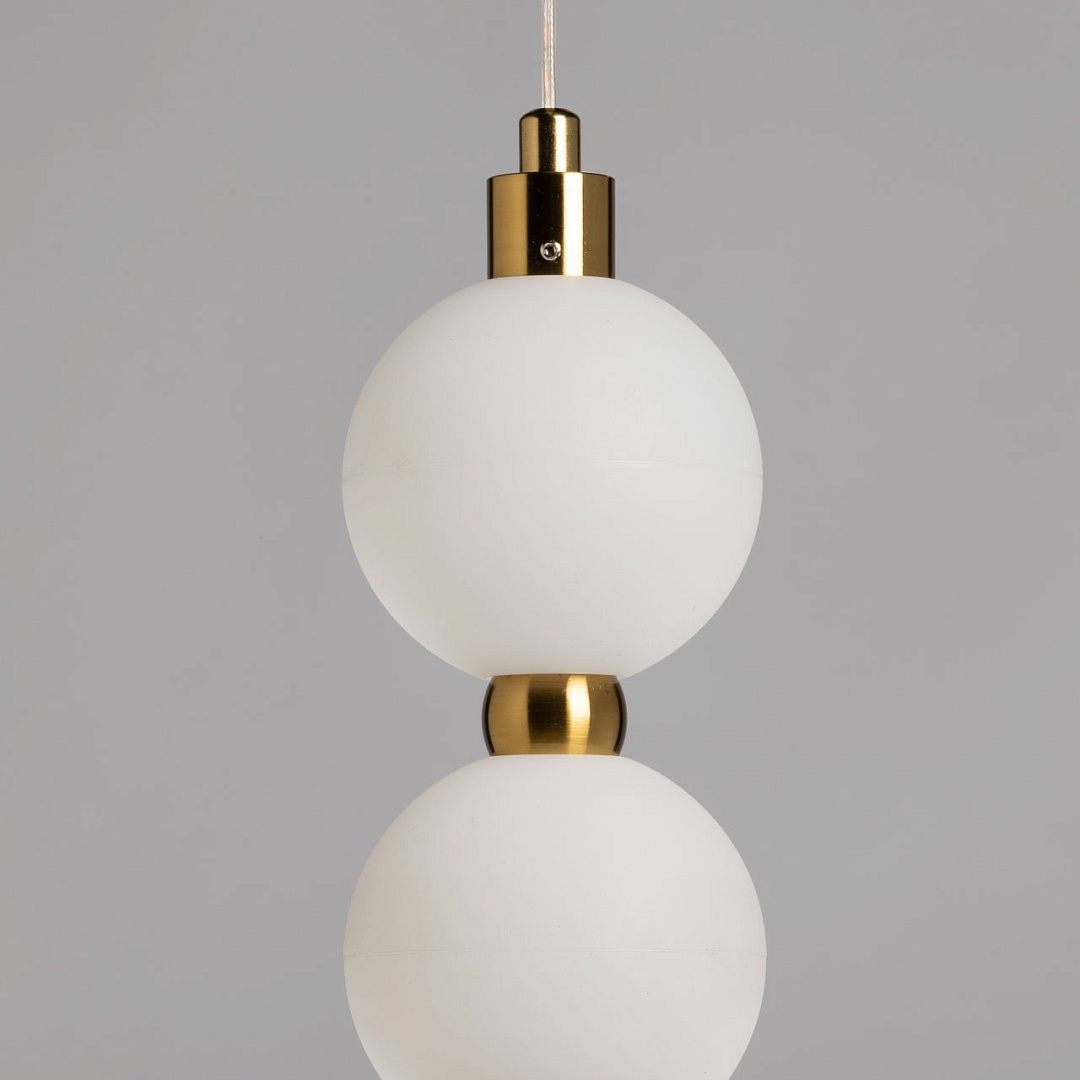 Основание золотого цвета смотрится изящно на подвесе в современном дизайне.  Плафон из белого акрила создает мягкое и комфортное освещение. Сочетание цвета золота и оригинального плафона делают подвес стильным элементом интерьера. Регулируемый подвес позволяет устанавливать комфортную высоту. Заменяемые источники света удобны в эксплуатации.