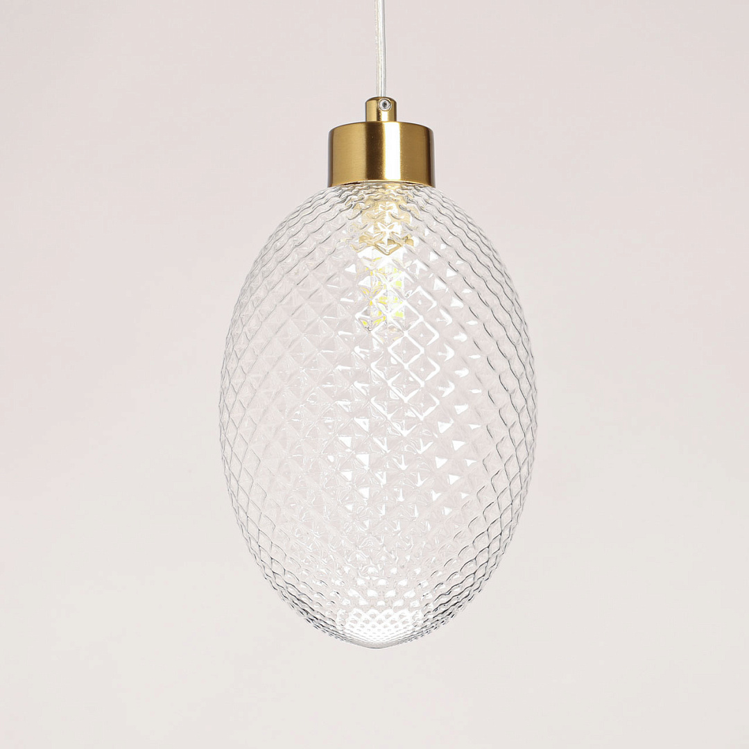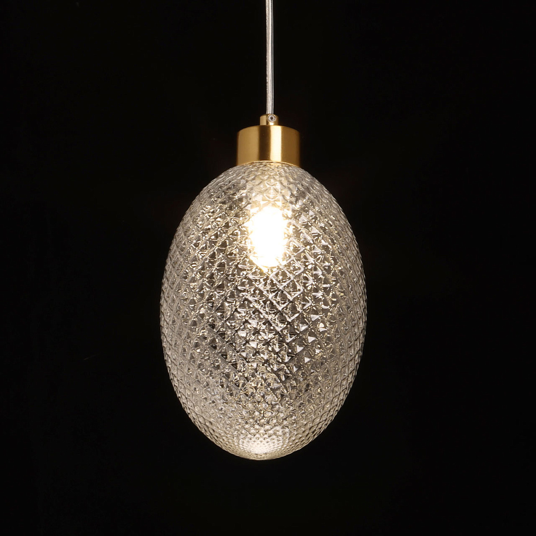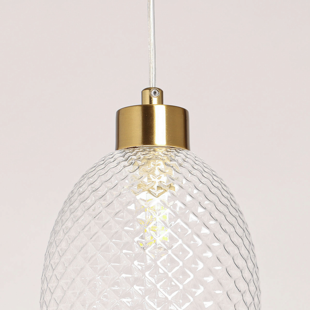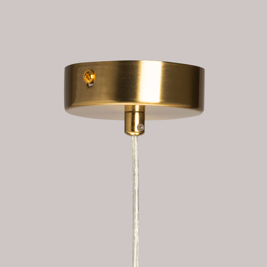 Благородный цвет латуни придает подвесу элегантности. Фактурное стекло плафона создает приятный визуальный эффект. Модная форма византийской шишки представляет собой стильный элемент. Заменяемый источник света удобен в эксплуатации. Возможность регулировать комфортную высоту.