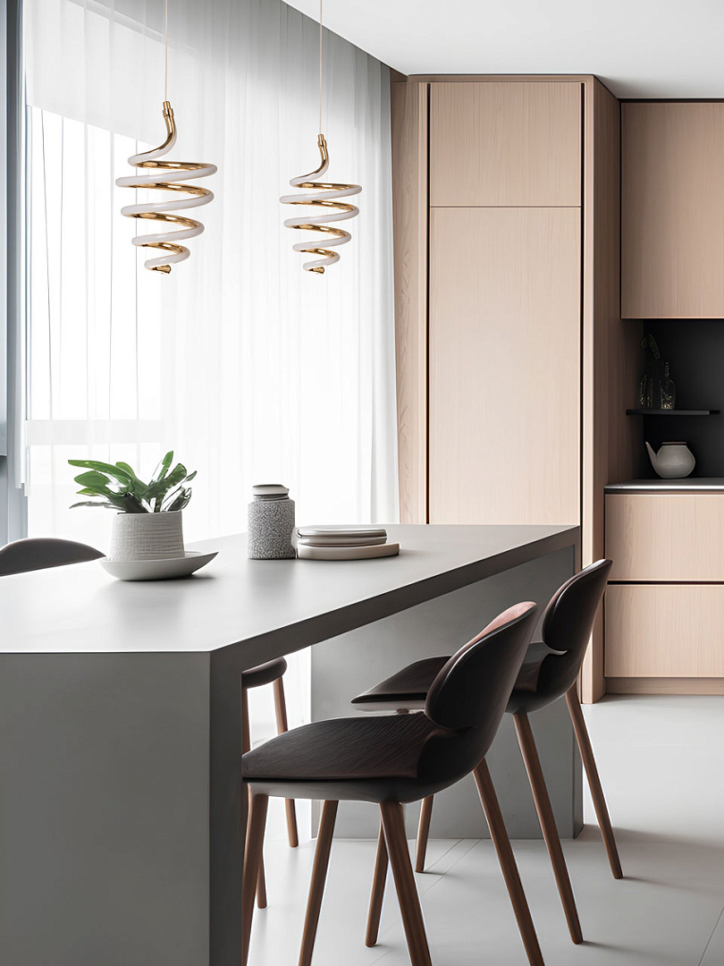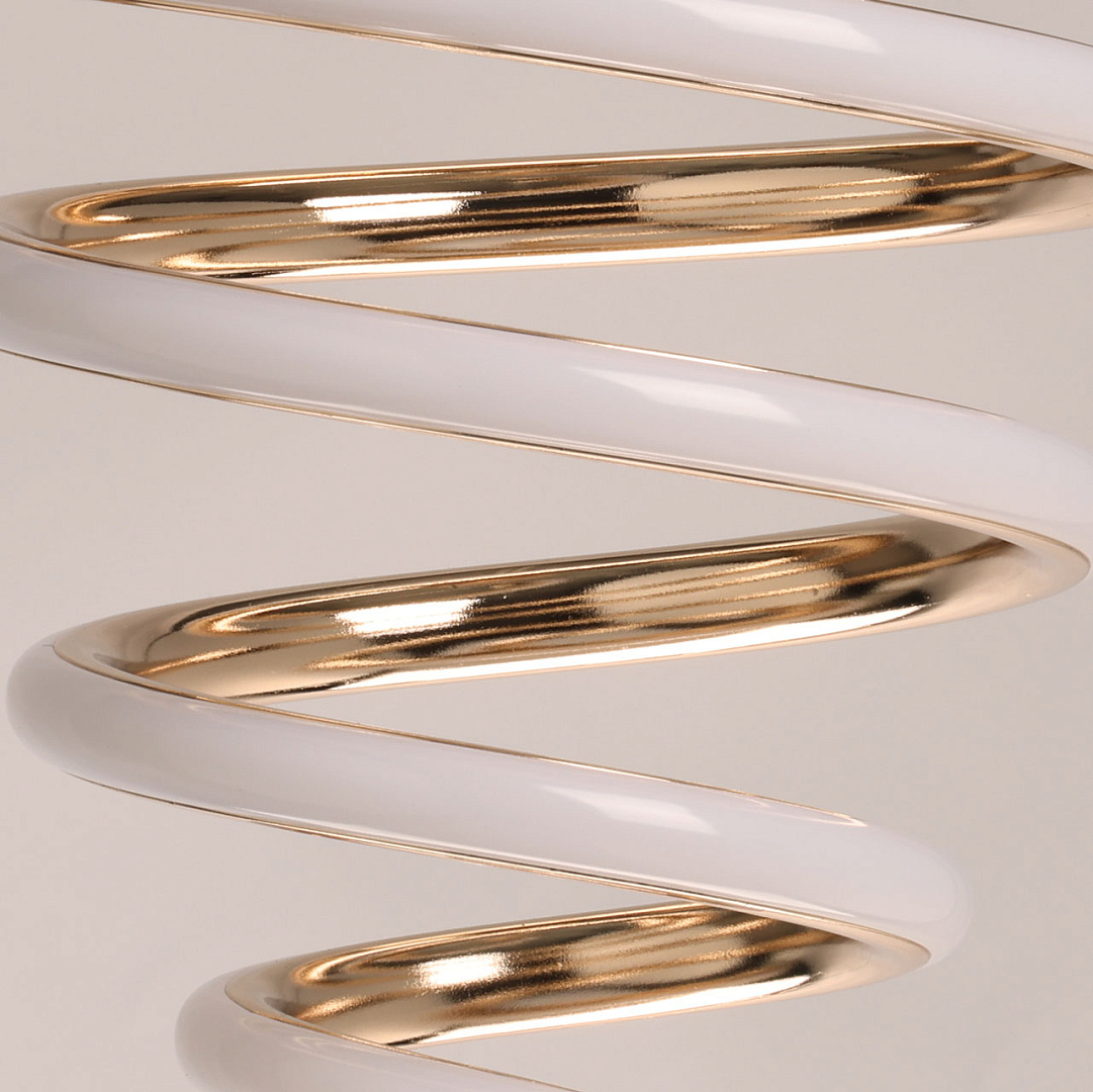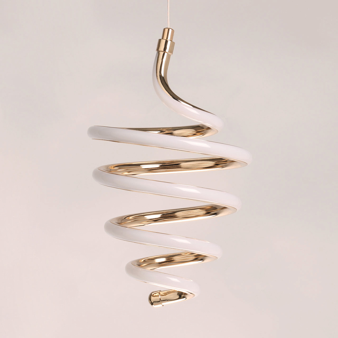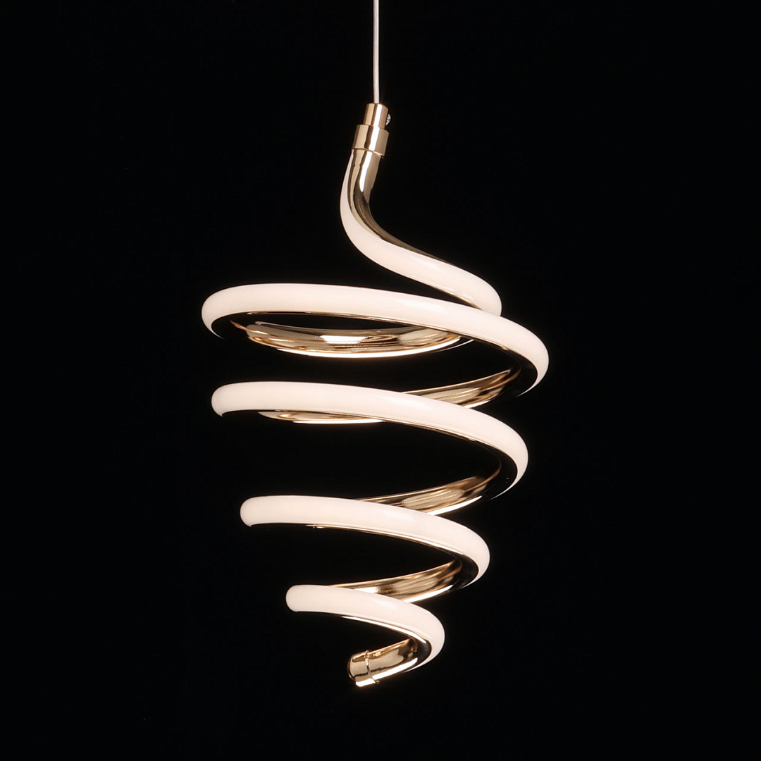 Насыщенный золотой цвет придает подвесу благородства, а в  сочетании с оригинальным дизайном делает его привлекательным акцентом в интерьере. Динамично закрученная спираль становится прекрасным выбором для современного интерьера. Сплав алюминия обеспечивает качественное отведение тепла и продлевает срок службы светодиодов. Светодиодные источники света экономичны и безопасны. Возможность устанавливать комфортную высоту.