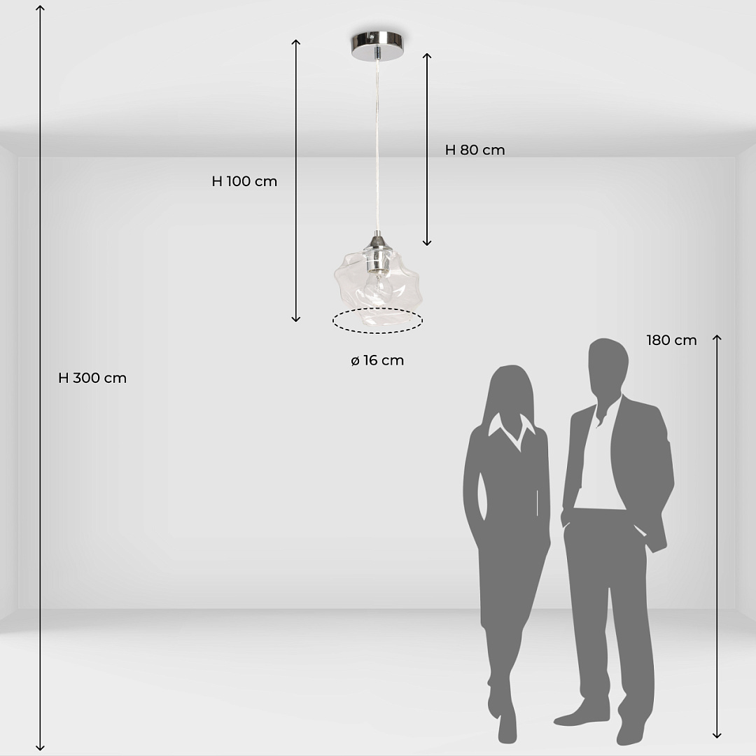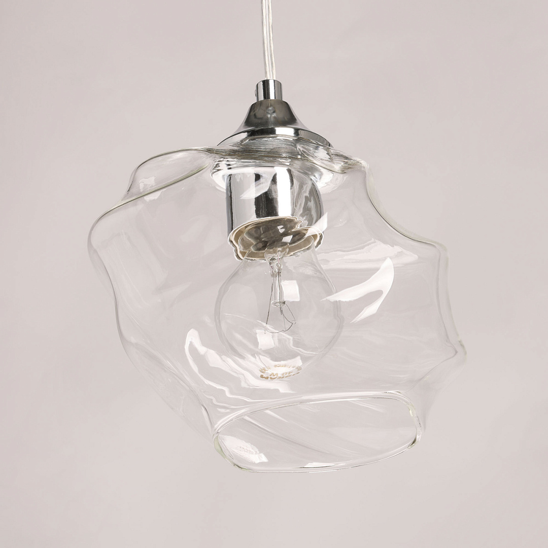 Одиночный подвес создает комфортное местное освещение. Плафон из прозрачного стекла оригинальной формы, имитирующей натуральный минерал, привлекает к себе внимание. Заменяемые источники света удобны в эксплуатации. Возможность устанавливать комфортную высоту.