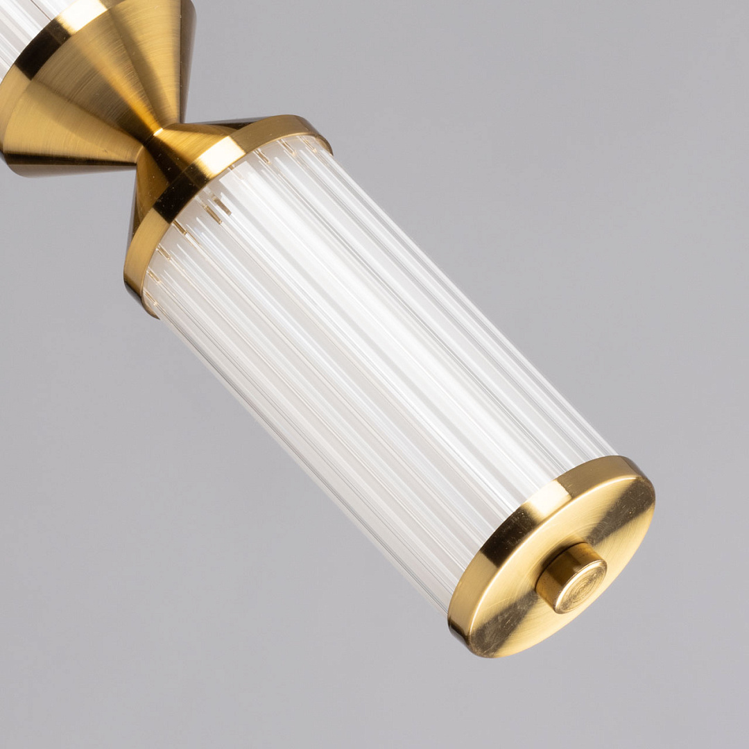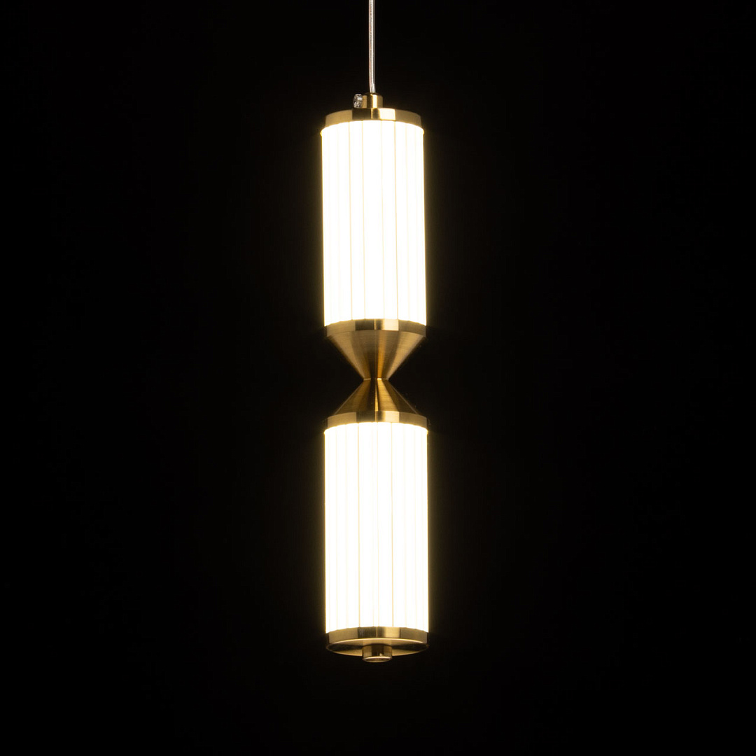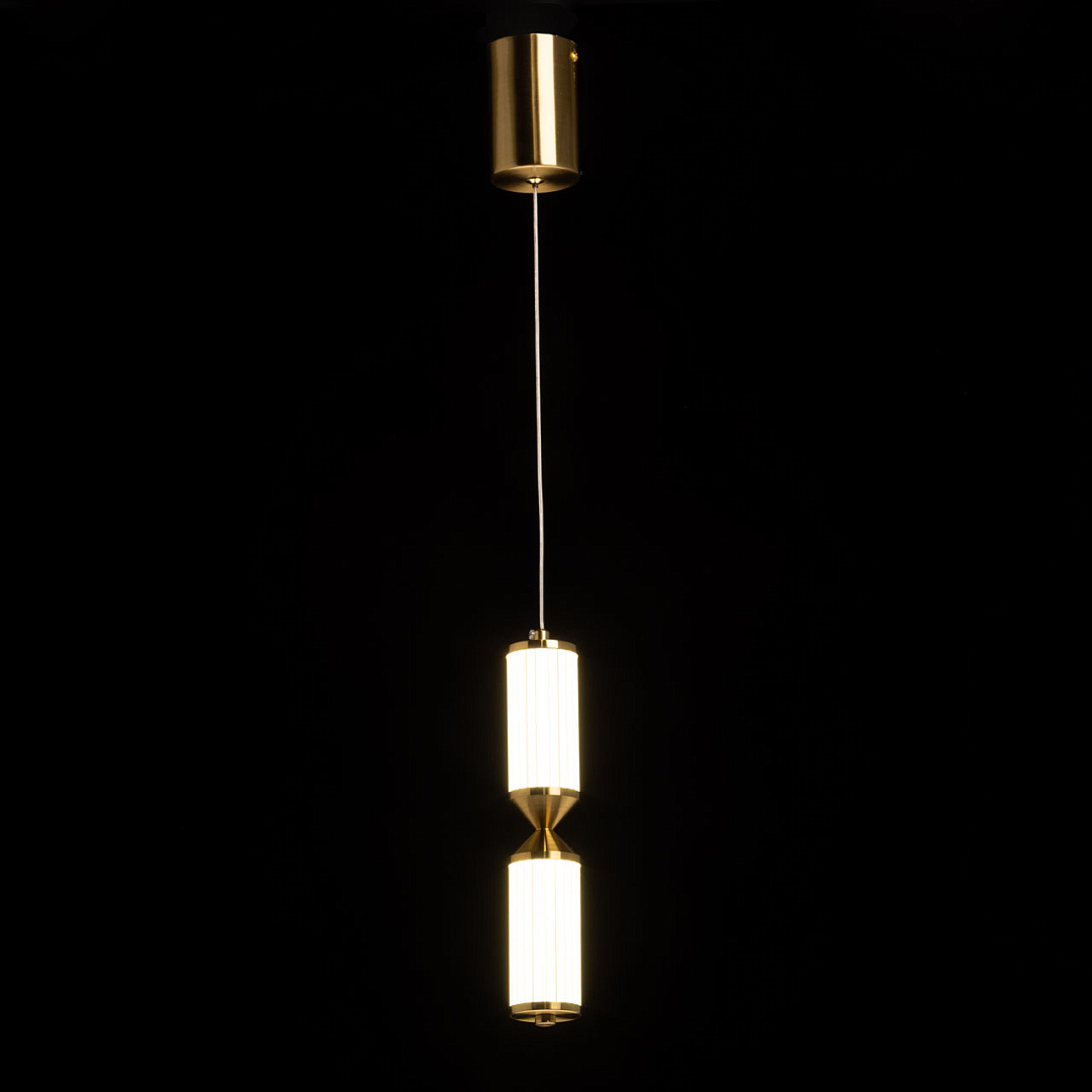 Основание золотого цвета смотрится изящно на подвесе в современном дизайне.  Плафон из белого акрила создает интересный эффект игры света и теней. Сочетание цвета золота и оригинального плафона делают подвес стильным элементом интерьера. Многорежимность с изменением цветовой температуры от 3000К до 6500К является элементом светодизайна и позволяет подобрать комфортную температуру света. Качественные светодиоды и корпус из сплава алюминия  обеспечивают яркое освещение и долгий срок службы. Возможность регулировать комфортную высоту. Светодиодные источники света экономичны и безопасны.