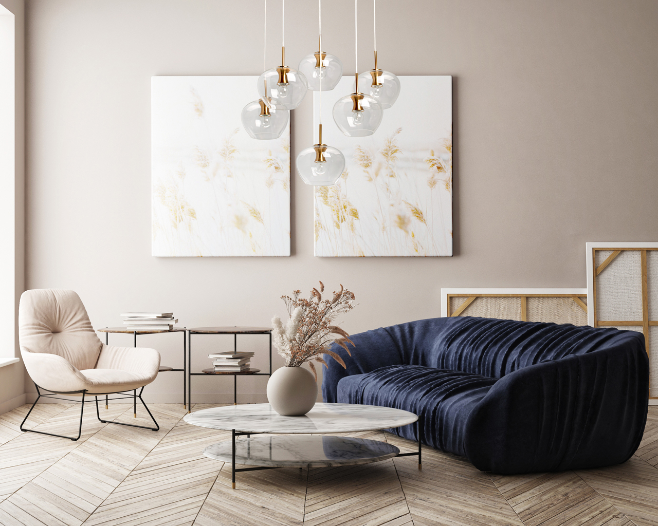 Светильник выполнен в модном минималистичном стиле. Актуальное сочетание основания цвета меди и прозрачных плафонов подойдет для большинства классических интерьеров и большой части современных. Широкая семья дает возможность комплексно осветить помещения разных размеров в едином стиле.