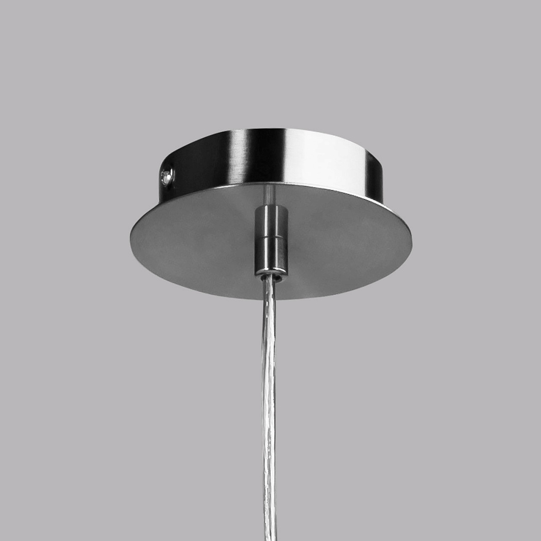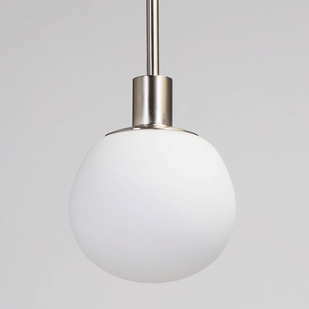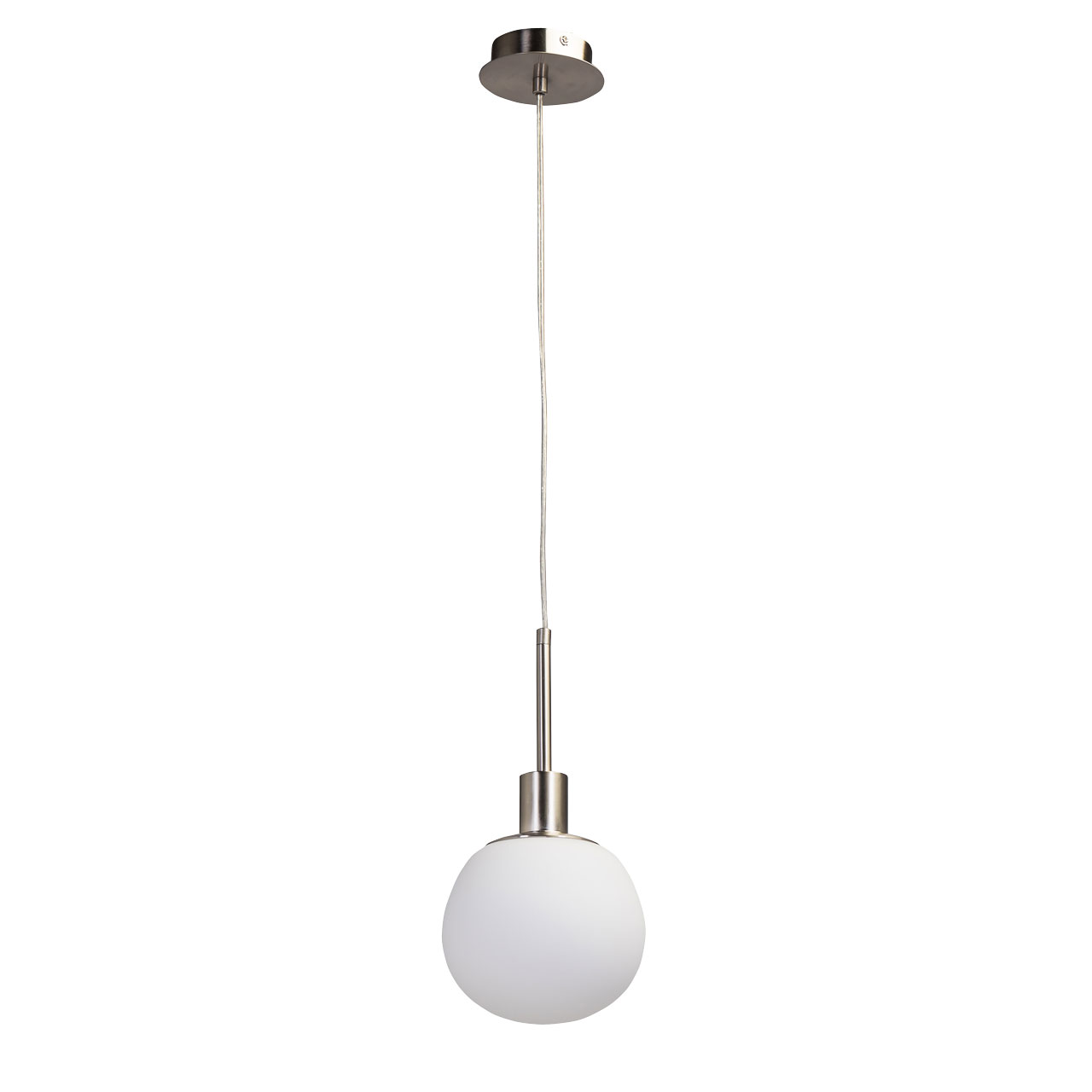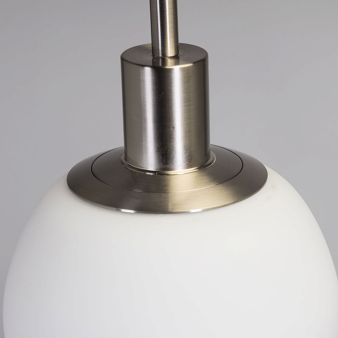 Современный минималистичный дизайн.Актуальный цвет матового никеля.Возможность регулировать комфортную высоту.Матовый плафон создает мягкое рассеянное освещение.Заменяемые источник света удобен в эксплуатации.