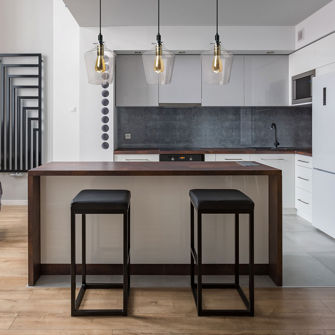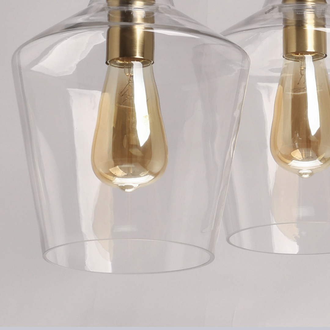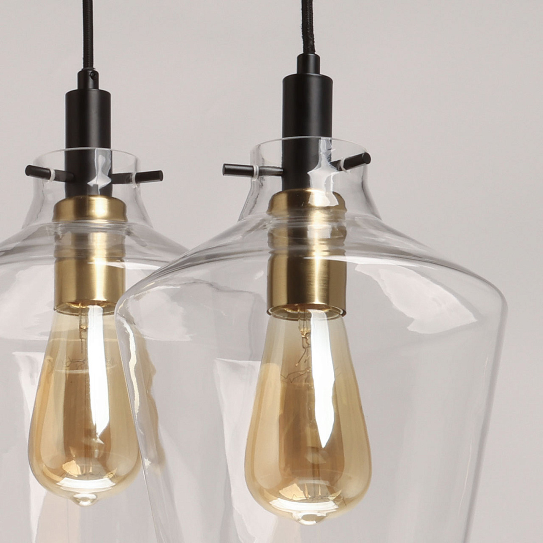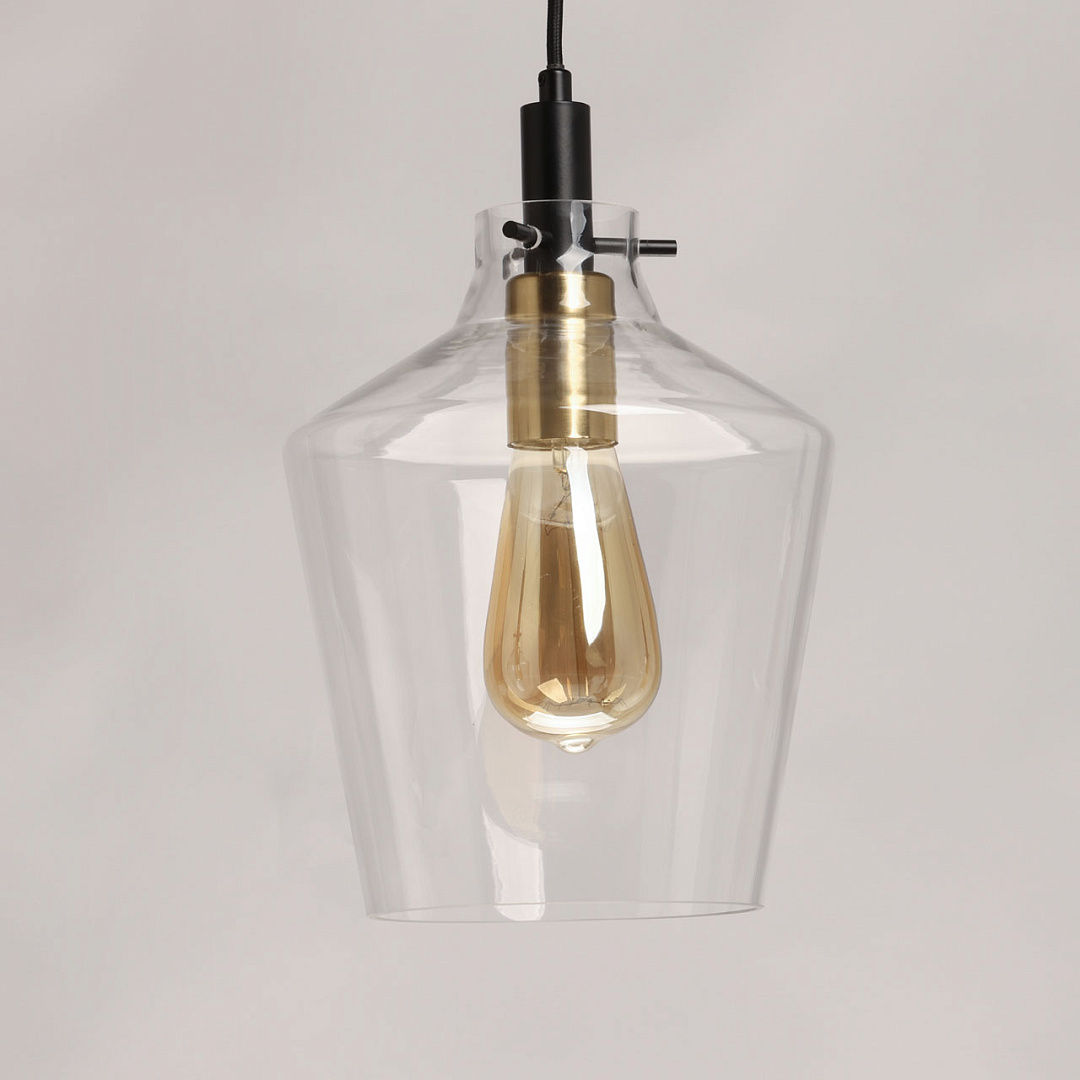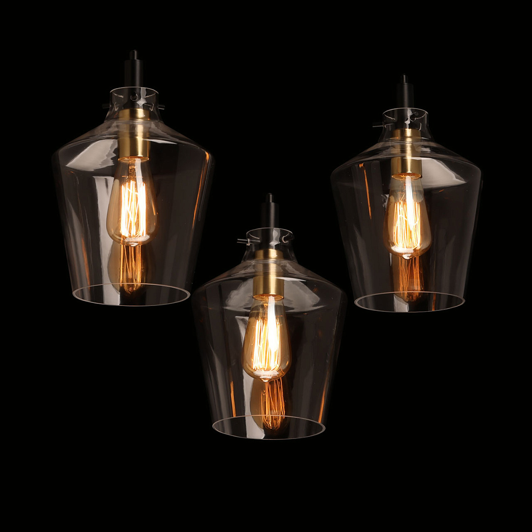 Светильник выполнен в современном стиле лофт. Черный цвет светильника в комбинации с цветом латунь и оригинальные плафоны из прозрачного стекла придают светильнику винтажный вид.Заменяемые источники света удобны в эксплуатации. Возможность регулировать комфортную высоту.