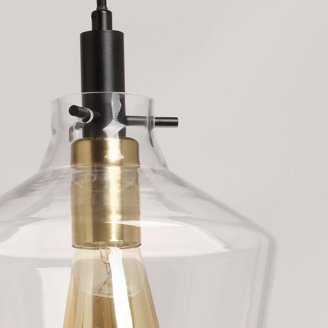 Светильник выполнен в современном стиле лофт. Черный цвет светильника в комбинации с цветом латунь и оригинальный плафон из прозрачного стекла придают светильнику винтажный вид.Заменяемый источник света удобен в эксплуатации. Возможность регулировать комфортную высоту.