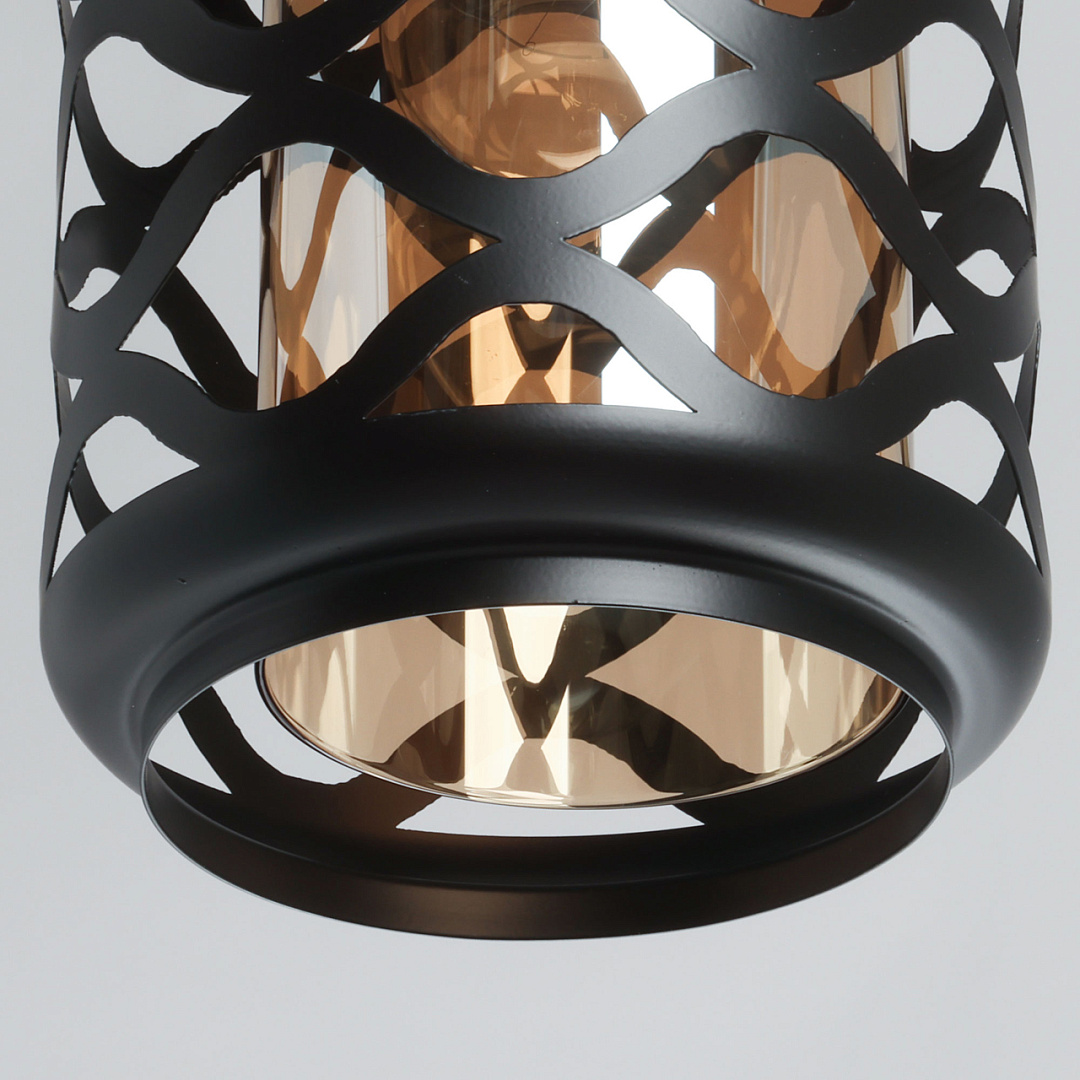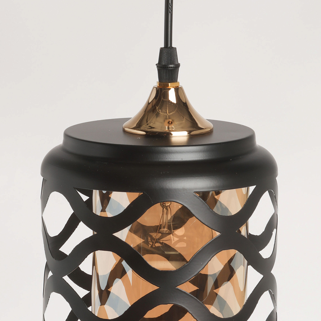 Одиночный подвес создает комфортное зональное освещение. Сочетание на контрасте матового черного цвета и глянцевого цвета золота эффектно выделяет подвес на потолке.Черный цвет металлического плафона актуален в стиле лофт и в брутальном интерьере.Стеклянный плафон цвета шампань мягко преломляет свет.Заменяемый источник света удобен в эксплуатации.Возможность устанавливать комфортную высоту.