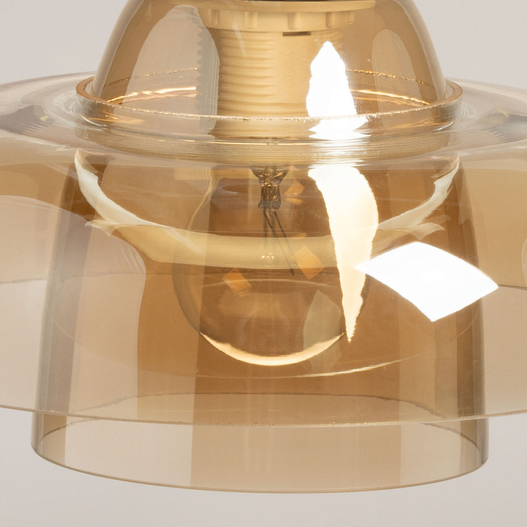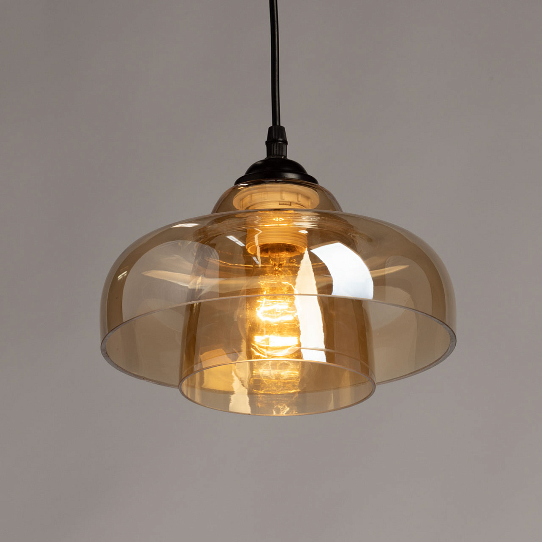 Благодаря своему универсальному дизайну, такой светильник может использоваться как в жилых помещениях, так и в коммерческих пространствах, таких как рестораны, кафе или офисы. Он подходит для различных типов помещений и стилей декора.Плафон цвета янтарь создает теплый и уютный свет, который способствует расслаблению и комфортному отдыху.Заменяемые источники света удобны в эксплуатации. Возможность регулировки высоты светильника позволяет создать комфортные условия освещения.