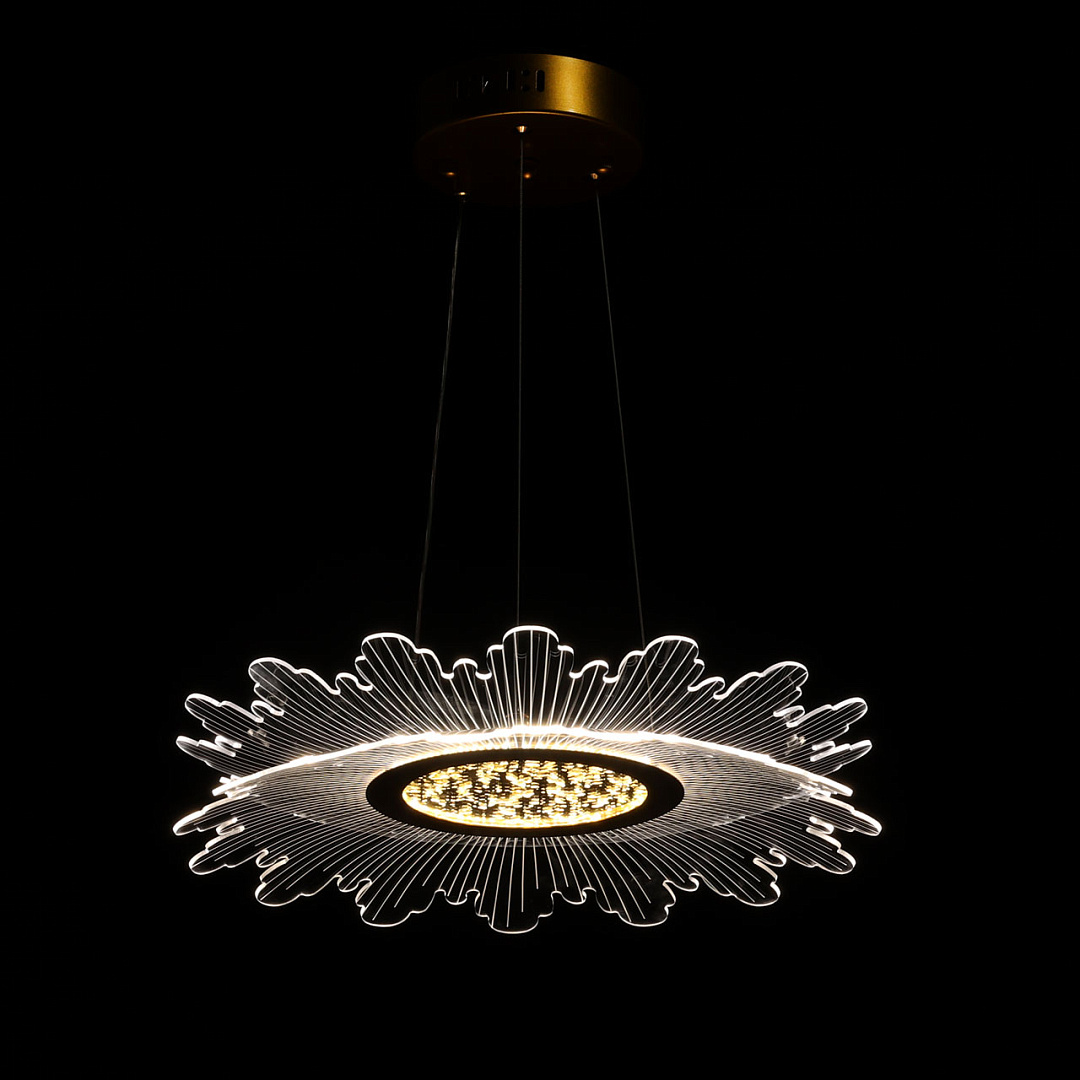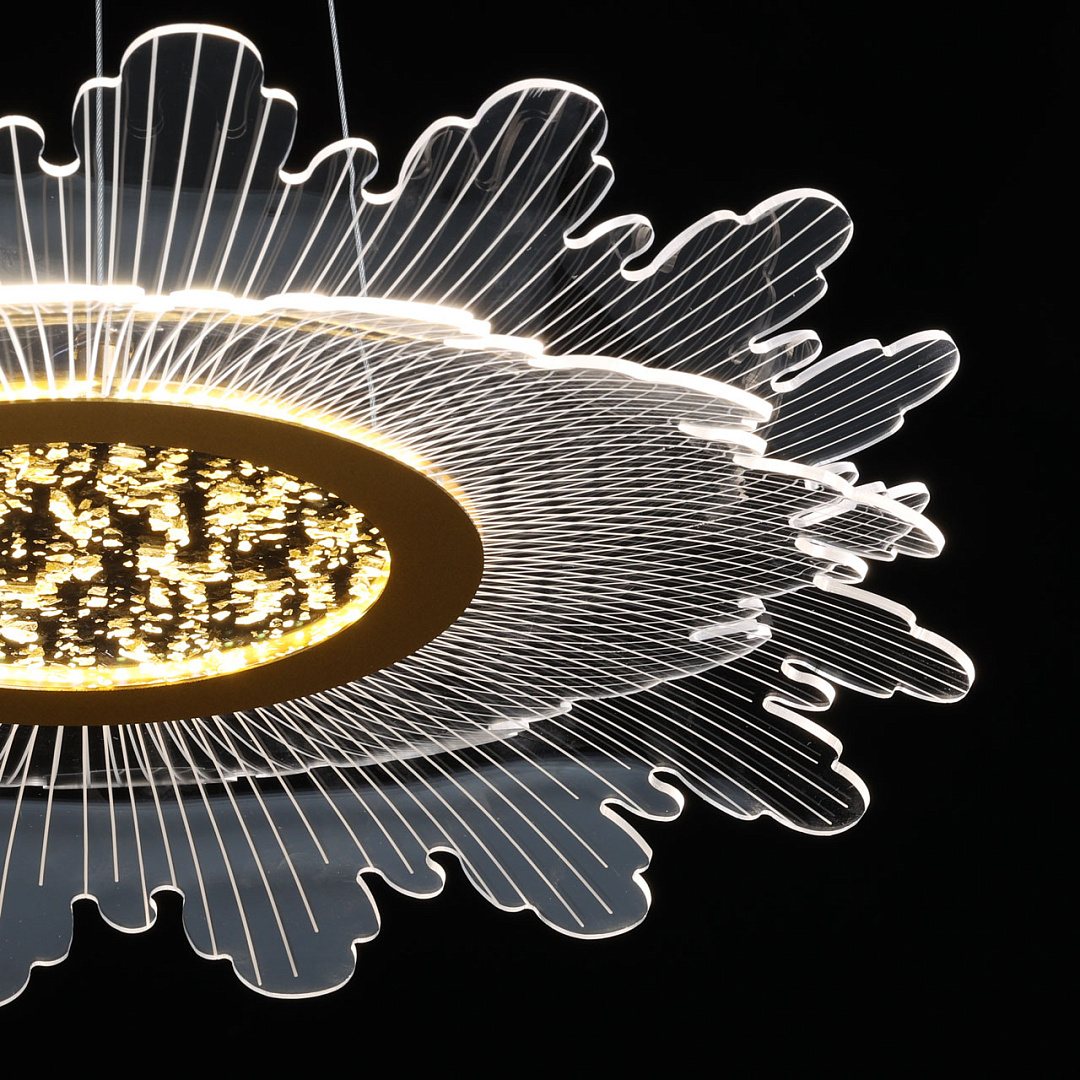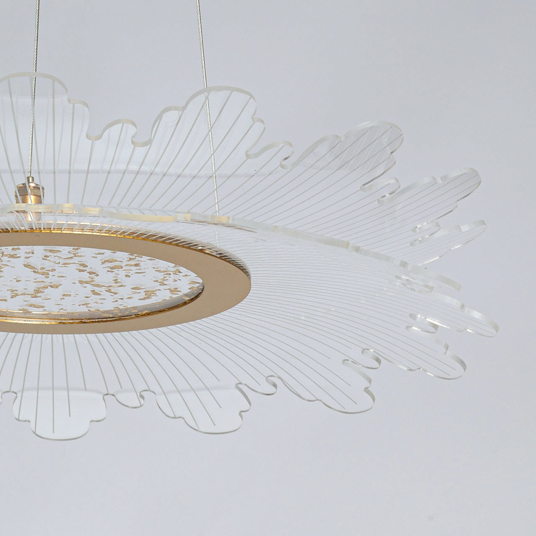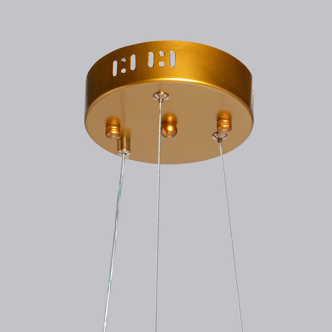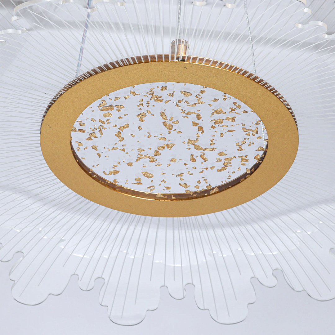 Цвет золота прекрасно сочетается с современными формами и материалами. Светодиодный источник света закрыт прозрачным акрилом, создающим эффект прозрачности и позволяет свету равномерно распространяться по комнате. Многорежимность освещения от 3000К до 6500К позволяет подобрать комфортную температуру света. Качественные светодиоды экономичны и безопасны.