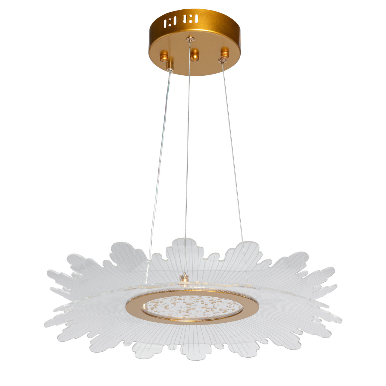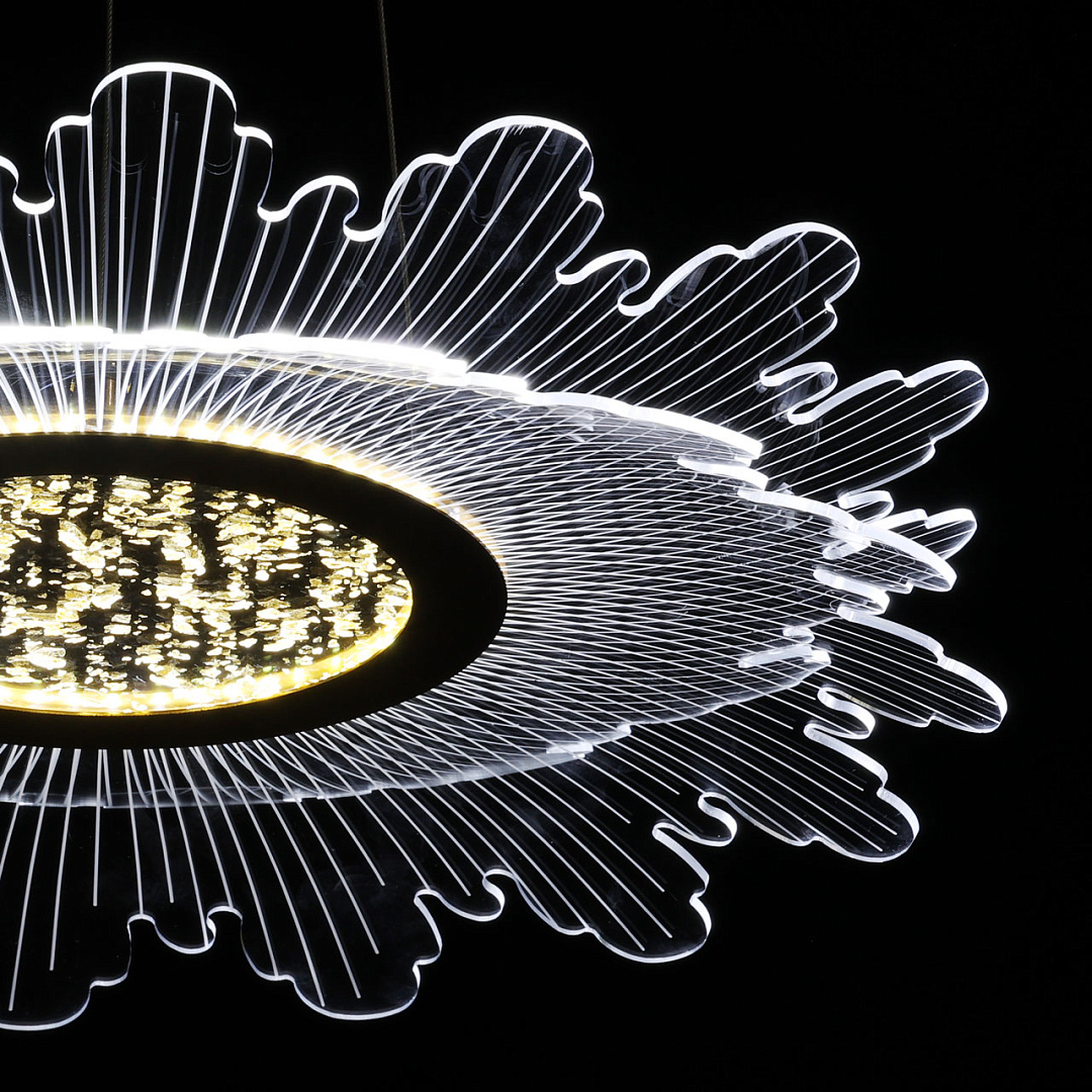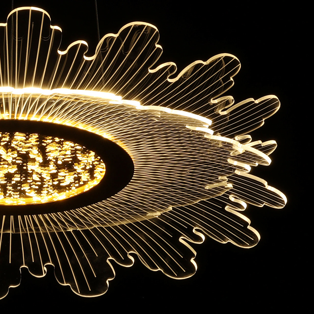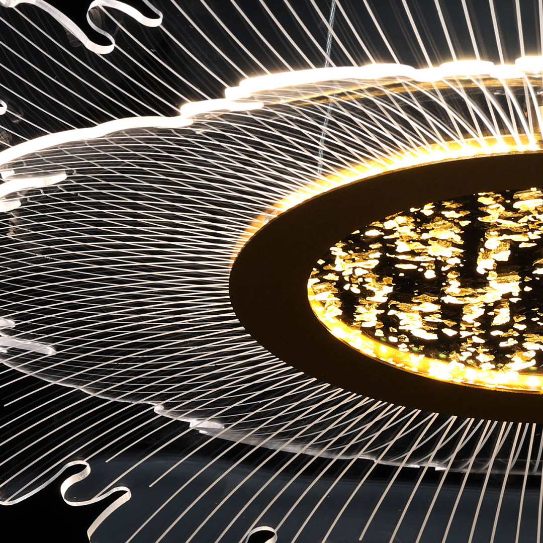 Цвет золота прекрасно сочетается с современными формами и материалами. Светодиодный источник света закрыт прозрачным акрилом, создающим эффект прозрачности и позволяет свету равномерно распространяться по комнате. Многорежимность освещения от 3000К до 6500К позволяет подобрать комфортную температуру света. Качественные светодиоды экономичны и безопасны.