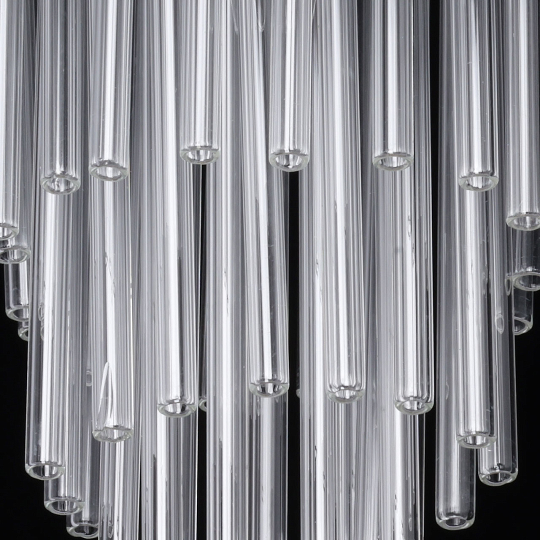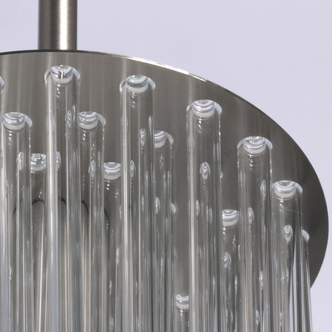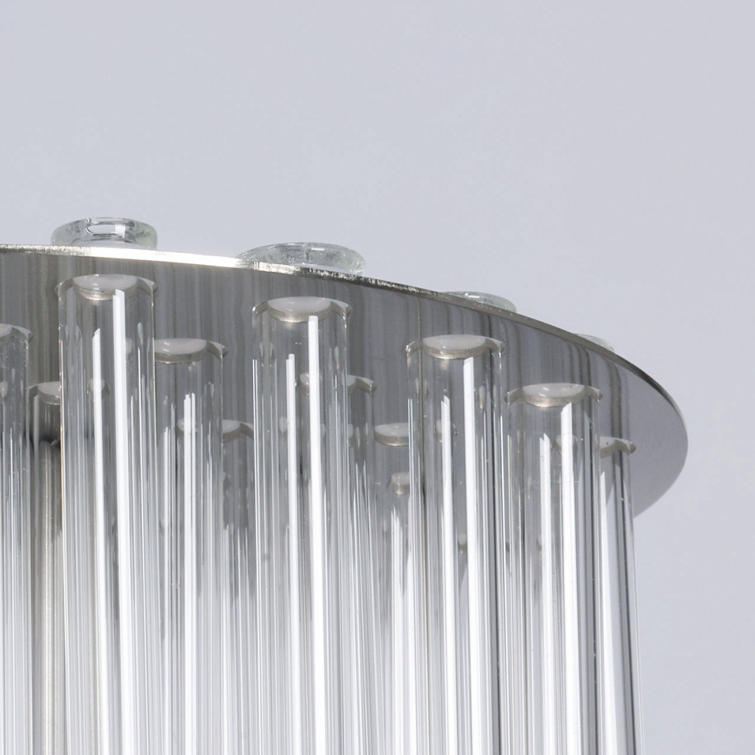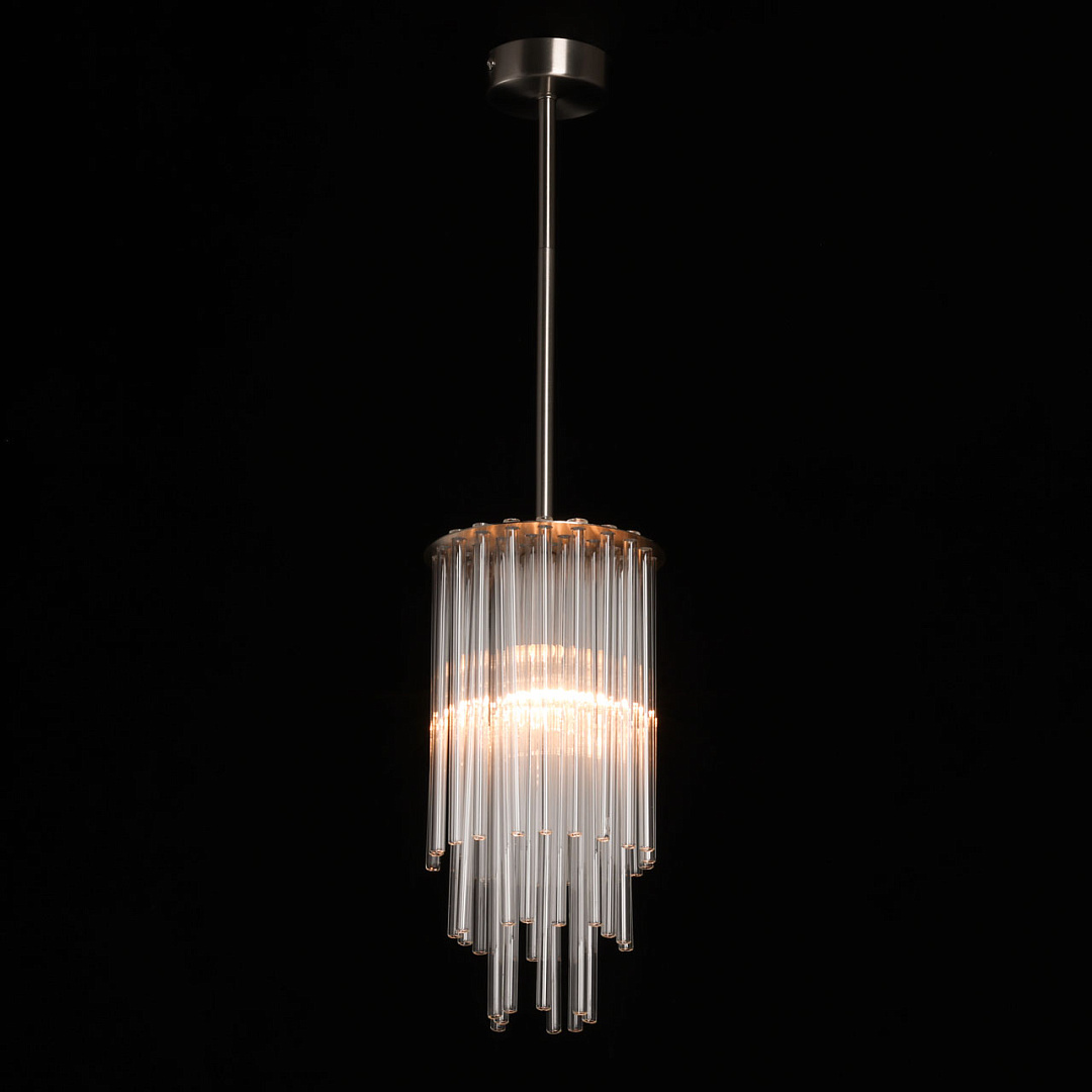 Гальваника в цвет никеля сочетается с современными интерьерами. Стеклянный декор создает уникальную игру света и тени, что придает люстре особый шарм и уникальность. Светильник создает приятную атмосферу, идеально подходящую для расслабляющих вечеров или романтических ужинов. Заменяемый источник света удобен в эксплуатации.