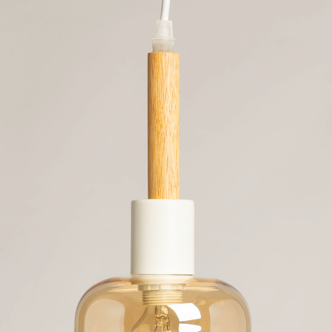 Дизайн светильника подходит для различных стилей интерьера – от современного до классического. Он может использоваться как в жилых помещениях, так и в коммерческих. Гальванизация плафона в цвет янтаря придает ему теплый и приятный оттенок, который гармонично сочетается с деревянным элементом декора. Это создает уютную атмосферу и делает светильник привлекательным акцентом в интерьере.Заменяемые источники света облегчают эксплуатацию. Подвесная конструкция позволяет регулировать высоту светильника, адаптируя его под конкретные потребности освещения.
