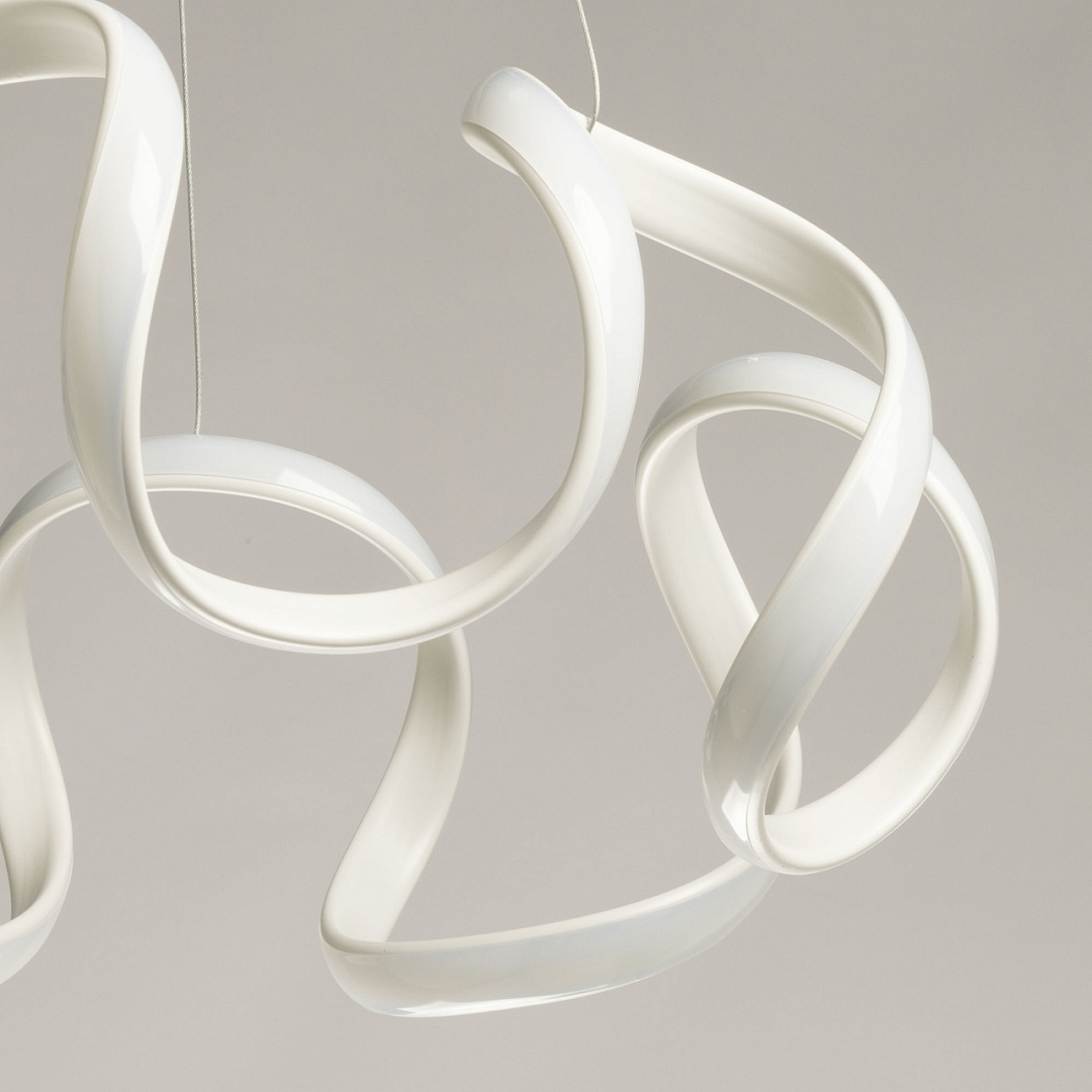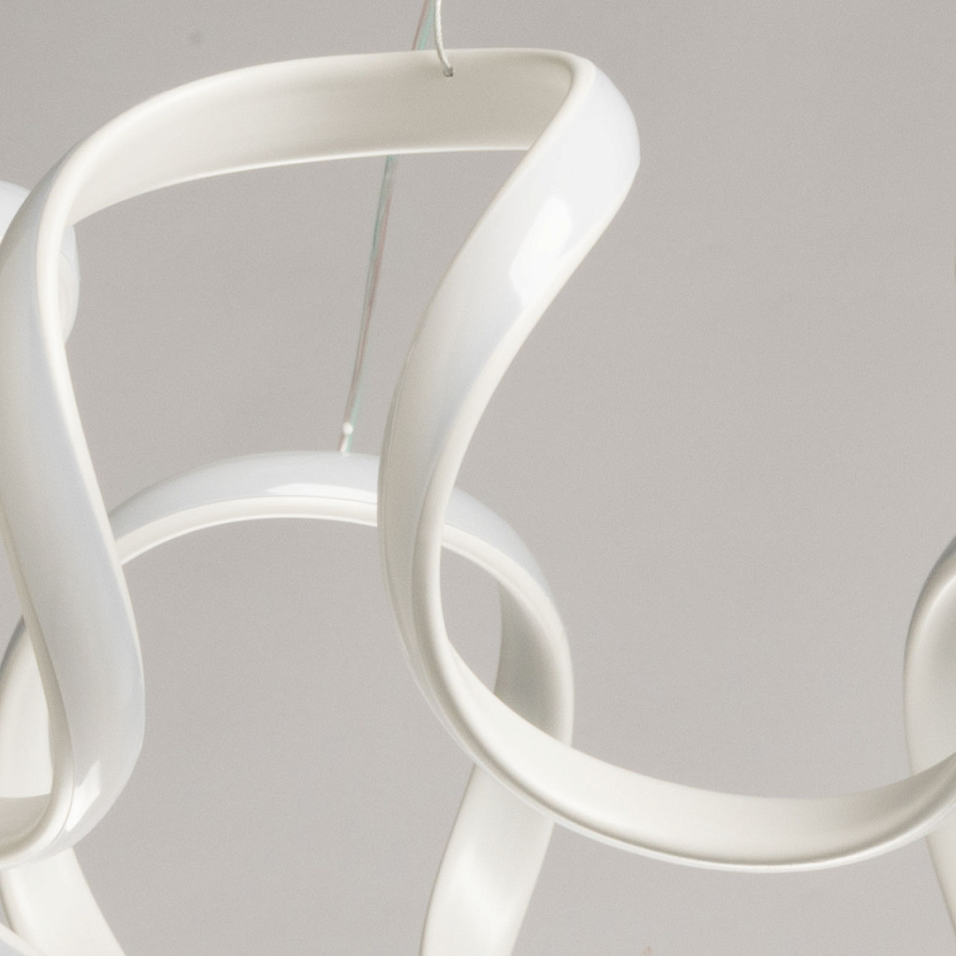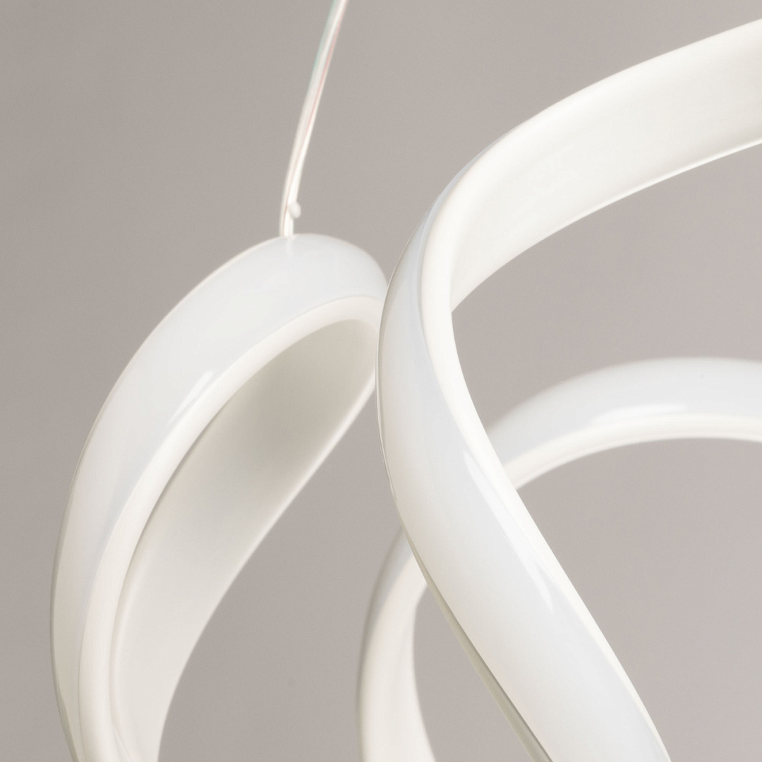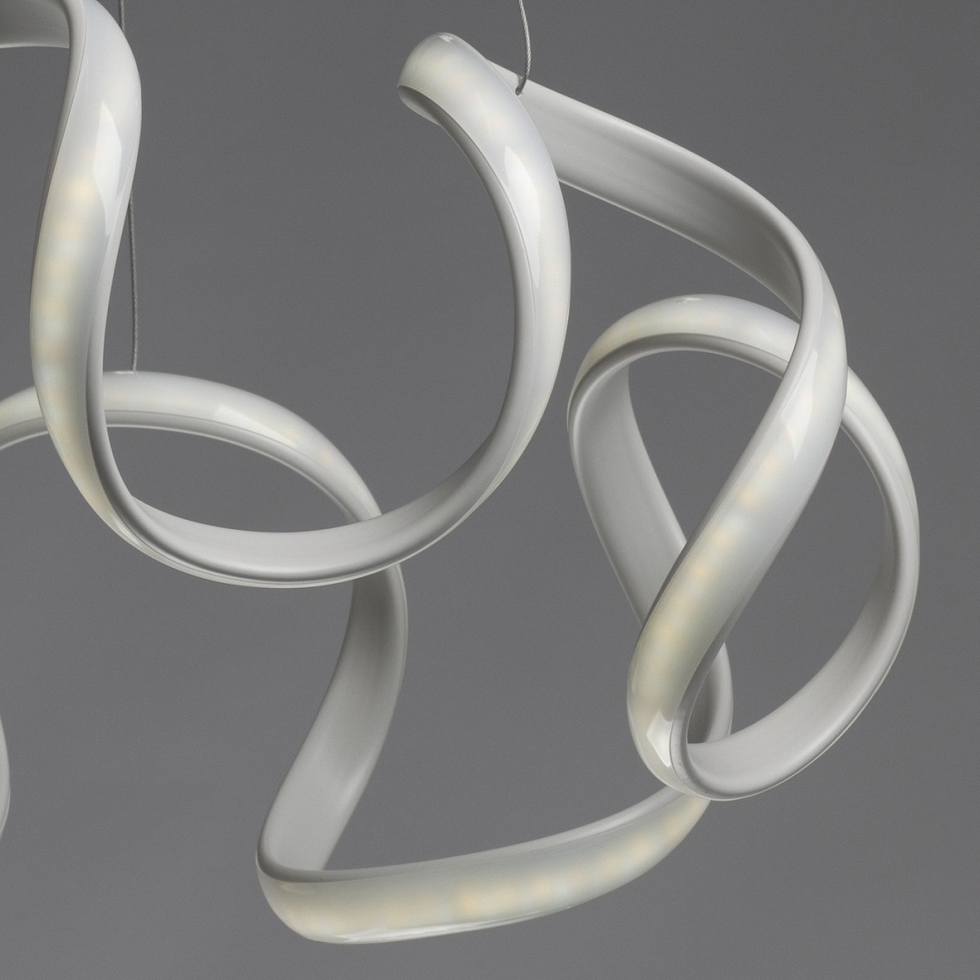 Белый цвет основания придает подвесной люстре легкости и воздушности. Изящно изогнутый плафон создает единый и гармоничный образ светильника. Белый силикон плафона мягко рассеивает свет. Режим переключения цветовой температуры от 3000К до 6500К является элементом светодизайна. Наличие ПДУ позволяет удобно устанавливать требуемый сценарий освещения. Возможность регулировки высоты светильника позволяет создать комфортные условия освещения. Светодиодные источники света экономичны и безопасны.