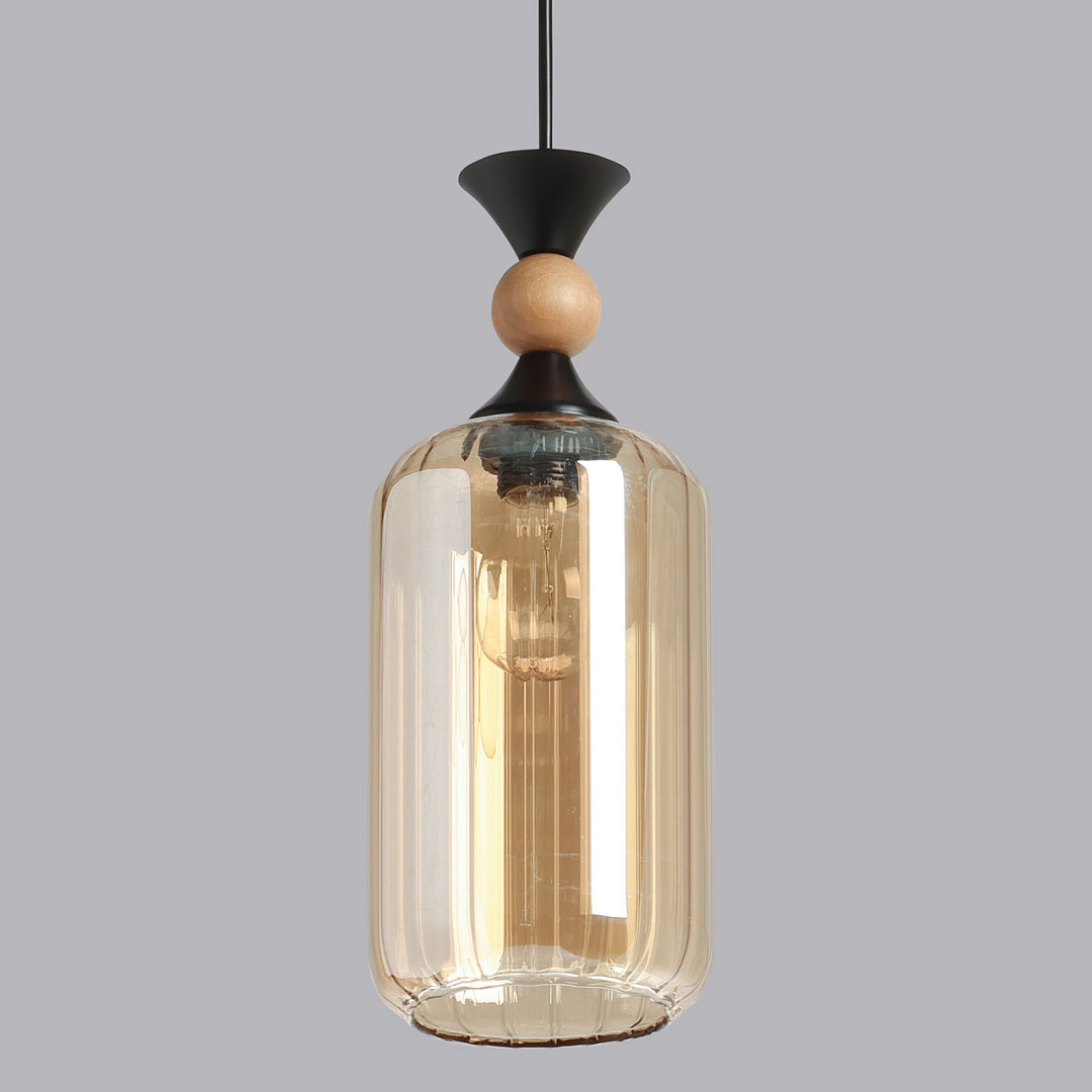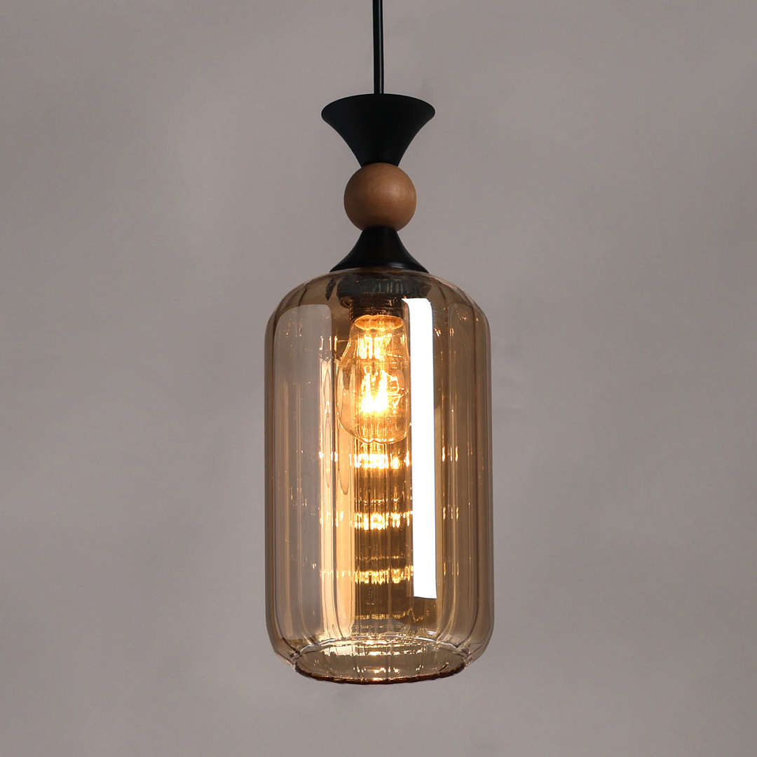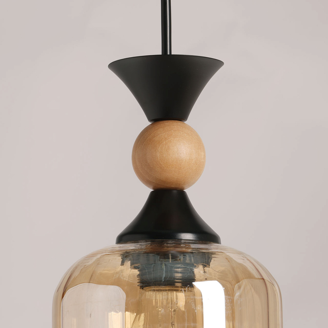 Актуальное сочетание черного цвета основания и золотистого цвета стекла плафона. Стеклянный плафон коньячного цвета создает красивый мягкий свет. Натуральное дерево в декоре подвеса соответствует тренду природности. Заменяемый источник света удобен в эксплуатации. Возможность устанавливать комфортную высоту.