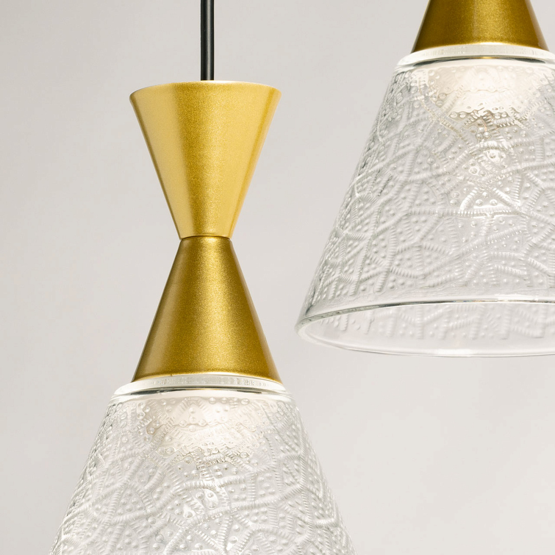 Чтобы придать люстре больше изысканности, основание было окрашено в черный цвет, а окрашенные в цвет перламутрового золота элементы добавляют теплоту в общий дизайн. Стеклянные плафоны современной формы создают единый и гармоничный образ светильника, где каждая деталь становится привлекательным акцентом. Заменяемые источники света удобны в эксплуатации. Возможность регулировать комфортную высоту.