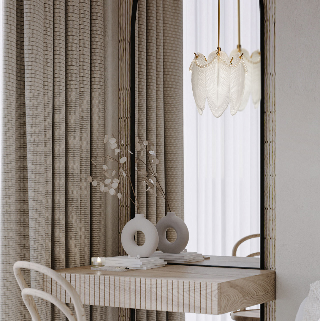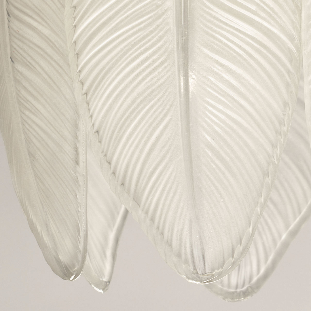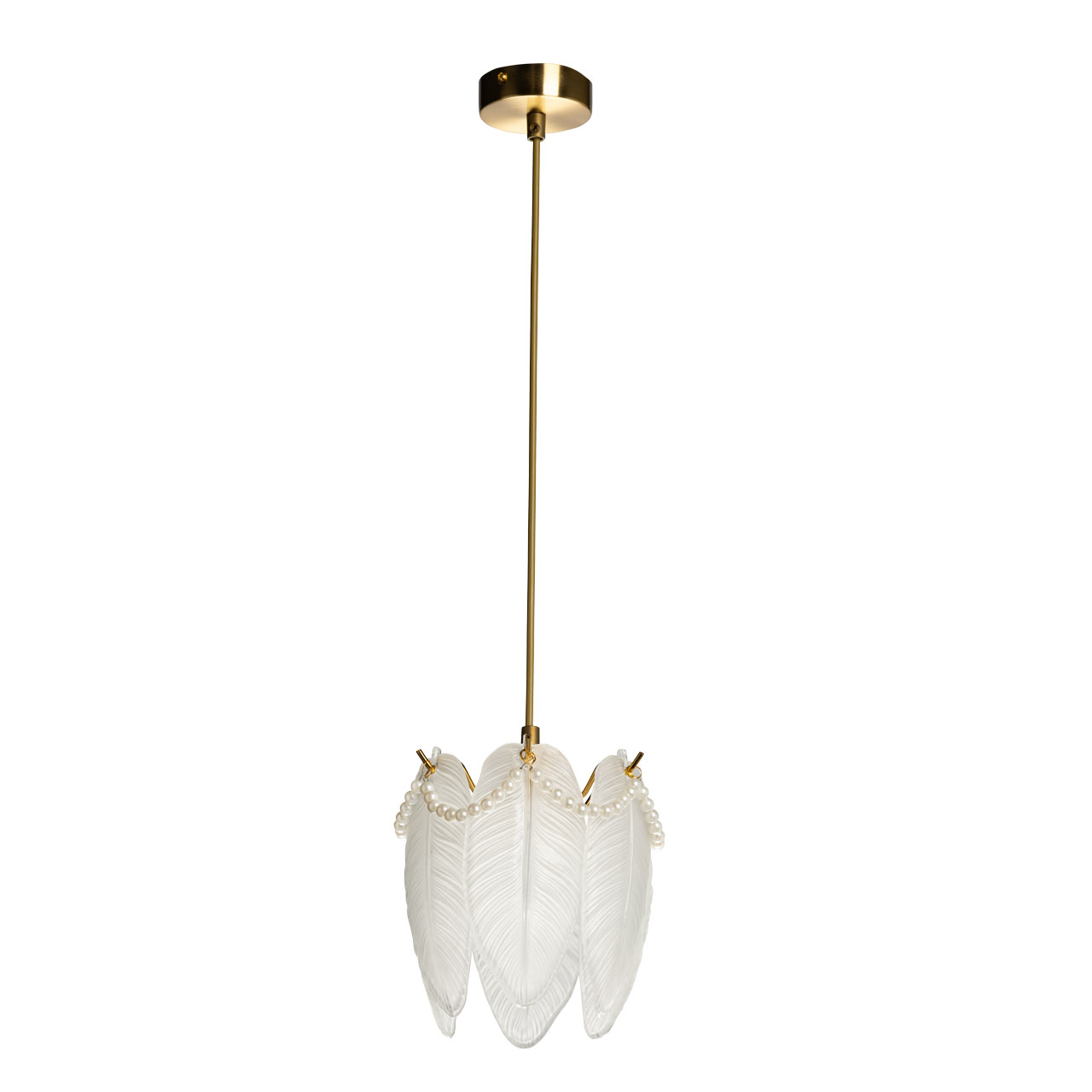 Цвет французского золота придает подвесной люстре элегантности. Стеклянные листья тонкой работы соответствуют тренду природности. Матированный декор из стекла создает мягкий и уютный свет. Декор, имитирующий жемчужные бусы, вносит нотки шарма и изящества. Возможность регулировать комфортную высоту. Заменяемые источники света удобны в эксплуатации.
