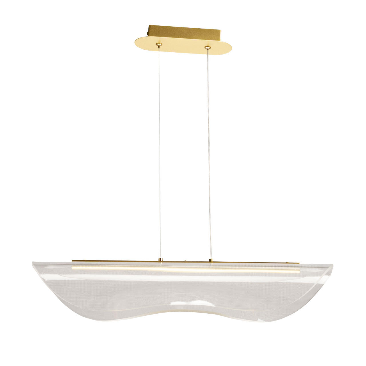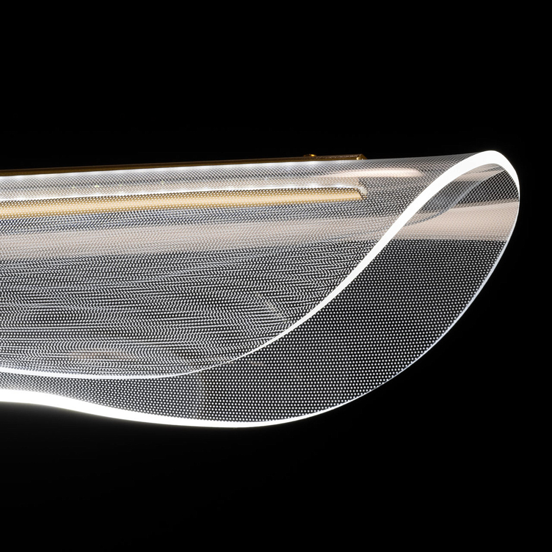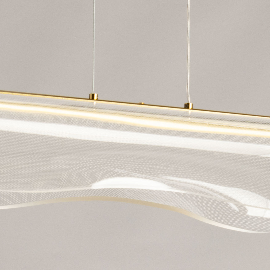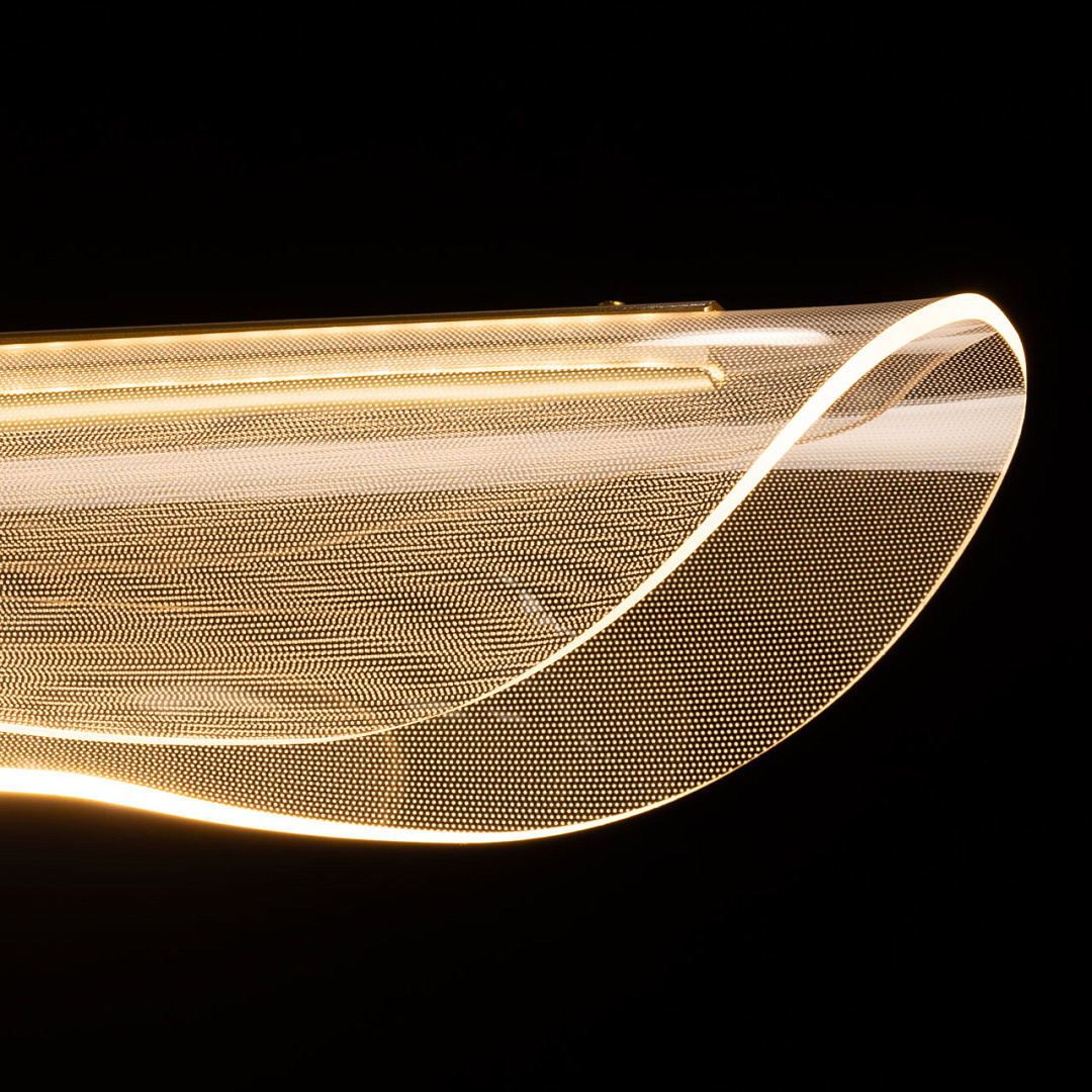 Благородный цвет золота эффектно сочетается с минималистичным дизайном подвесной люстры. Материал корпуса плафона эффективно отводит тепло от светодиодов, продлевая их срок службы. Оригинальный плафон волнистой формы из прозрачного акрила с точечным рисунком обеспечивает приятное и равномерное освещение. Многорежимность освещения от 3000К до 6000К позволяет подобрать комфортную температуру света через настенный выключатель. Качественные светодиоды экономичны и безопасны.