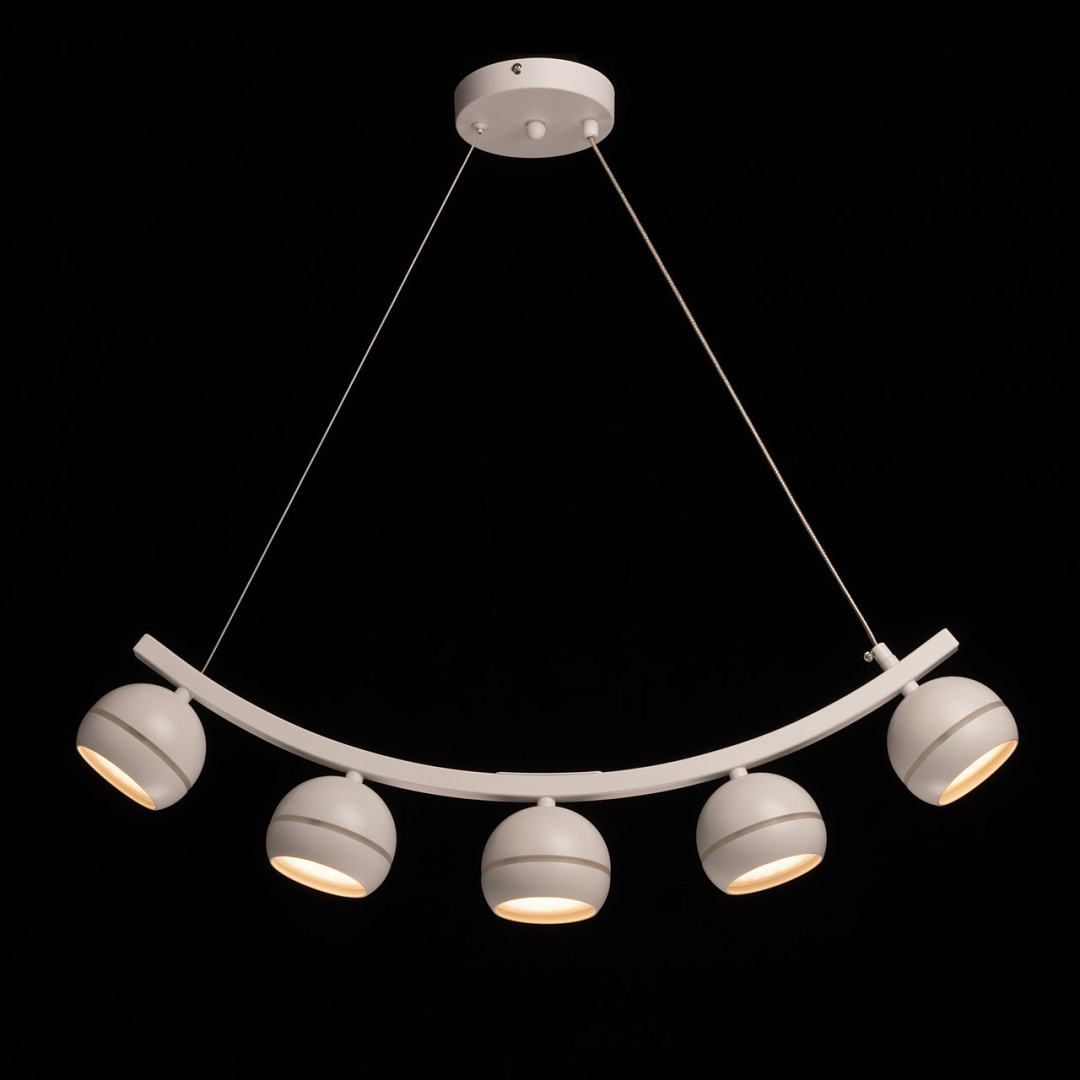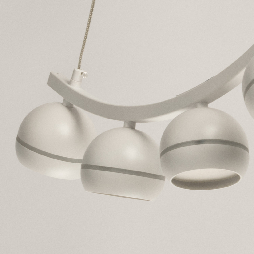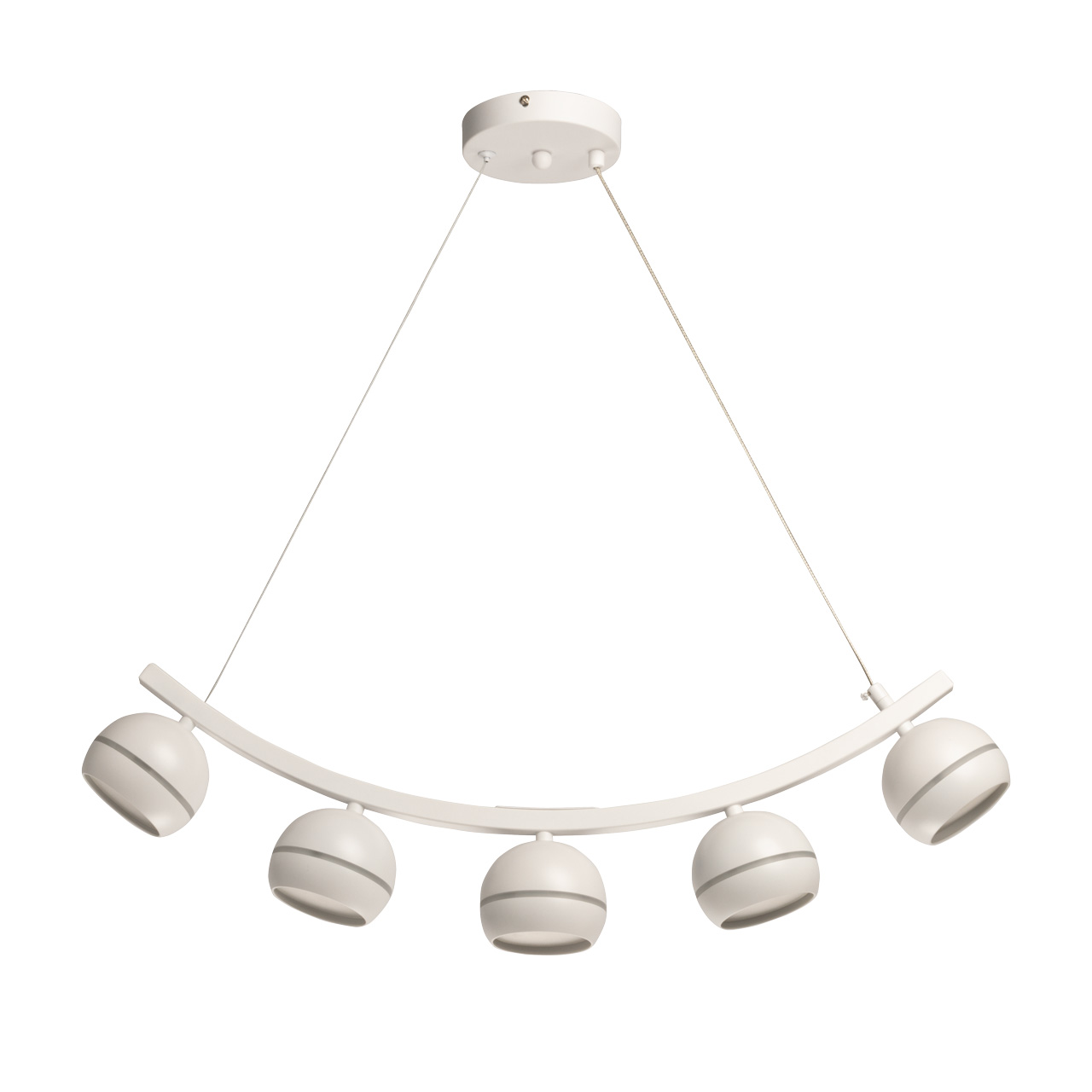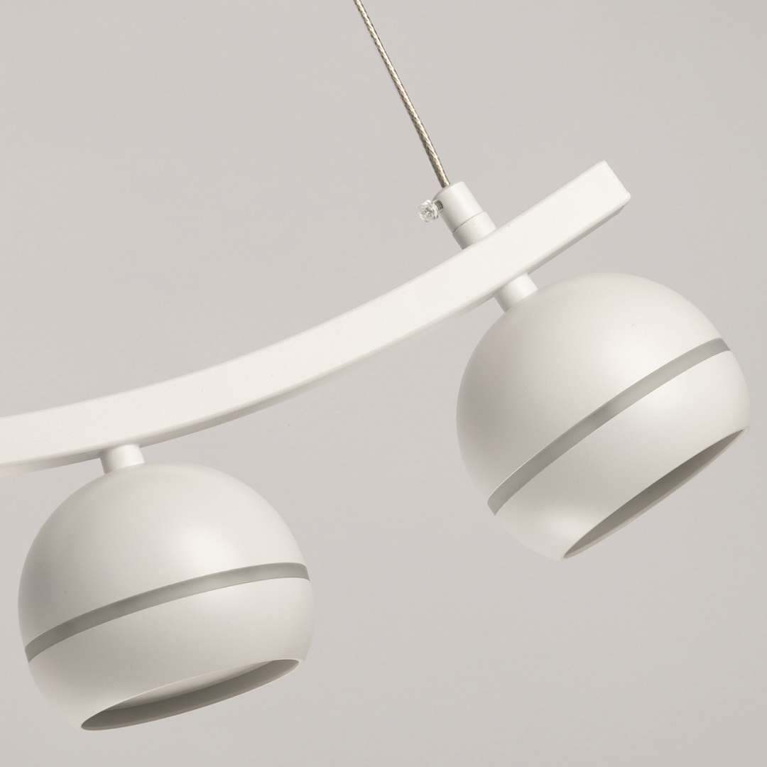 Светильник потолочный Гэлэкси выделяется своей стильной конструкцией, выполненной в духе хай-тек. Основной элемент — изогнутое основание, окрашенное в белый цвет, которое придает изделию легкость и элегантность. Такой подход к дизайну позволяет светильнику гармонично вписаться в помещения с высокими потолками, а его современный вид станет изюминкой любого интерьера.Основной материал, использованный в конструкции светильника, — металл. Он обеспечивает надежность и долговечность, а белая окраска добавляет светильнику свежести и современности. Плафоны имеют стильный дизайн в форме полусферы, который перекликается с общей дизайнерской концепцией.В светильник Гэлэкси устанавливаются светидиодные лампы с цоколем GX 5.3. Это не только позволяет существенно экономить на электроэнергии, но и продлевает срок службы светильника. Светодиоды известны своей высокой эффективностью и низким тепловыделением, что делает их идеальными для использования в любом помещении.Благодаря своей высоте и стильному дизайну, светильник Гэлекси отлично подходит для различных современных стилей интерьера — от минимализма до лофта. Он может быть установлен в гостиных, холлах, офисах и даже в ресторанах, добавляя атмосферы и стиля. Подвес светильника регулируется на комфортную высоту.