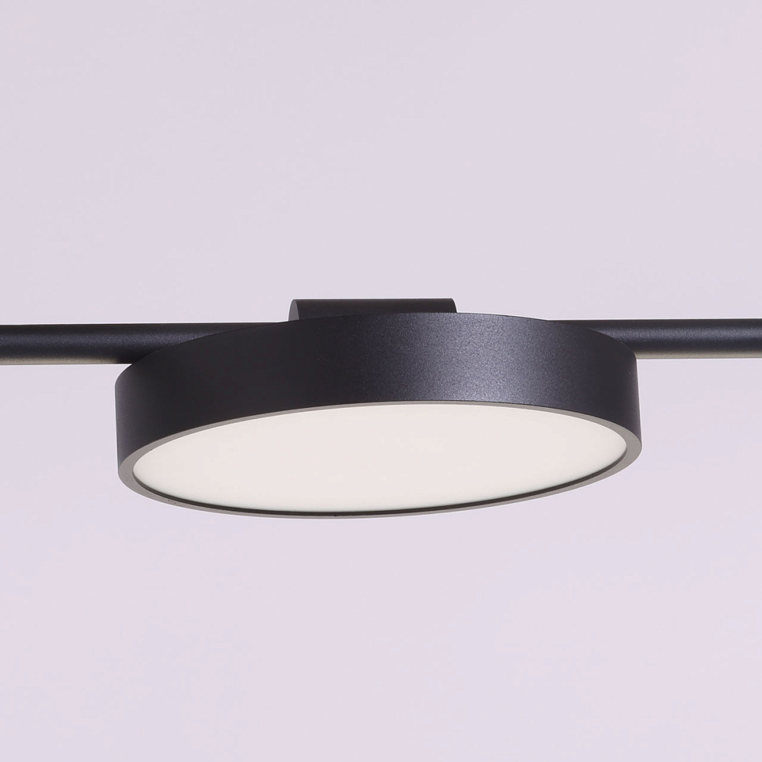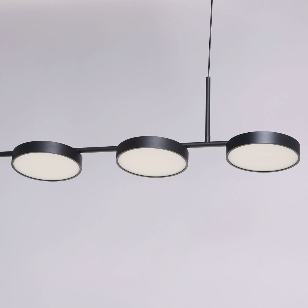 Современная люстра выполненная в популярном минималистичном  дизайне в стиле хай-тэк.Встроенные светодиоды экономят электроэнергию и долговечны в использовании. Лаконичный и универсальный зональный светильник - находка для любителей современного стиля в интерьере. Плафон поворачивается на 320 градусов, благодаря чему возможно менять направление светового потока.Высокотехнологичный пульт позволяет легко регулировать интенсивность света.Возможность регулировать высоту люстры, устанавливая комфортную высоту.