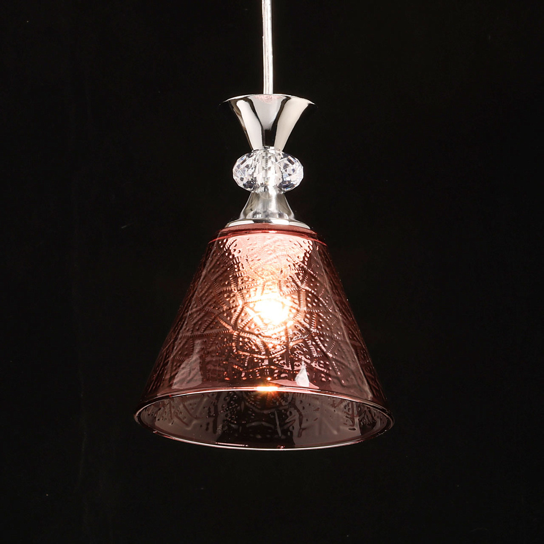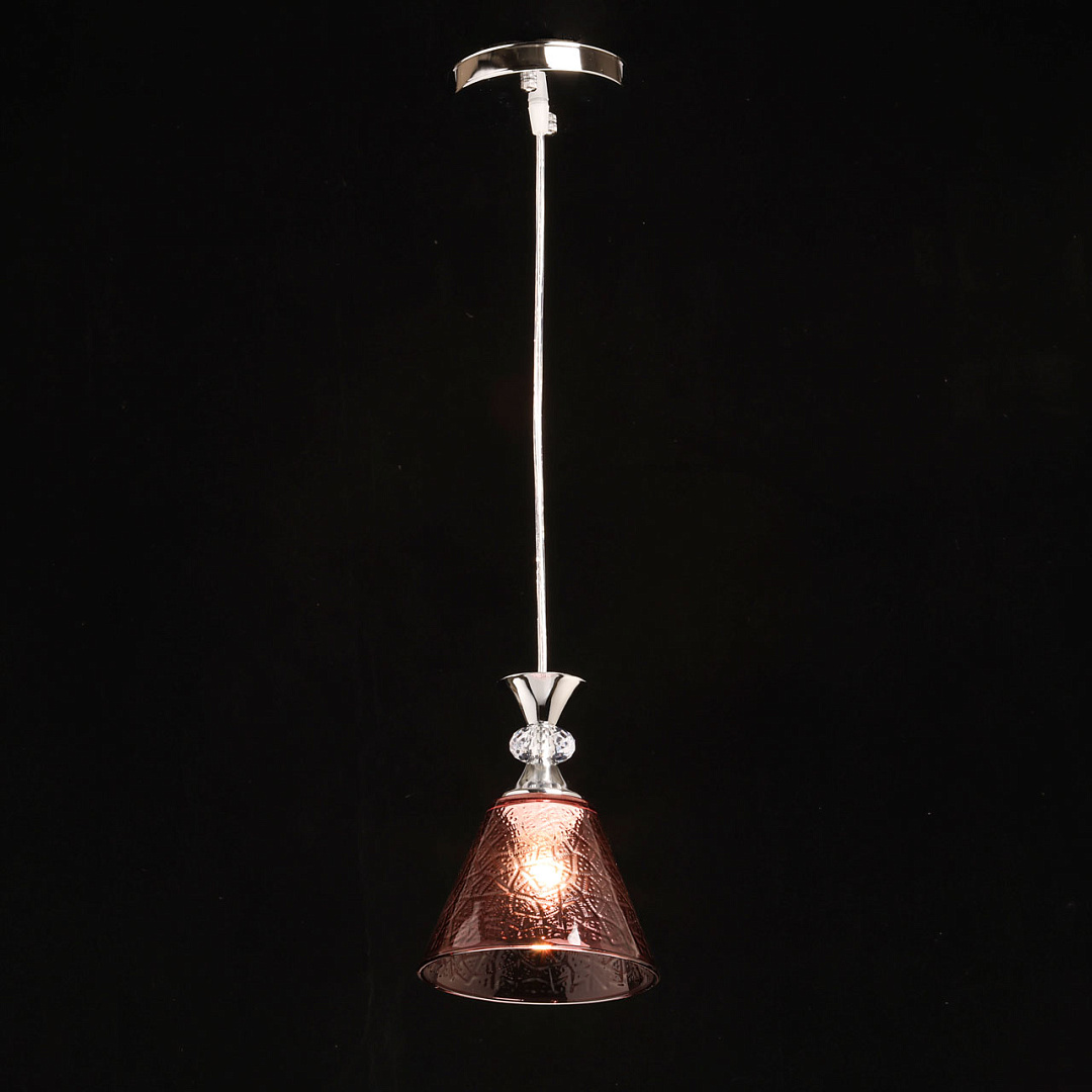 Черный цвет основания выглядит концептуально и минималистично. Акцентная фактура стекла и винный оттенок придают подвесу индивидуальности. Подвес сочетает в себе качественные материалы, оригинальный дизайн и внимание к деталям, что делает ее превосходным выбором для тех, кто ценит стиль и эстетику в своем интерьере. Заменяемый источник света удобен в эксплуатации.
