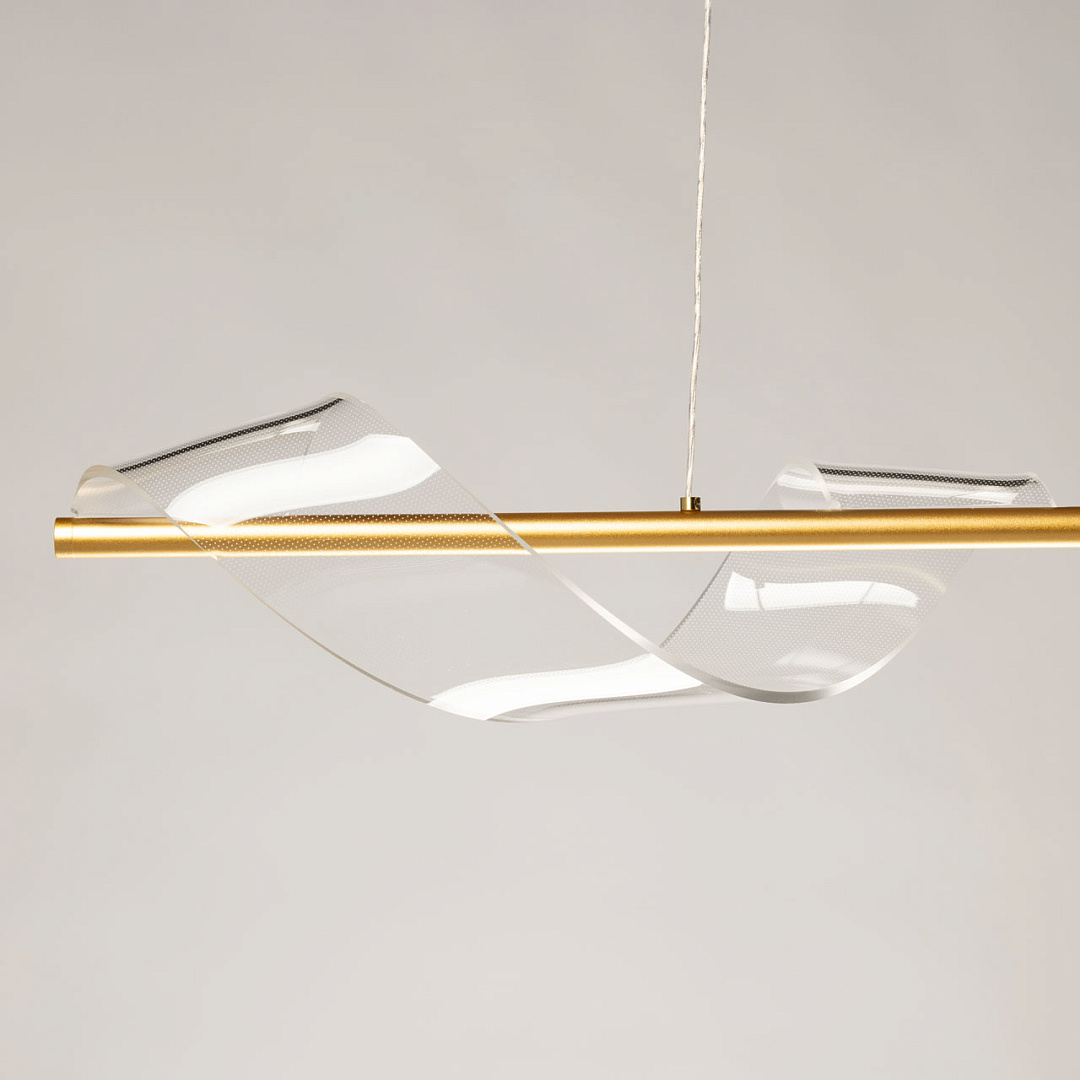Оригинальный плафон из прозрачного акрила в виде закрученной ленты делает подвесную люстру арт объектом. Многорежимность с изменением цветовой температуры от 3000К до 6000К является элементом светодизайна и позволяет подобрать комфортную температуру света через настенный выключатель. Качественные светодиоды и корпус из сплава алюминия обеспечивают яркое освещение и долгий срок службы. Возможность регулировать комфортную высоту.