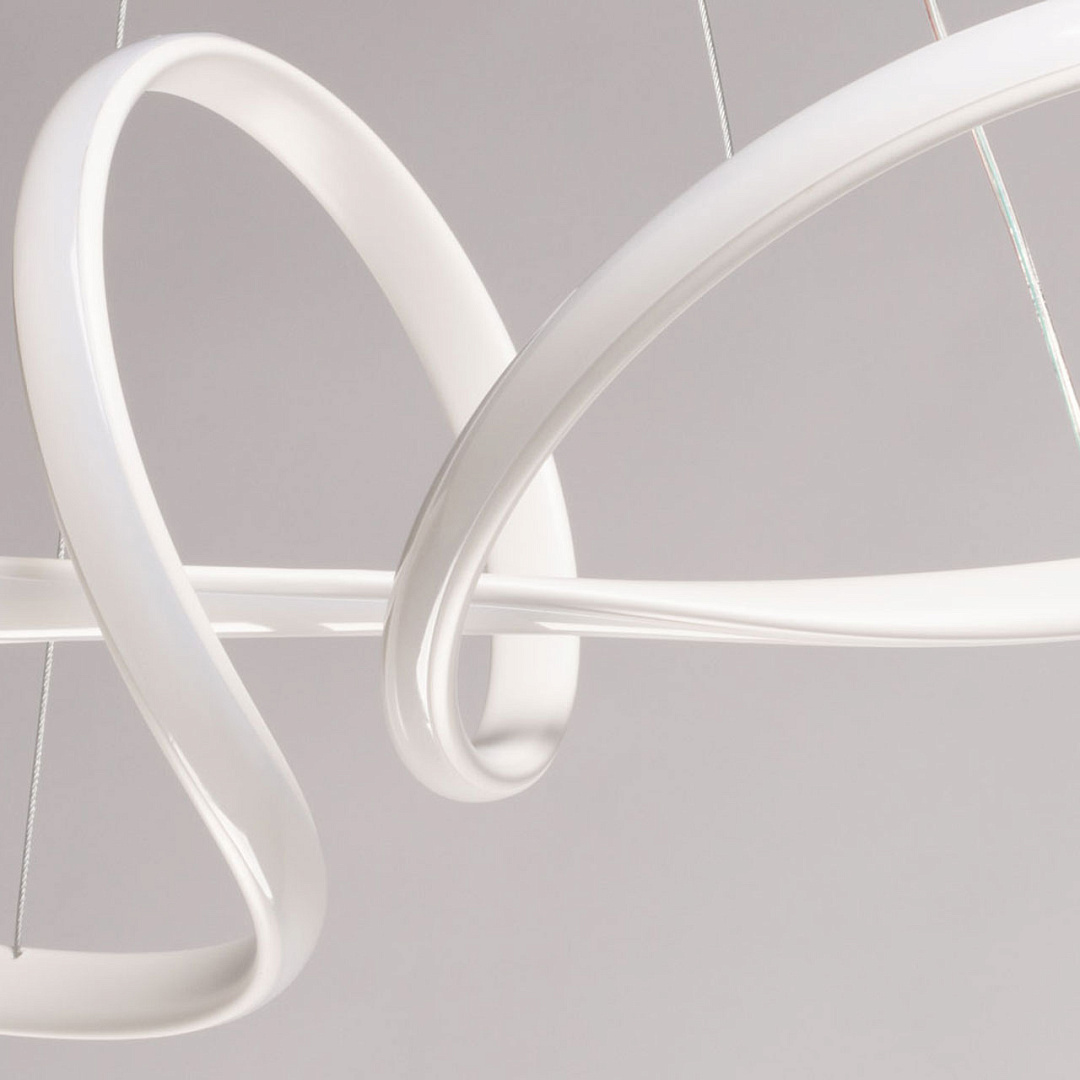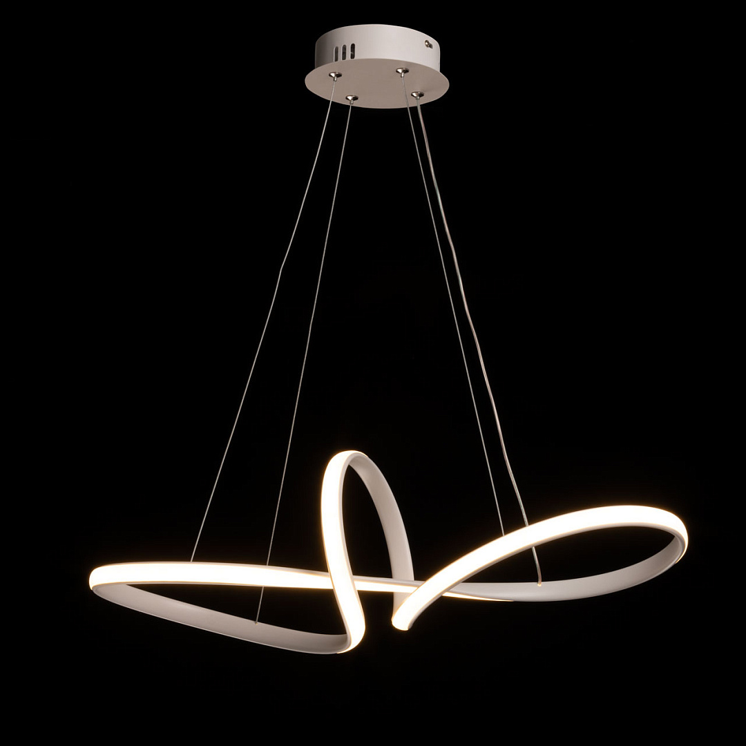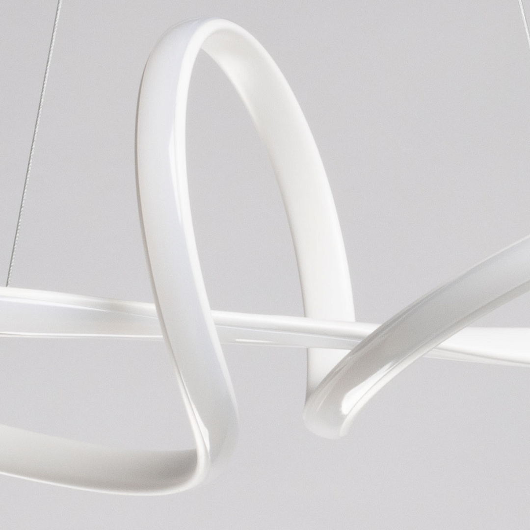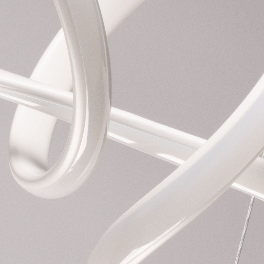 Белый цвет основания придает подвесной люстре легкости и воздушности. Изящно изогнутый плафон создает единый и гармоничный образ светильника. Белый силикон плафона мягко рассеивает свет. Режим переключения цветовой температуры от 3000К до 6500К является элементом светодизайна. Наличие ПДУ позволяет удобно устанавливать требуемый сценарий освещения. Возможность регулировать комфортную высоту. Светодиодные источники света экономичны и безопасны.