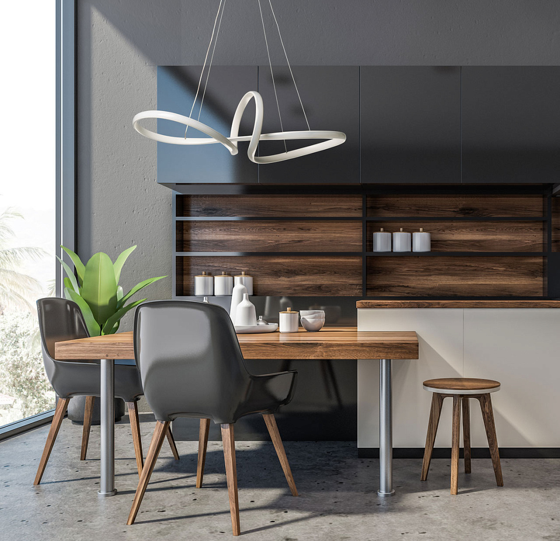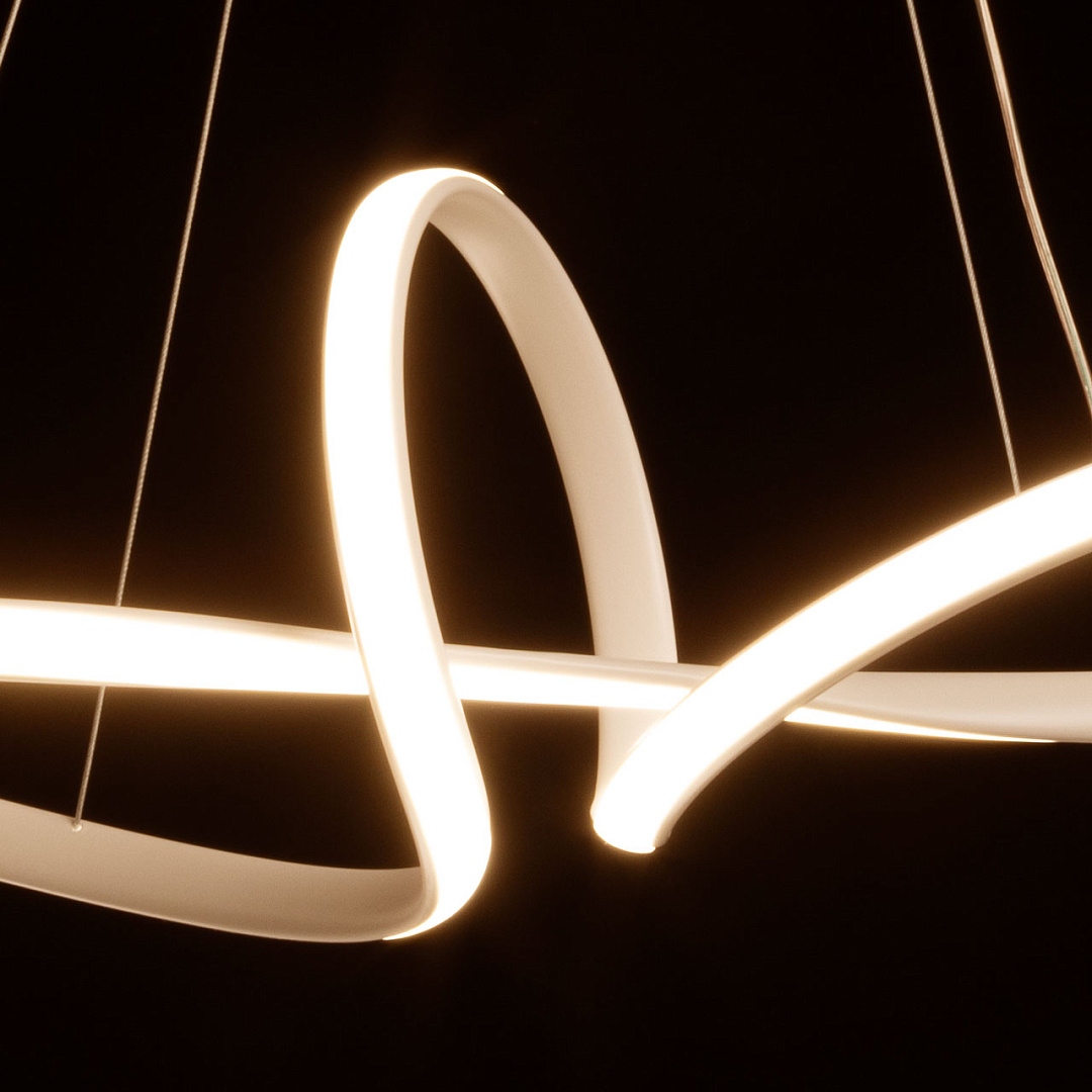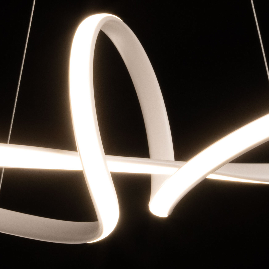 Белый цвет основания придает подвесной люстре легкости и воздушности. Изящно изогнутый плафон создает единый и гармоничный образ светильника. Белый силикон плафона мягко рассеивает свет. Режим переключения цветовой температуры от 3000К до 6500К является элементом светодизайна. Наличие ПДУ позволяет удобно устанавливать требуемый сценарий освещения. Возможность регулировать комфортную высоту. Светодиодные источники света экономичны и безопасны.