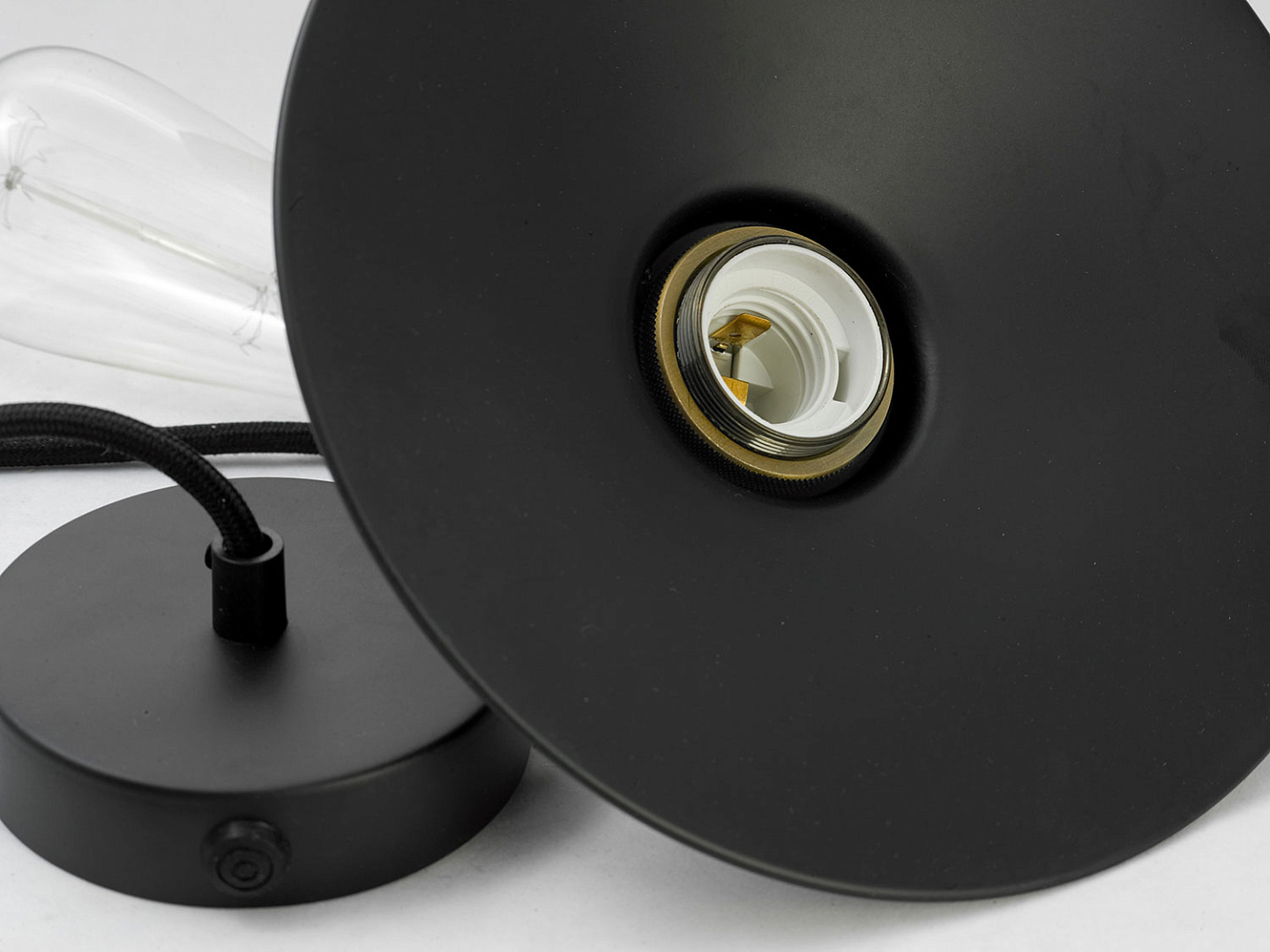 Подвесной светильник LSP-9600 итальянского производителя Lussole LOFT из коллекции LSP-9100-9600 исполнен в стиле лофт. Арматура светильника выполнена из металла черного и бронзового цветов. Поверхность арматуры глянцево-матовая. Плафон изготовлен из металла черного цвета, имеет конусную форму и матовую поверхность. Направлен вниз. Осветительный прибор рассчитан на освещение пространства площадью 3 кв. м. Тип цоколя используемых ламп E27. Производитель рекомендует использовать лампы мощностью не более 60 Вт. Суммарная мощность светильника составляет 60 Вт. Лампочки входят в комплект. Защита от попадания влаги и пыли внутрь изделия не предусмотрена. Цвет свечения теплый белый (2800K). Рекомендуем к применению в гостиной, кабинете, прихожей, спальне.